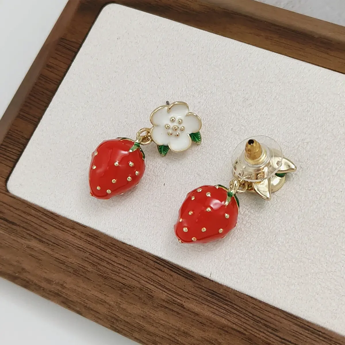 Exquisite Stainless Steel Strawberry Earrings Valentine Gift Set Cute Red Mini Strawberry Huggie Earrings for Women
