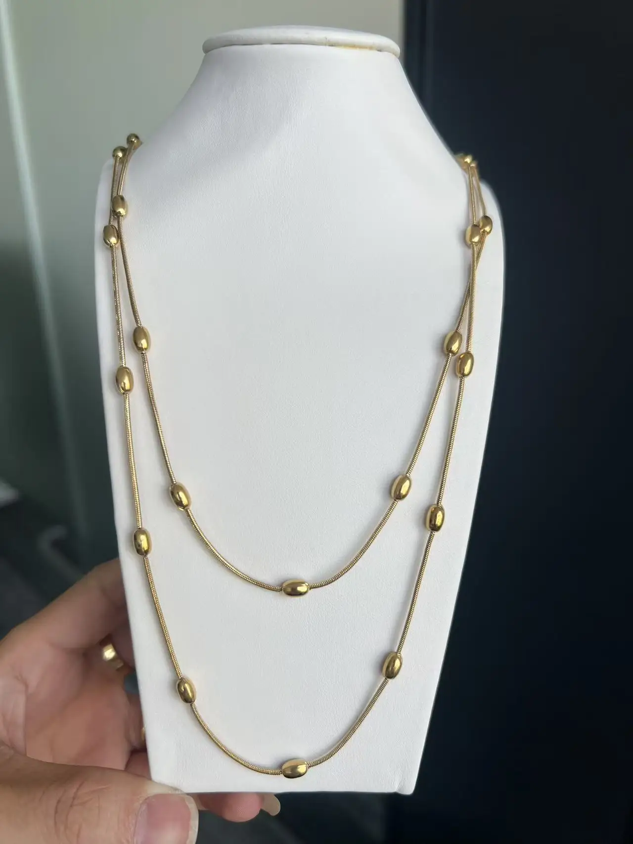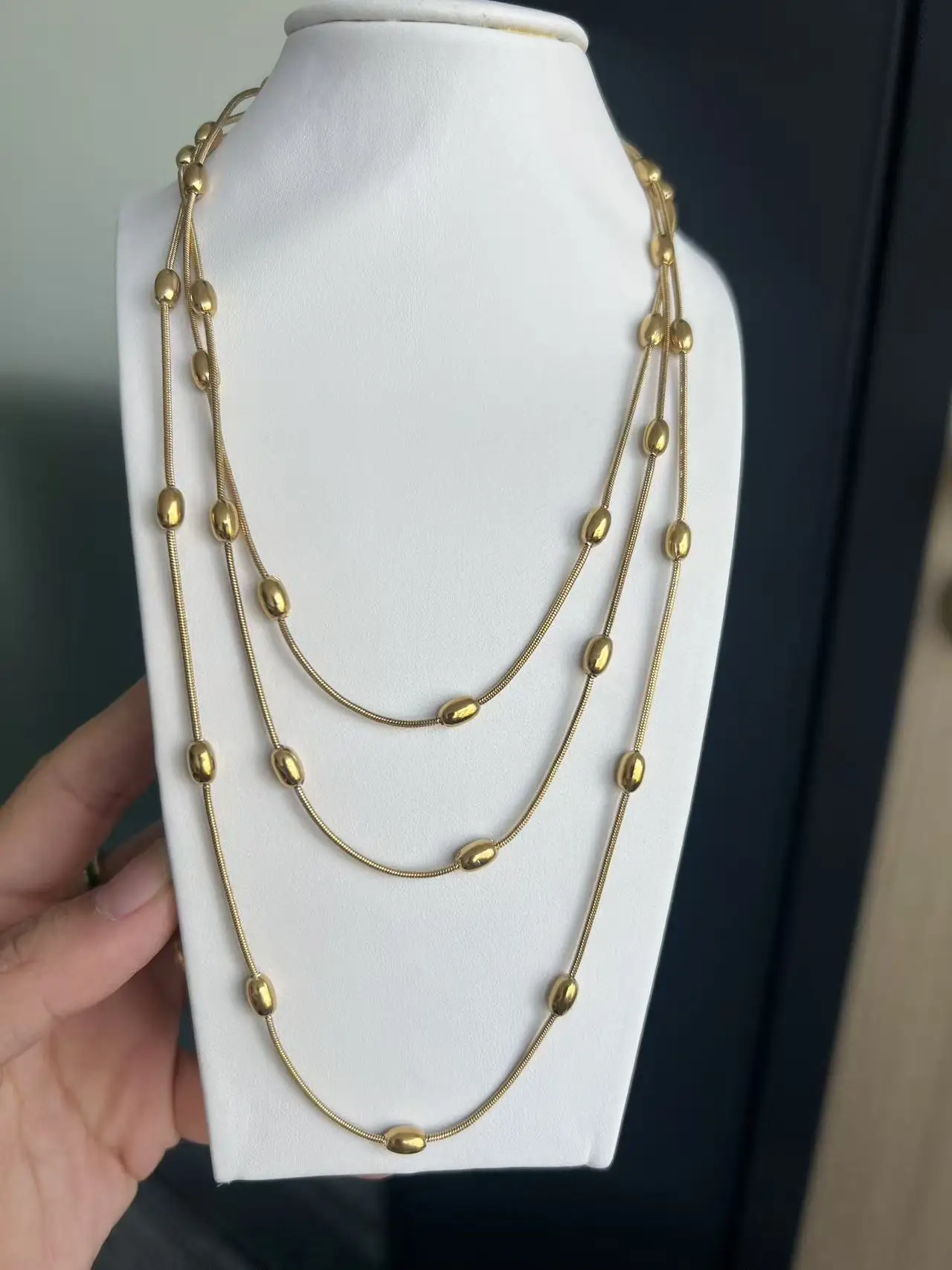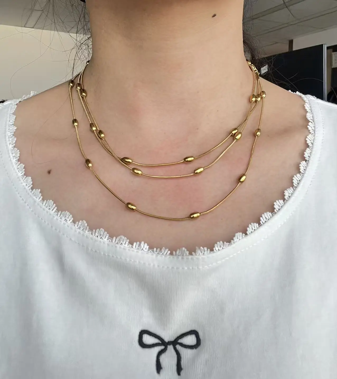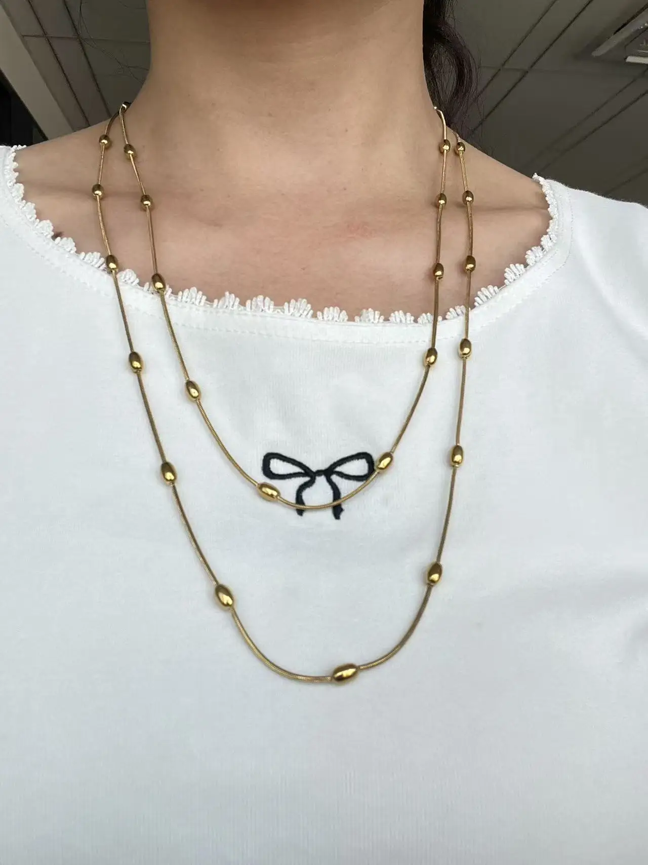 Stainless Steel Versatile Multi-layer Beaded Snake Bone Chain Waterproof Non-fading Layered Necklace