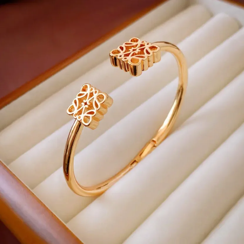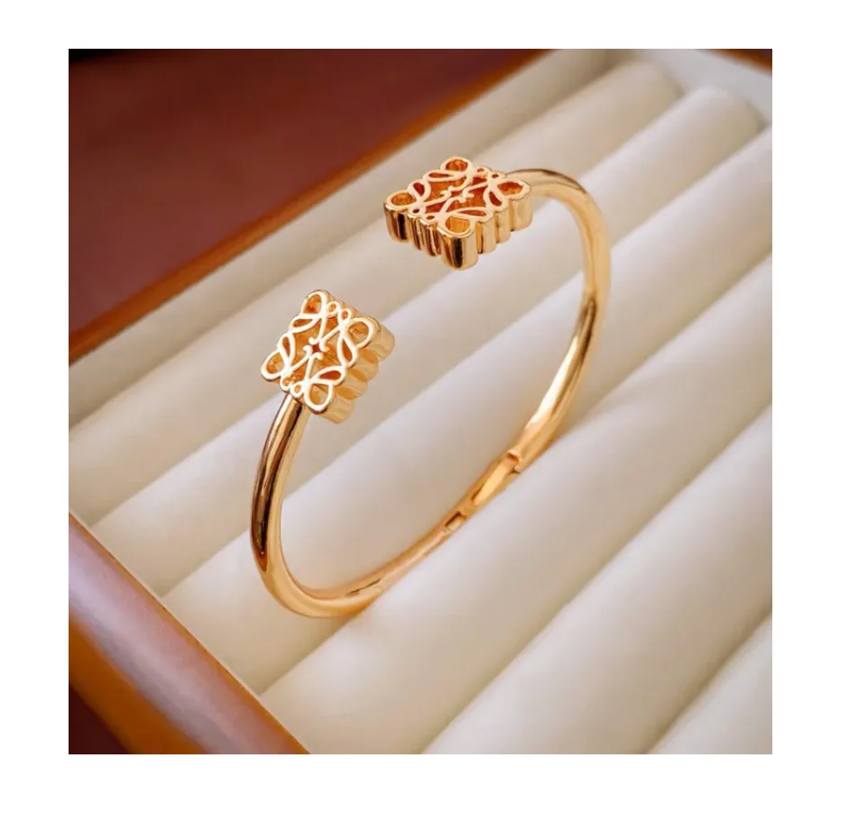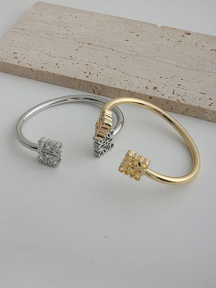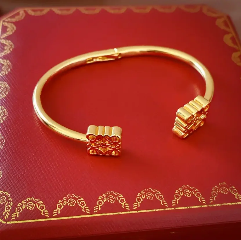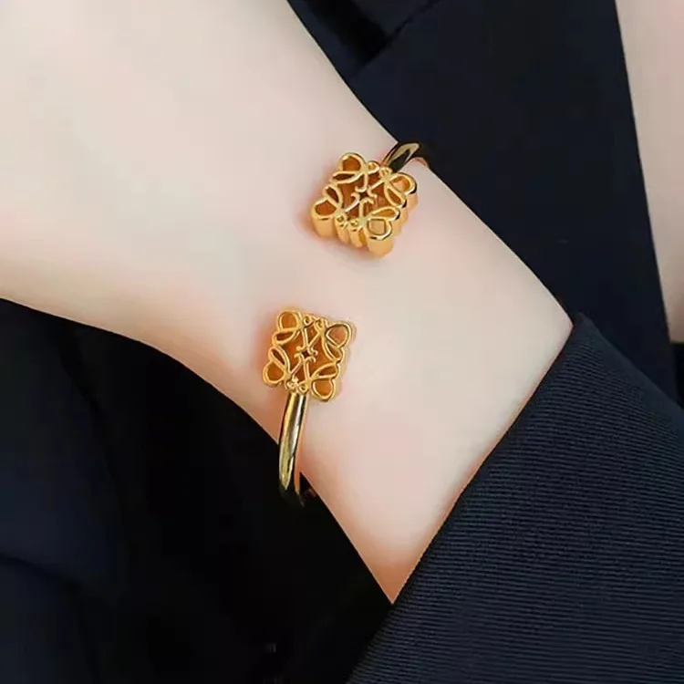 Sophisticated Elegant 18k Gold Plated Trendy Hollow Square Bangle Zinc Alloy Material for Fashion-Loving Women