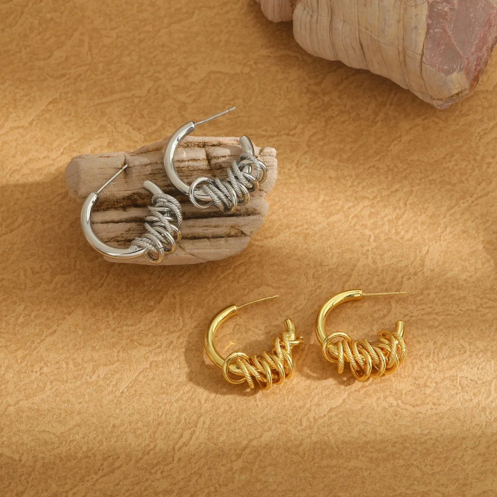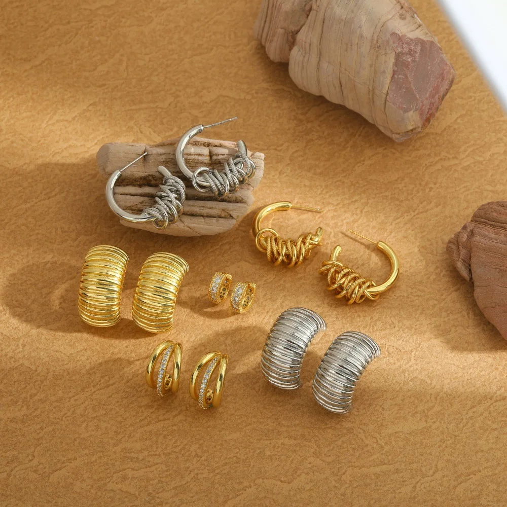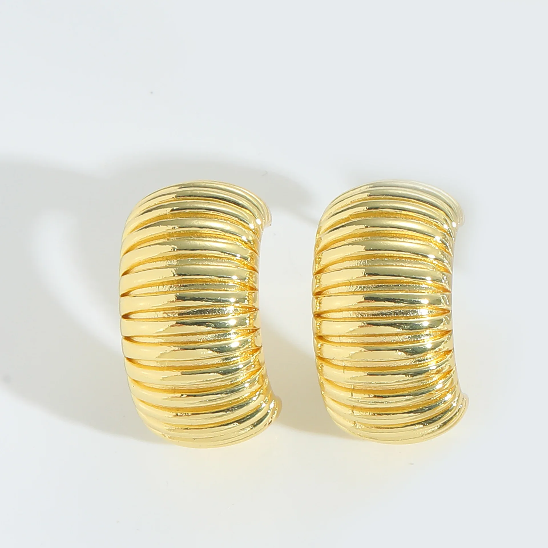 Women's 18K Gold Plated Copper Spiral Hoop Earrings Minimalist Chunky Geometric Design Classic Style for Gift Waterproof