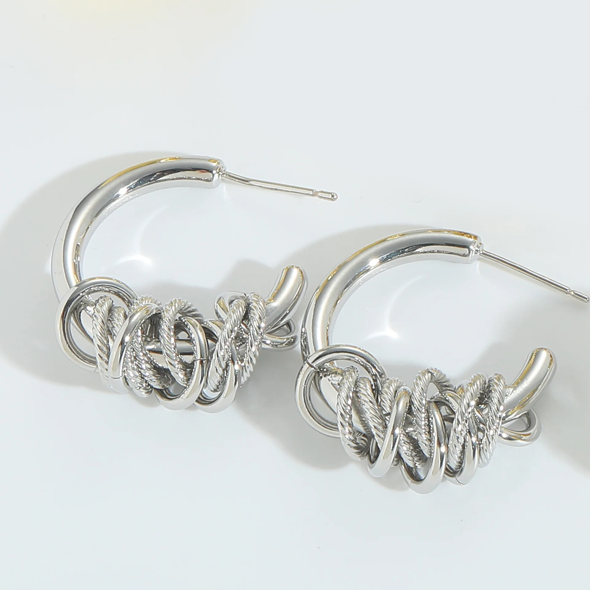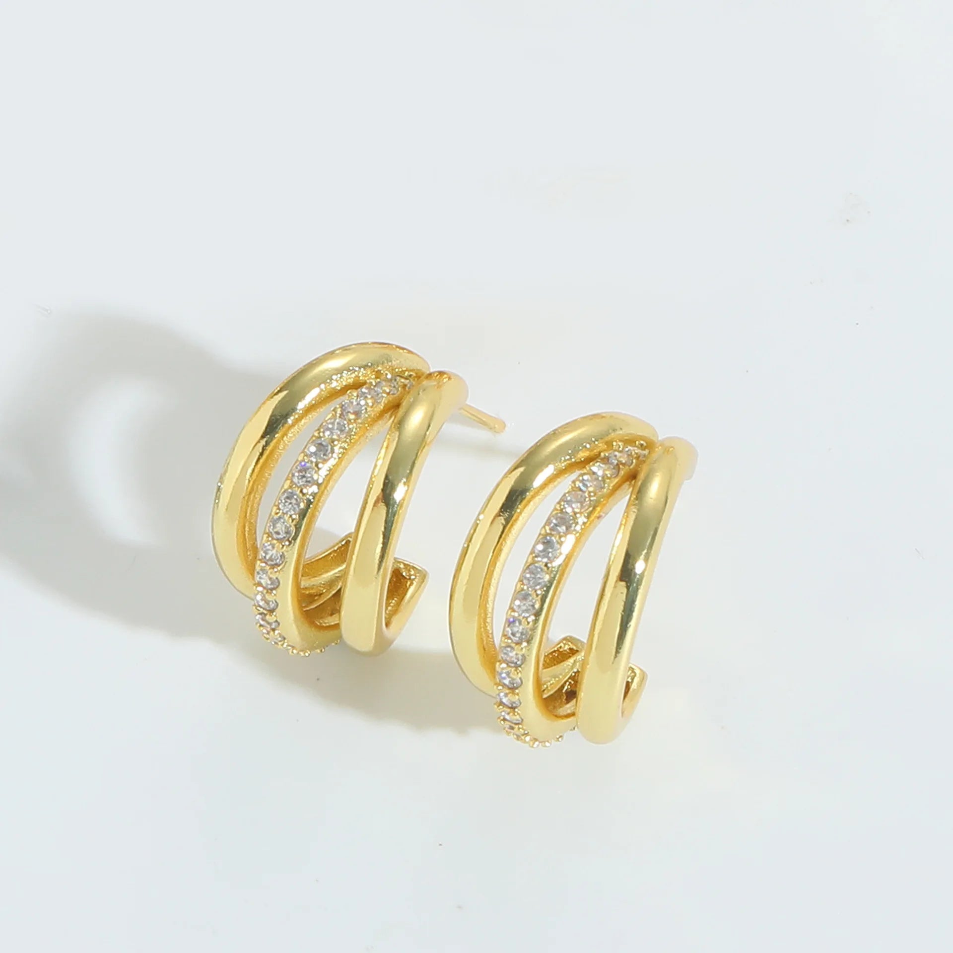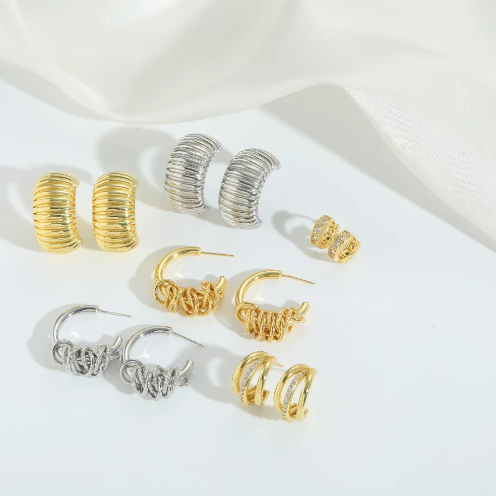 Women's 18K Gold Plated Copper Spiral Hoop Earrings Minimalist Chunky Geometric Design Classic Style for Gift Waterproof