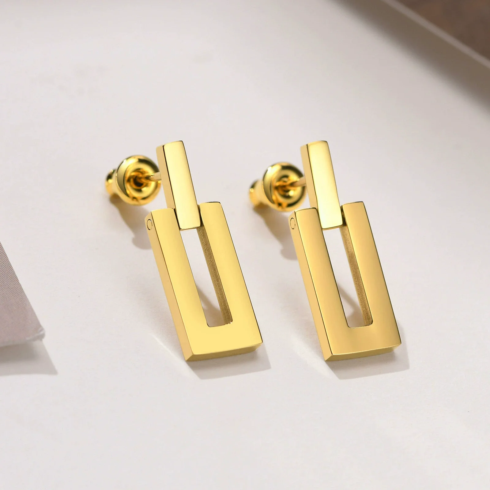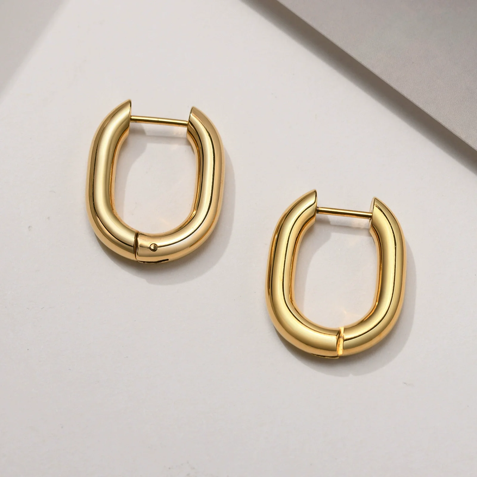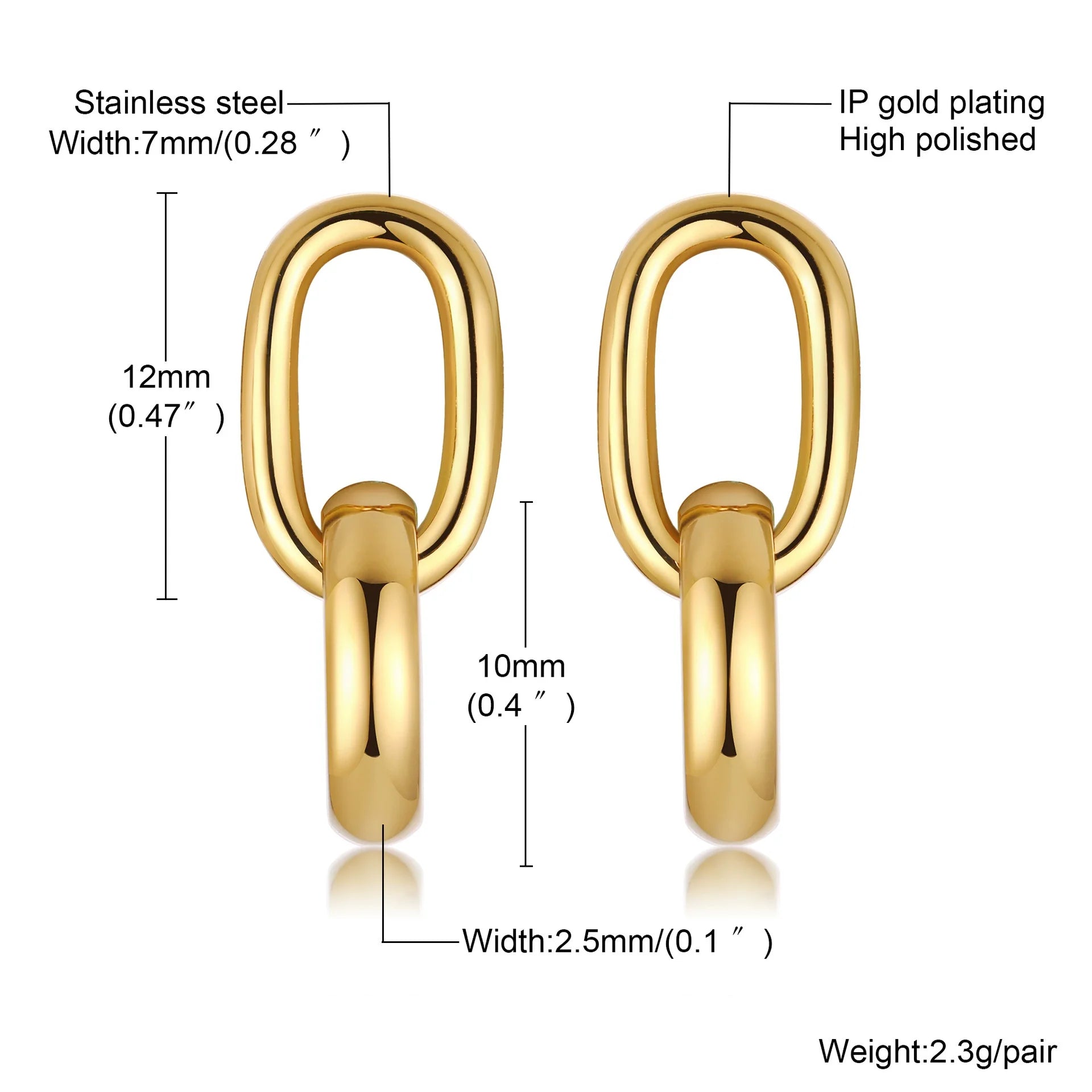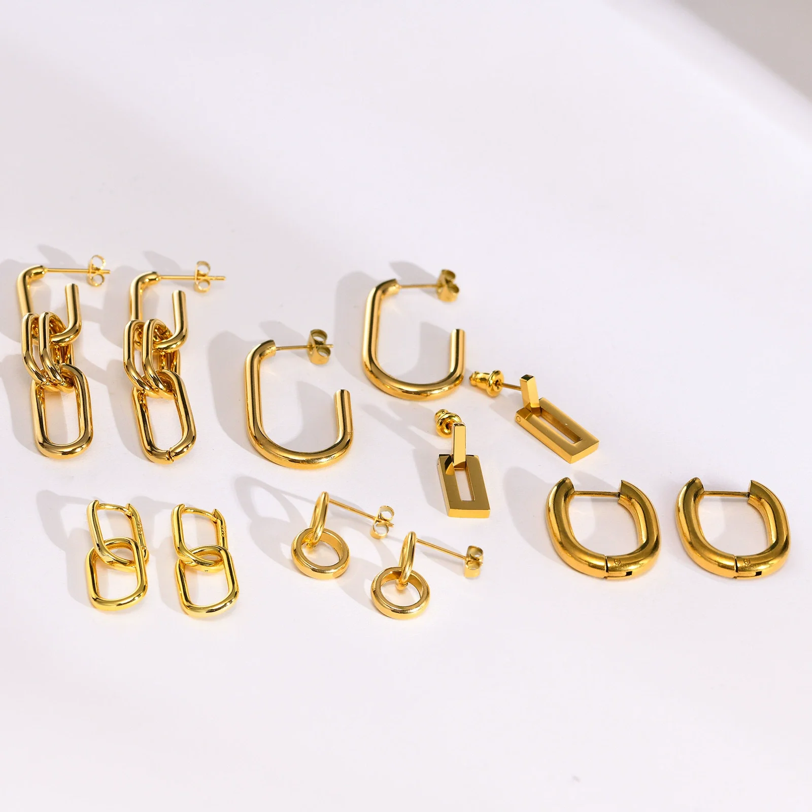 Retro Gold Plated Stainless Steel Geometric Round Vacuum Hoop Earrings Women Boho Chic Jewelry