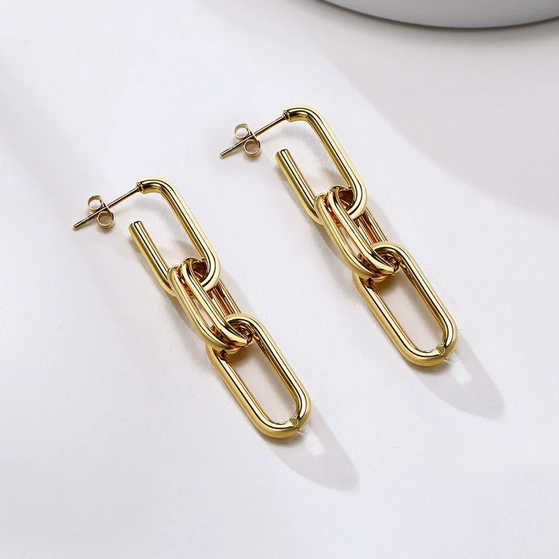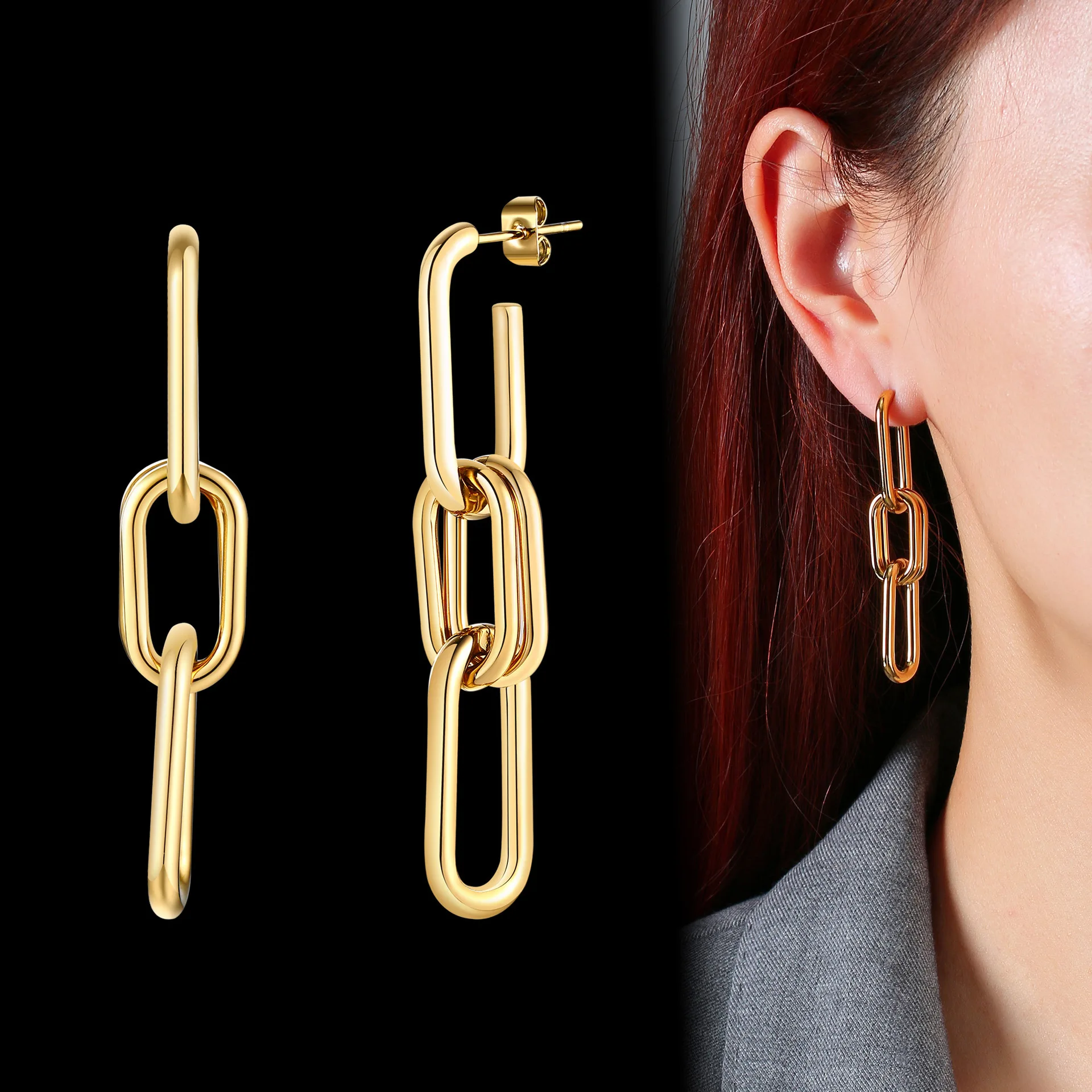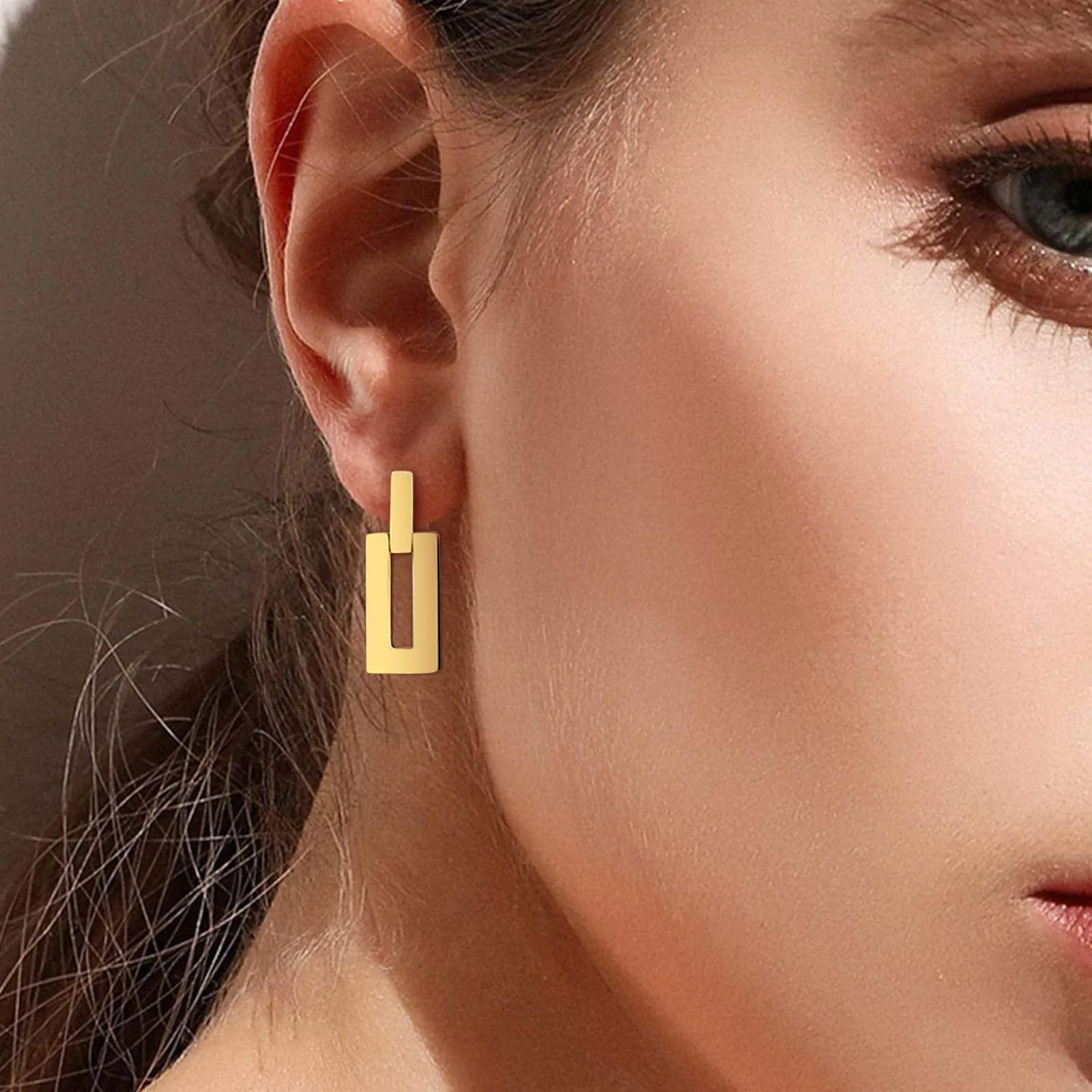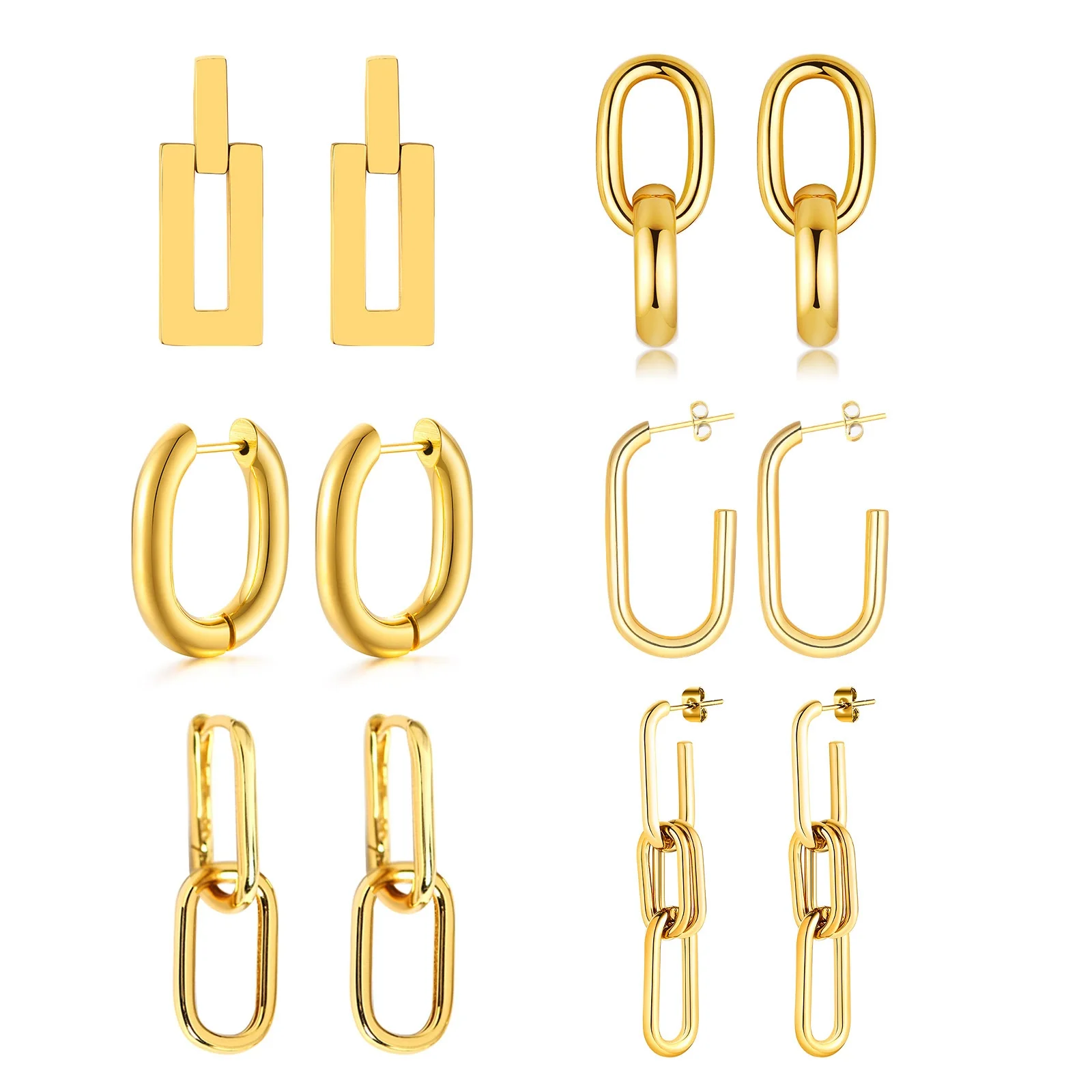 Retro Gold Plated Stainless Steel Geometric Round Vacuum Hoop Earrings Women Boho Chic Jewelry