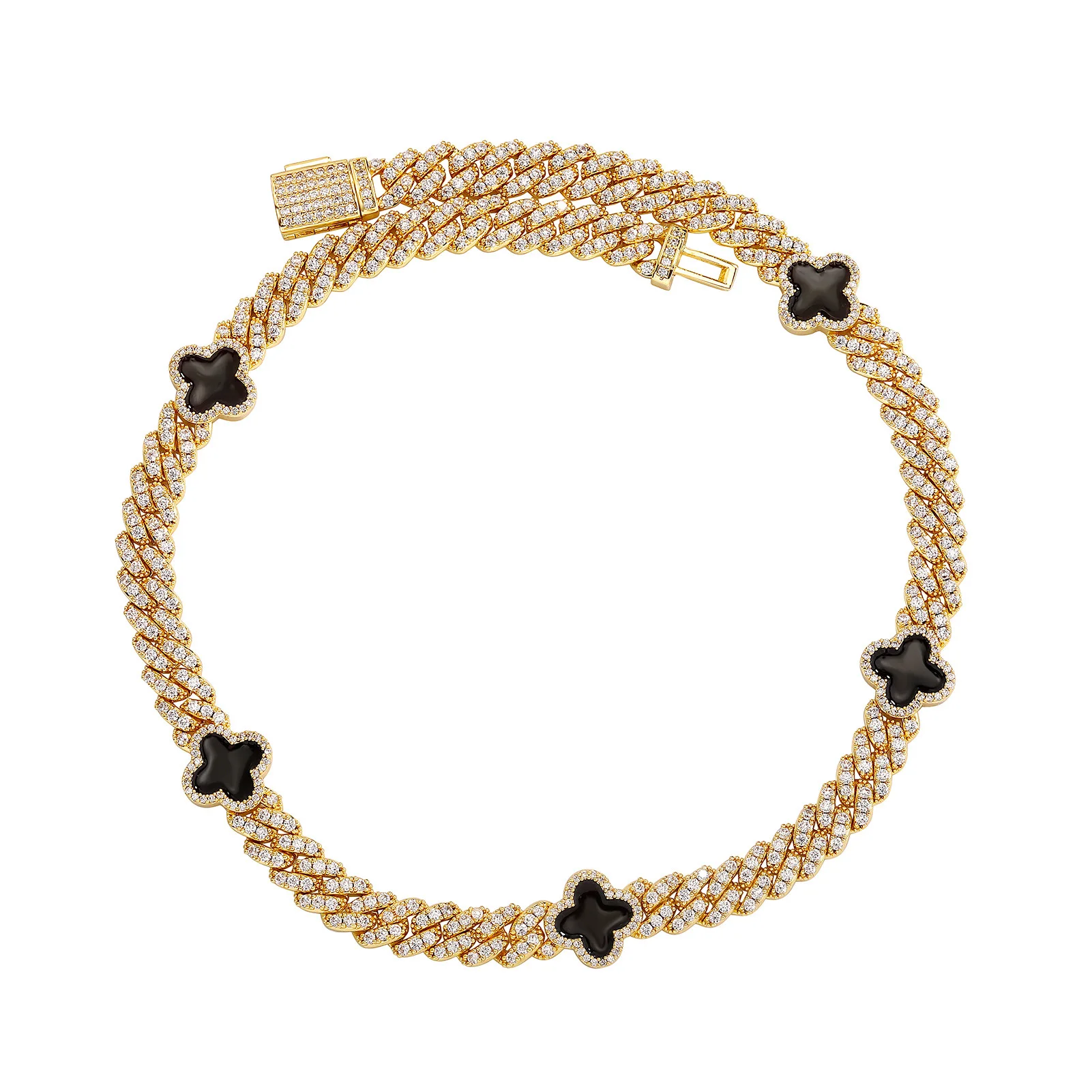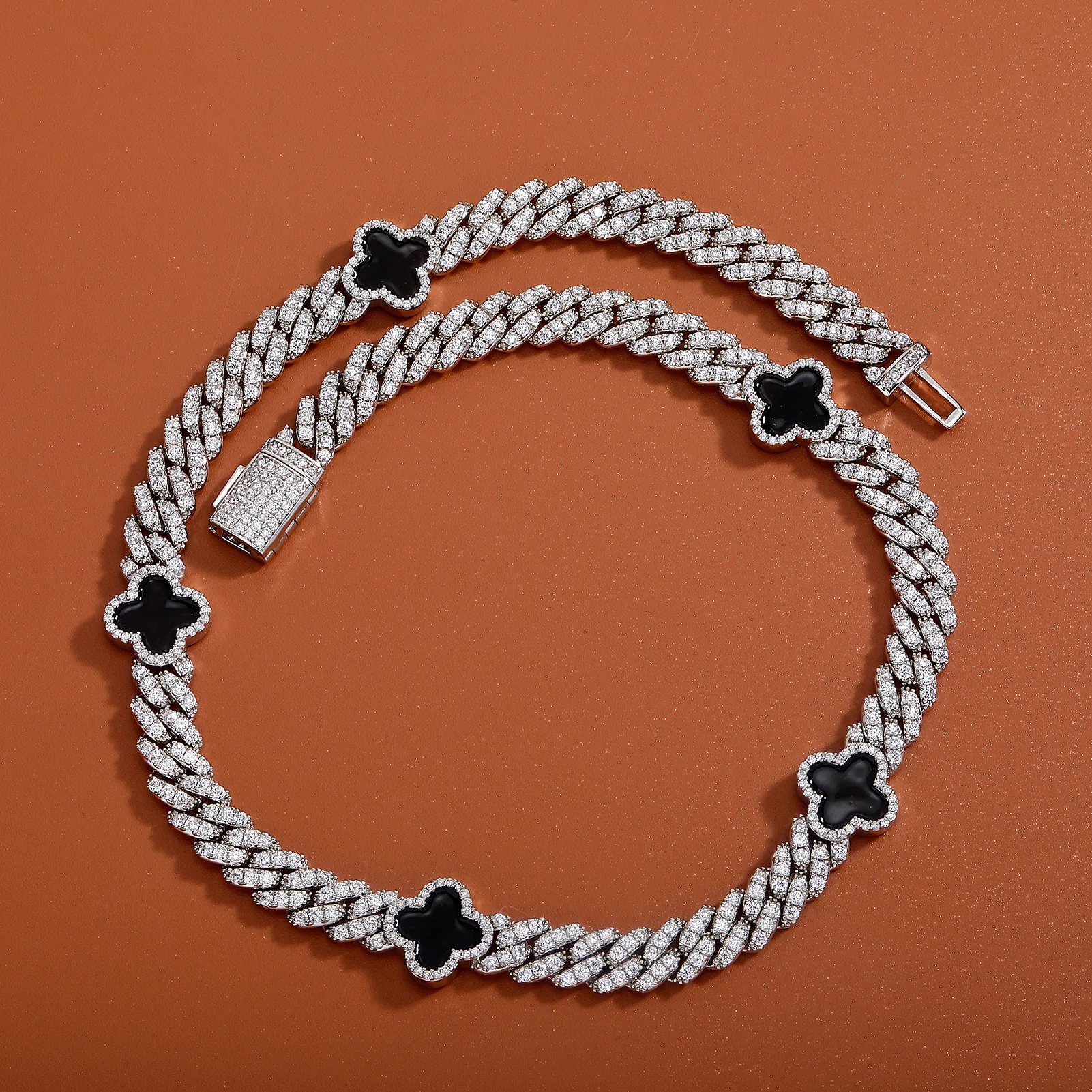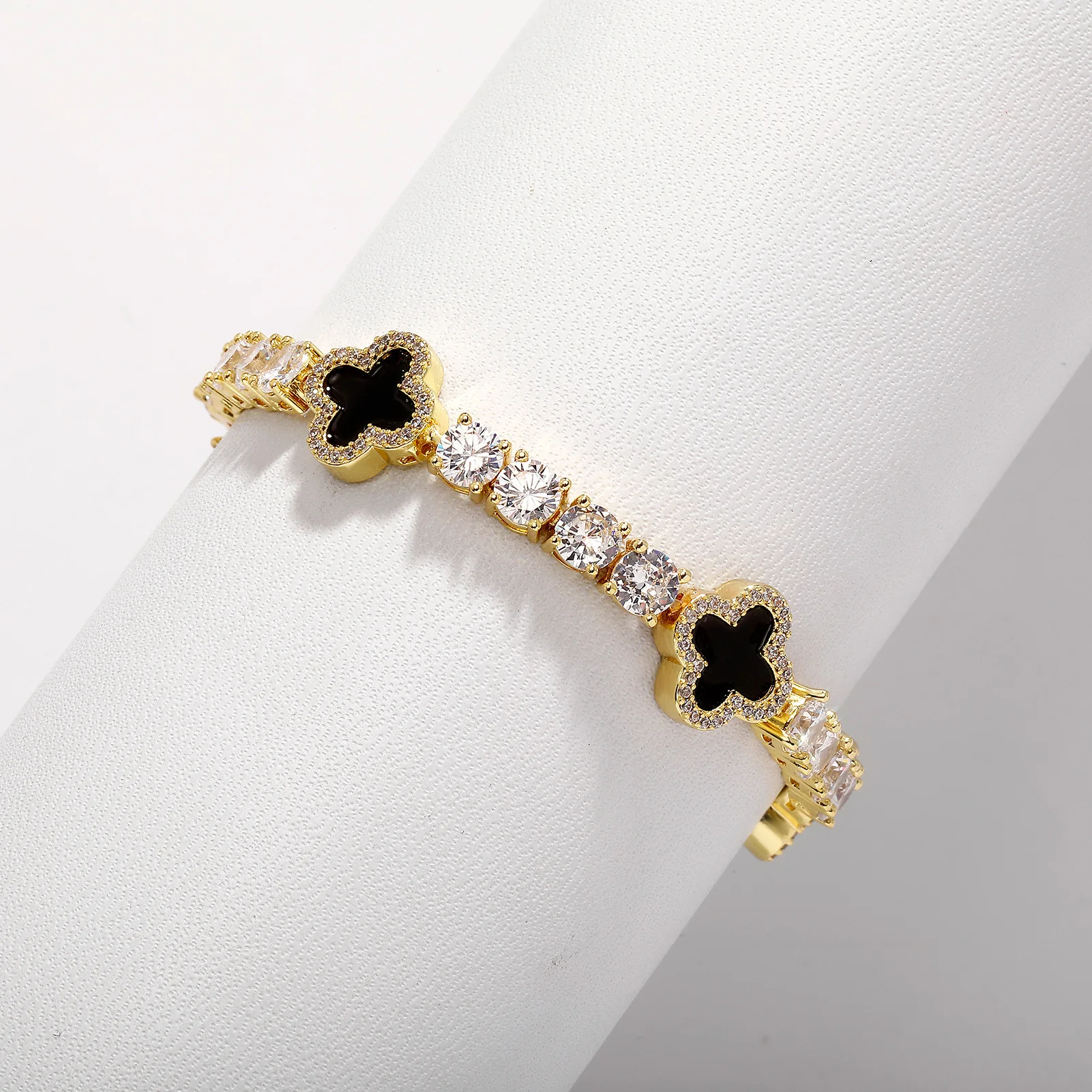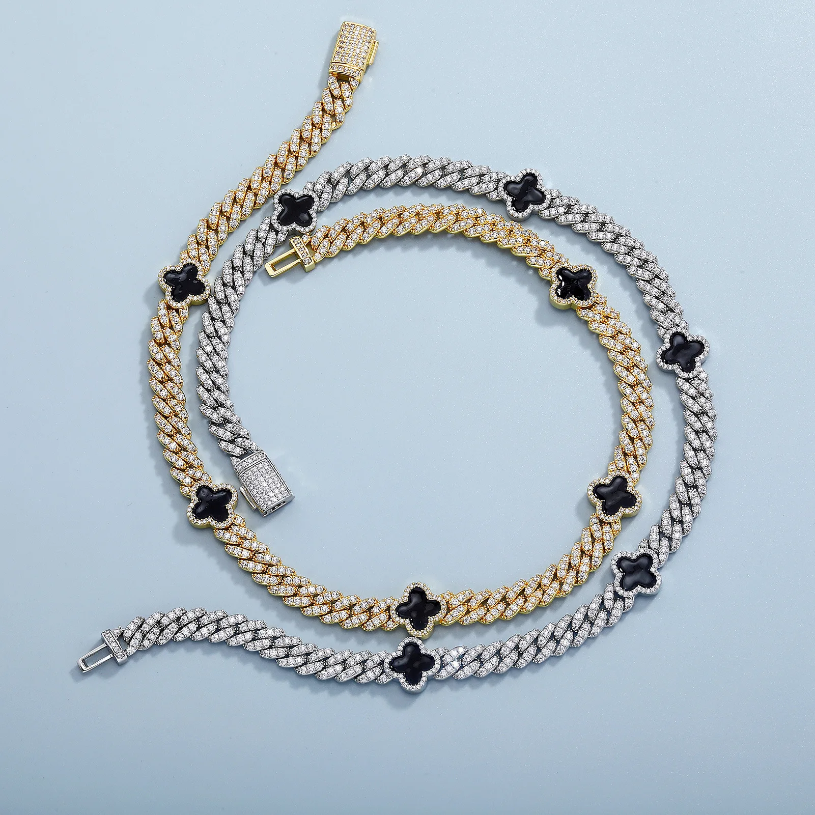 Personalized Hip Hop Jewelry Set for Men Including Four-leaf Clover Tennis Chain and Cuban Link Bracelet