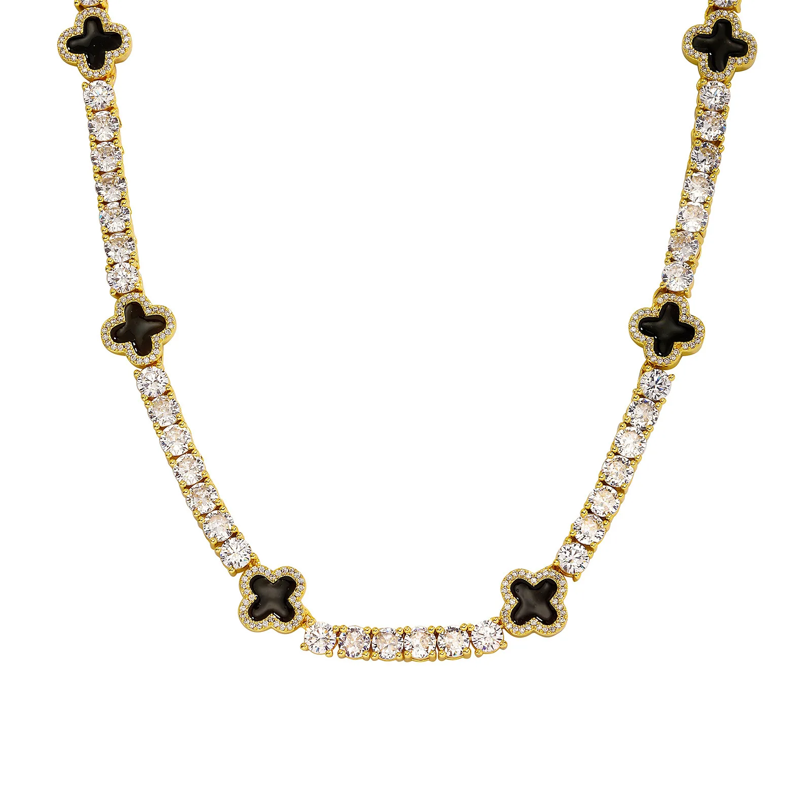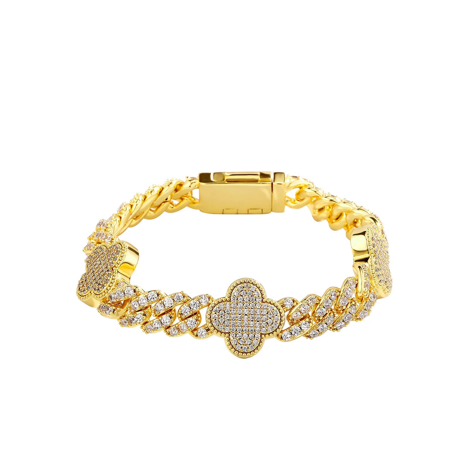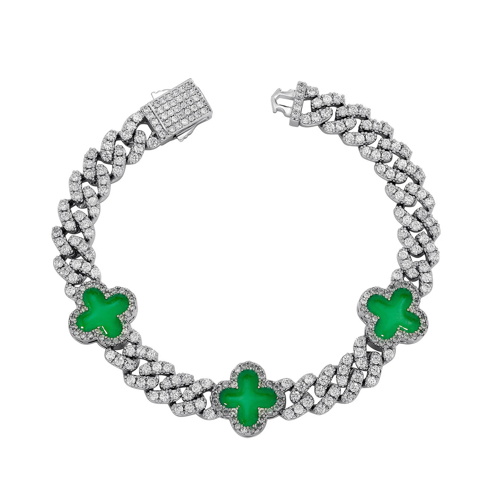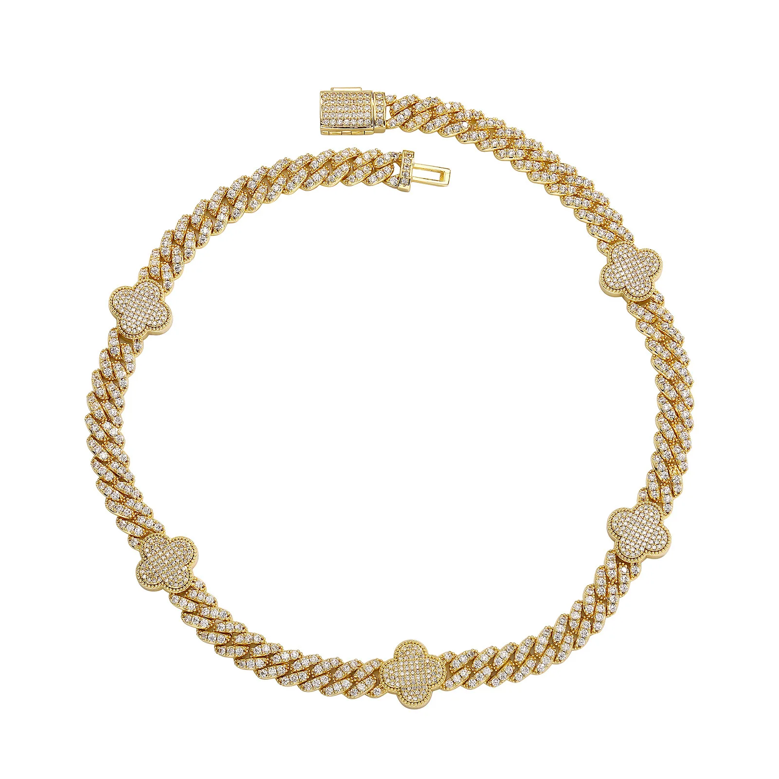 Personalized Hip Hop Jewelry Set for Men Including Four-leaf Clover Tennis Chain and Cuban Link Bracelet