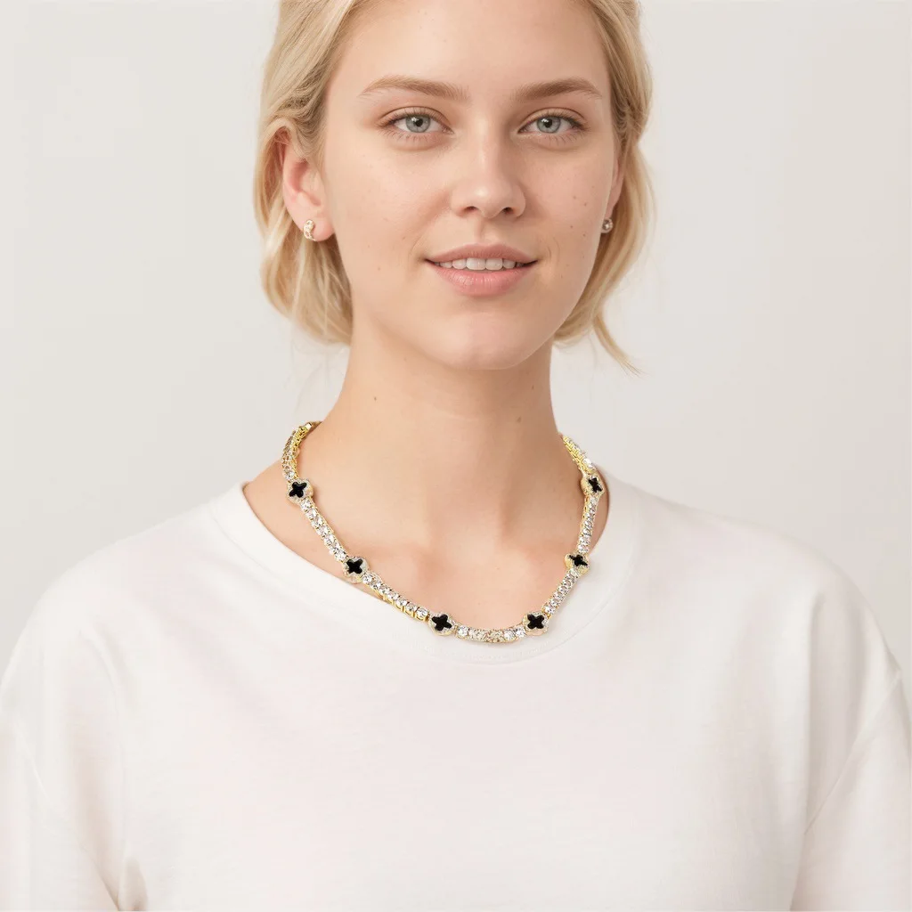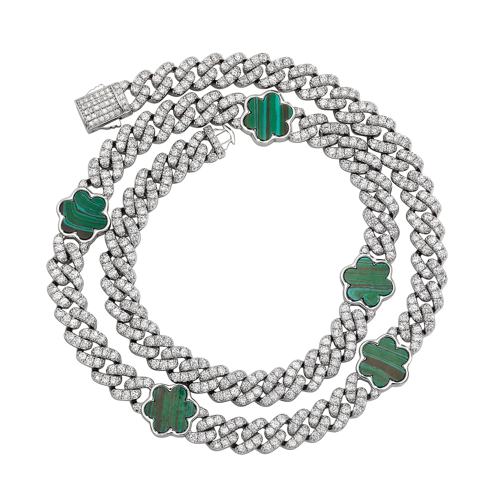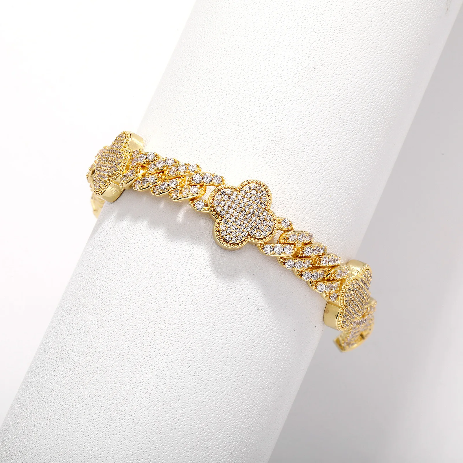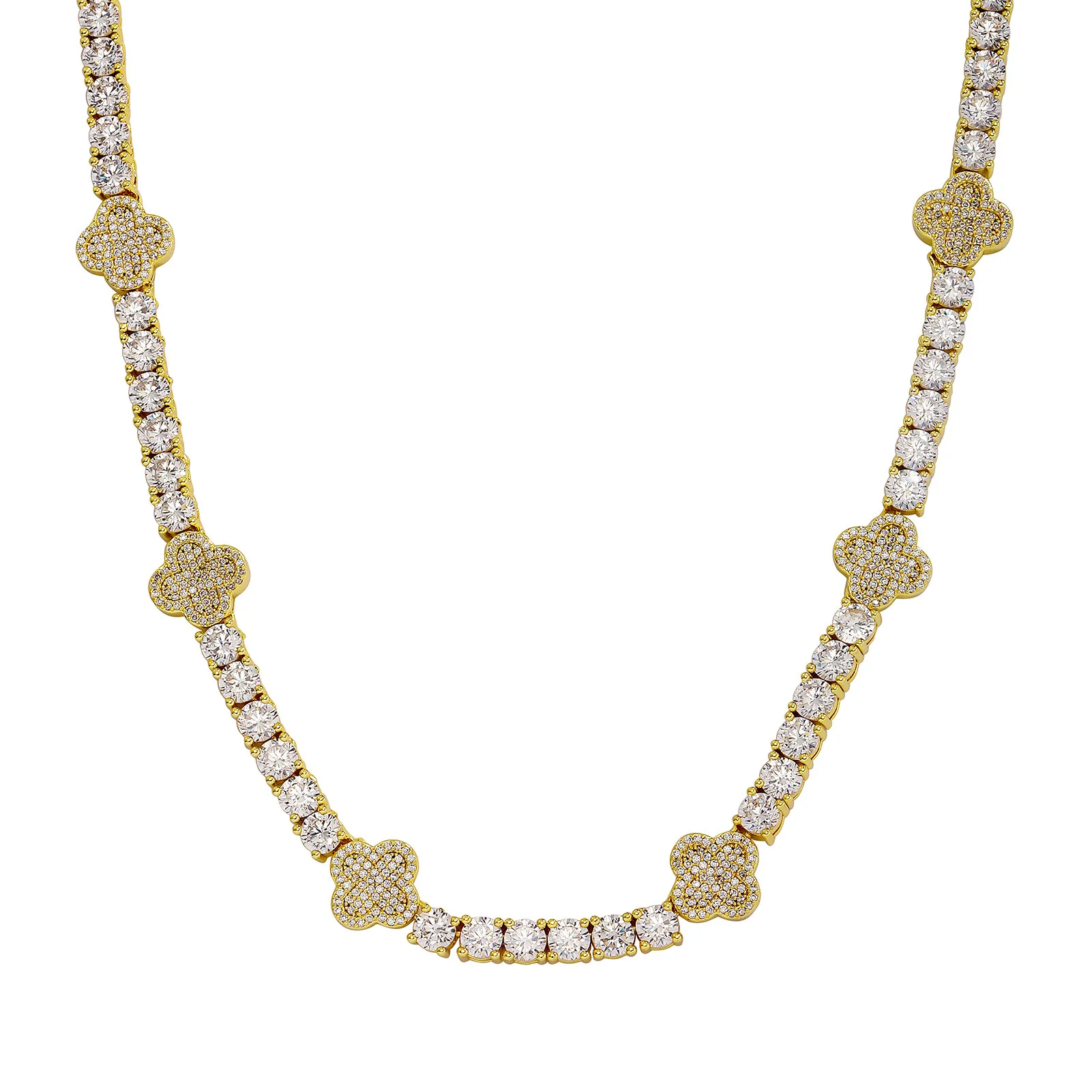 Personalized Hip Hop Jewelry Set for Men Including Four-leaf Clover Tennis Chain and Cuban Link Bracelet