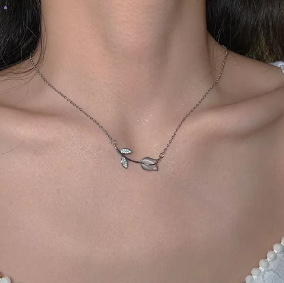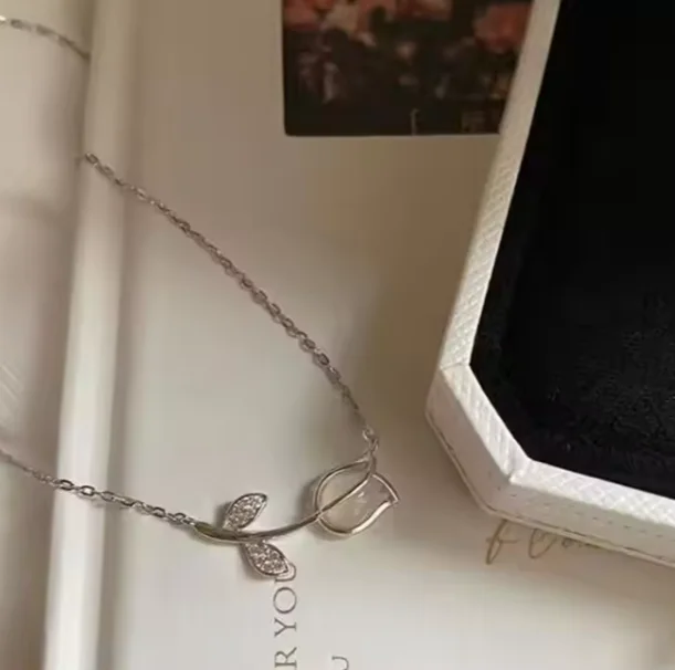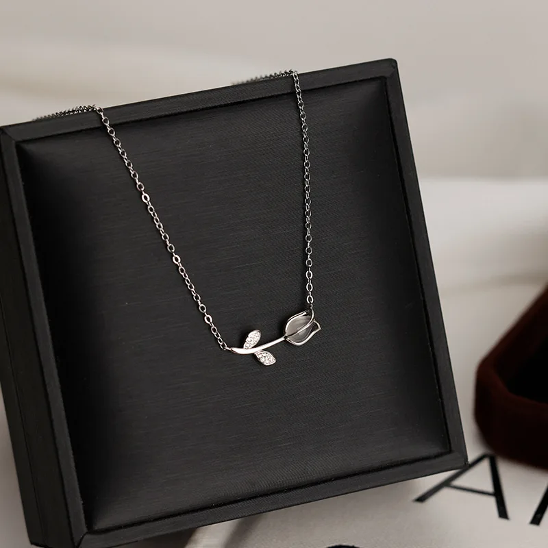 Fashion Tulip Moonstone Necklace High Quality 925 Sterling Silver Necklace Temperament Girl Jewelry Necklace for Dating