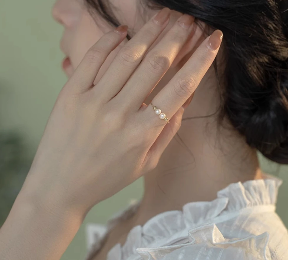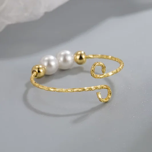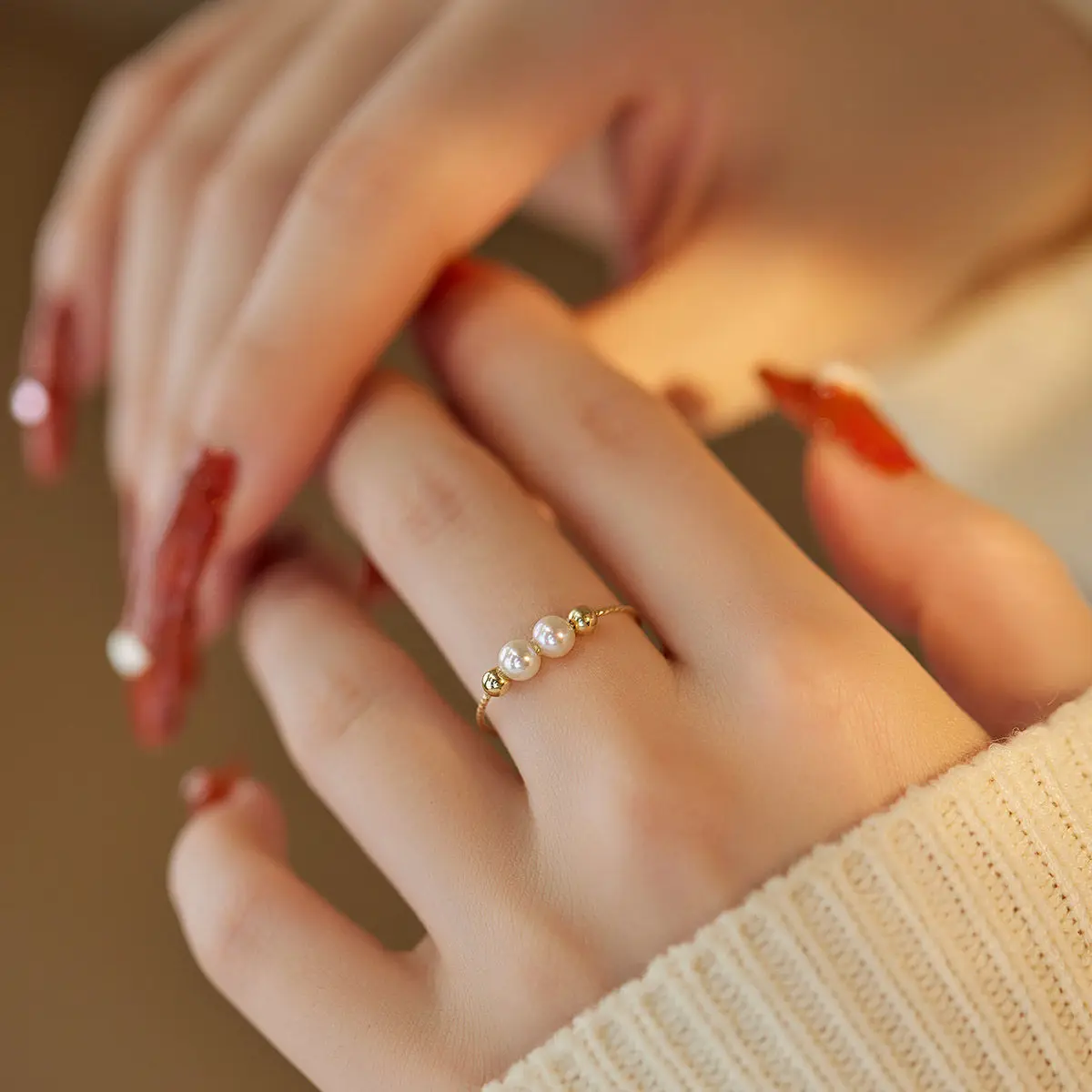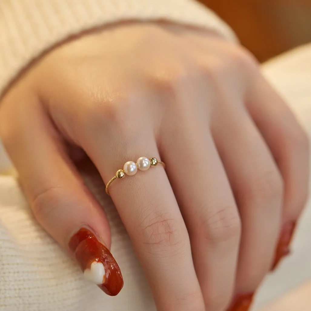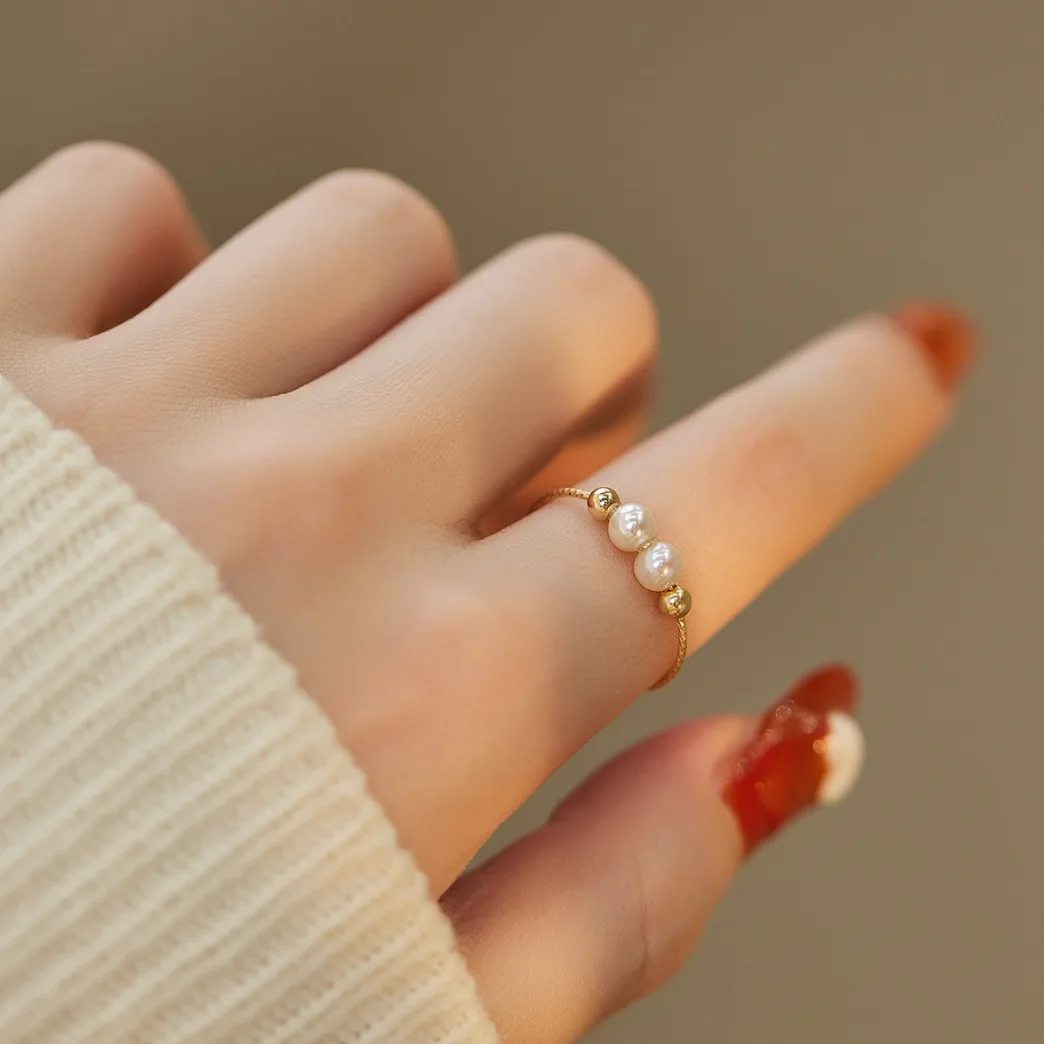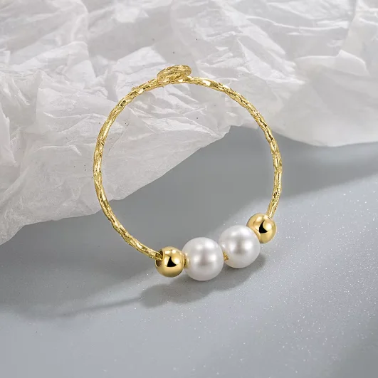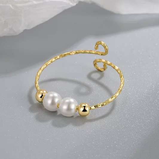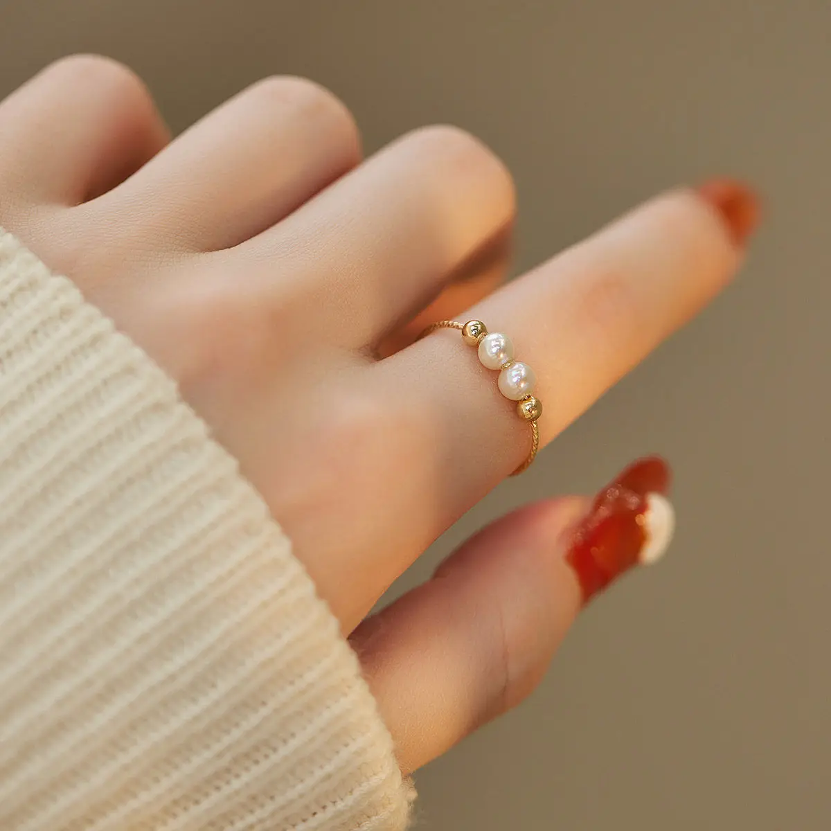 Wholesale Fashion Gold Plated Beads Imitation Pearl Ring Simple Cute Opening Adjustable Fine Rings for Women