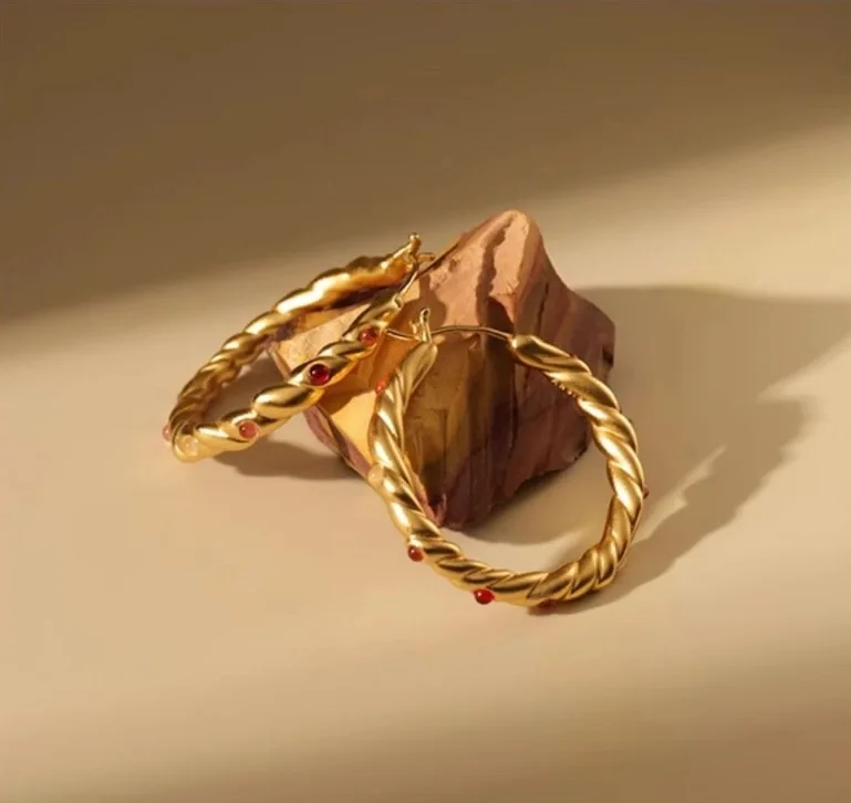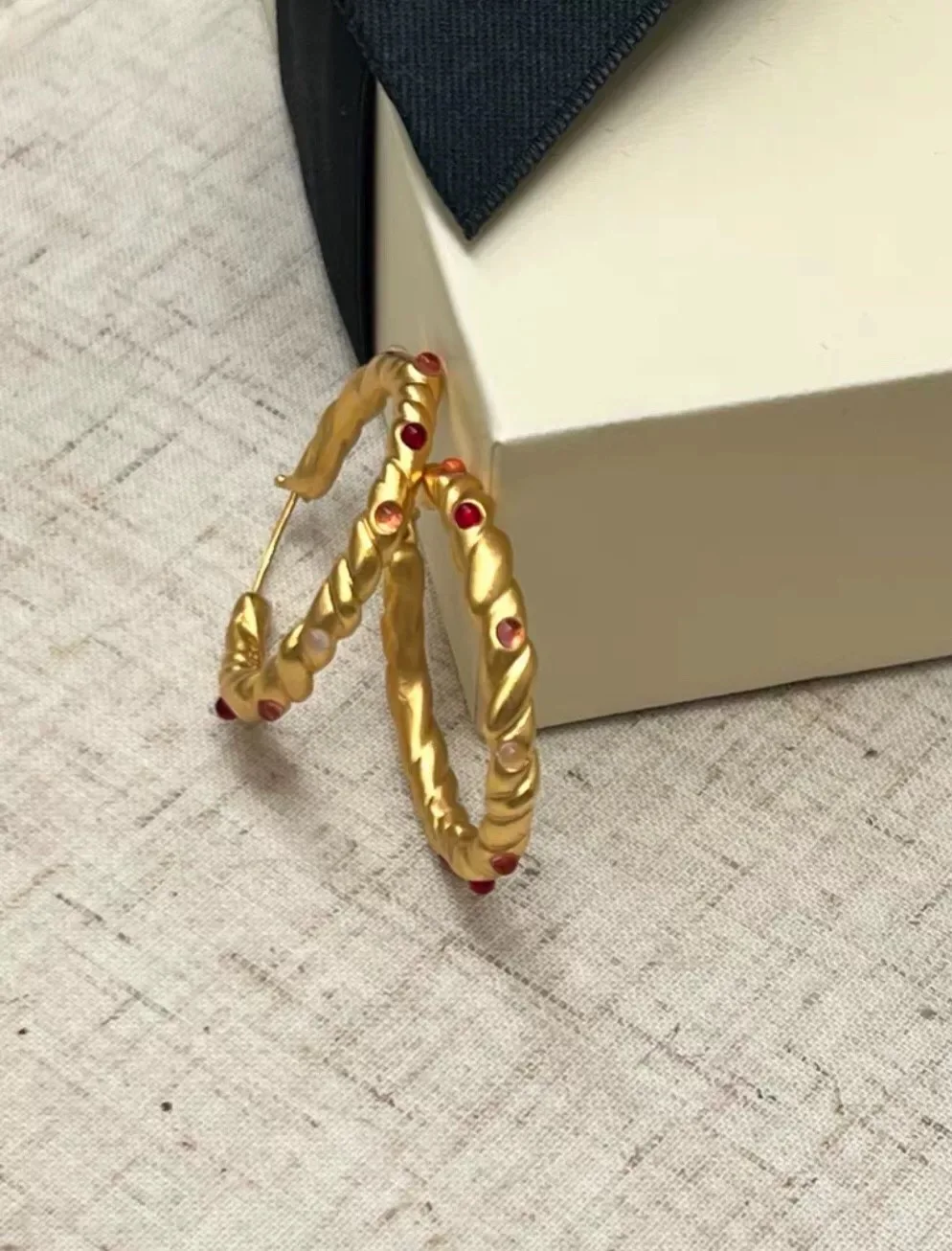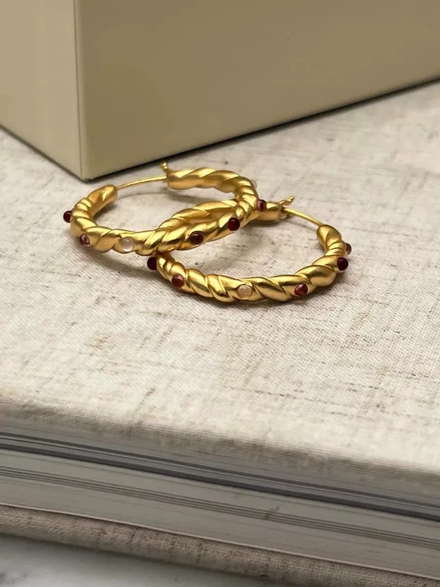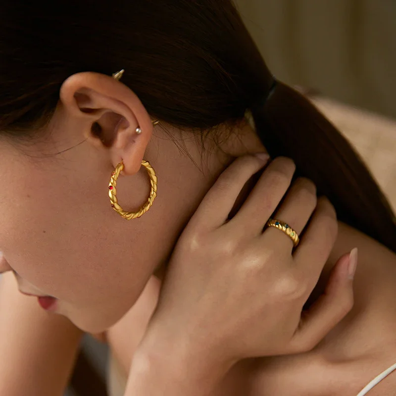 Retro Colorful Zircon Large Gold Hoop Earrings Geometric Spiral Rope Twist Hoops Stud Earrings for Women Valentine Gift