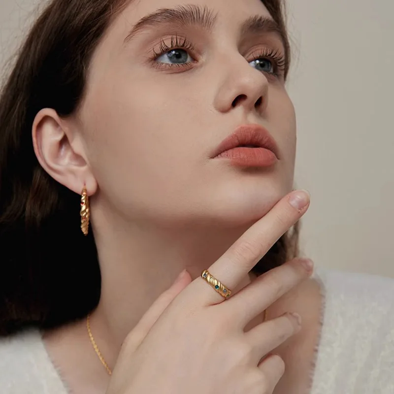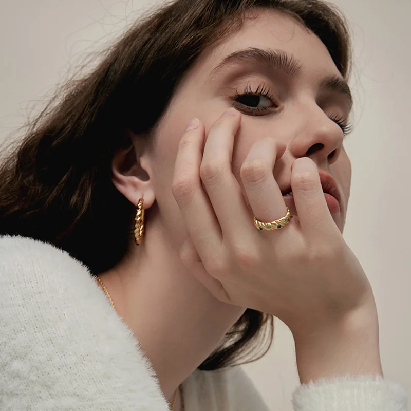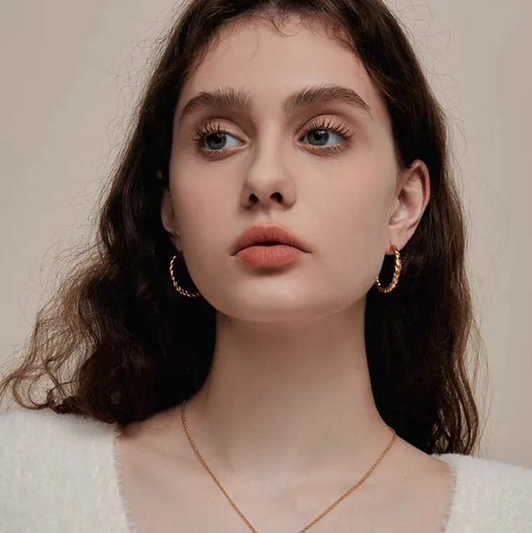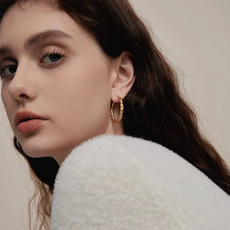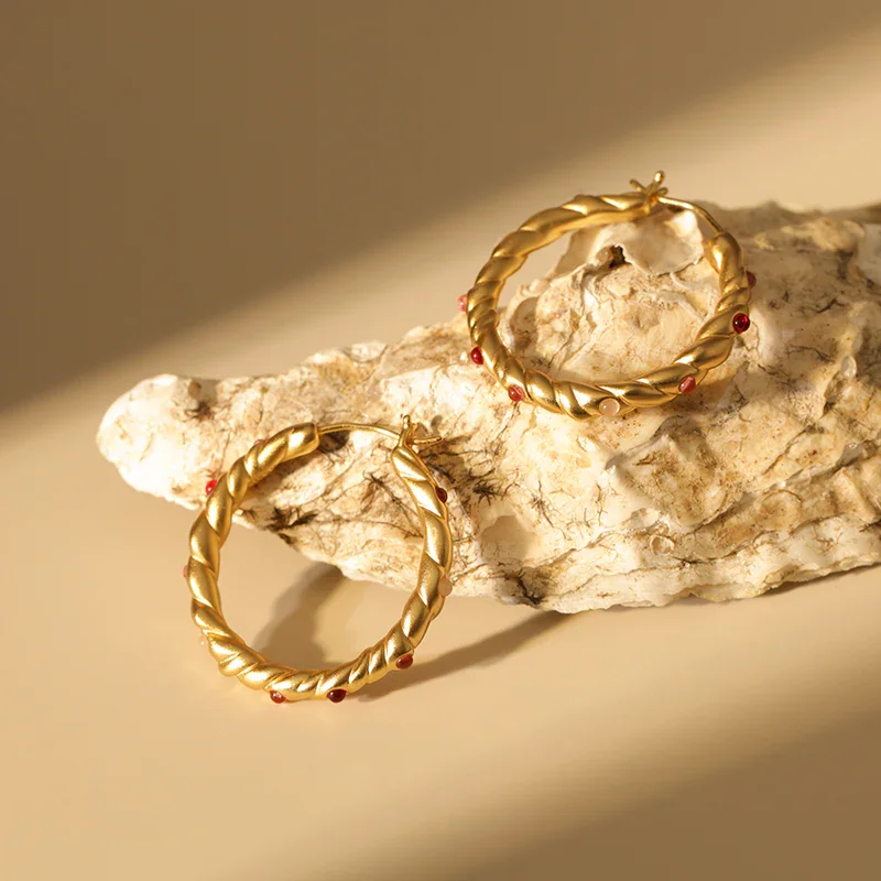 Retro Colorful Zircon Large Gold Hoop Earrings Geometric Spiral Rope Twist Hoops Stud Earrings for Women Valentine Gift