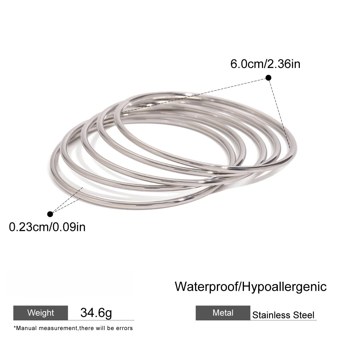 18k Gold Plated Stainless Steel Bangles 5pcs Set Minimalist Gold & Silver Color Stackable Bracelets for Women