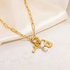 Stainless Steel 18k Gold Plated Necklace Zircon Lock Key Pearl Pendant Necklace for Women 2025 Summer Trend