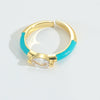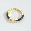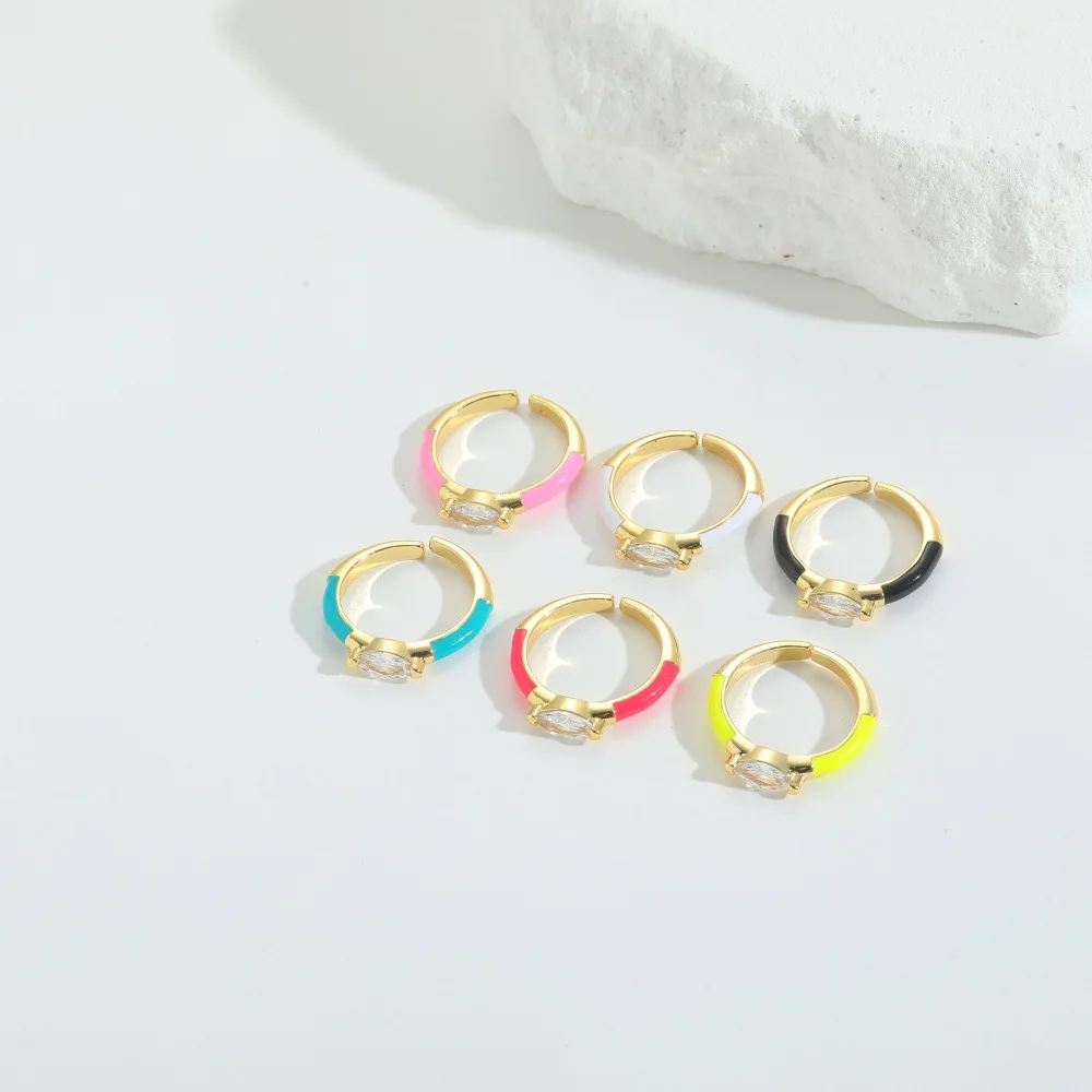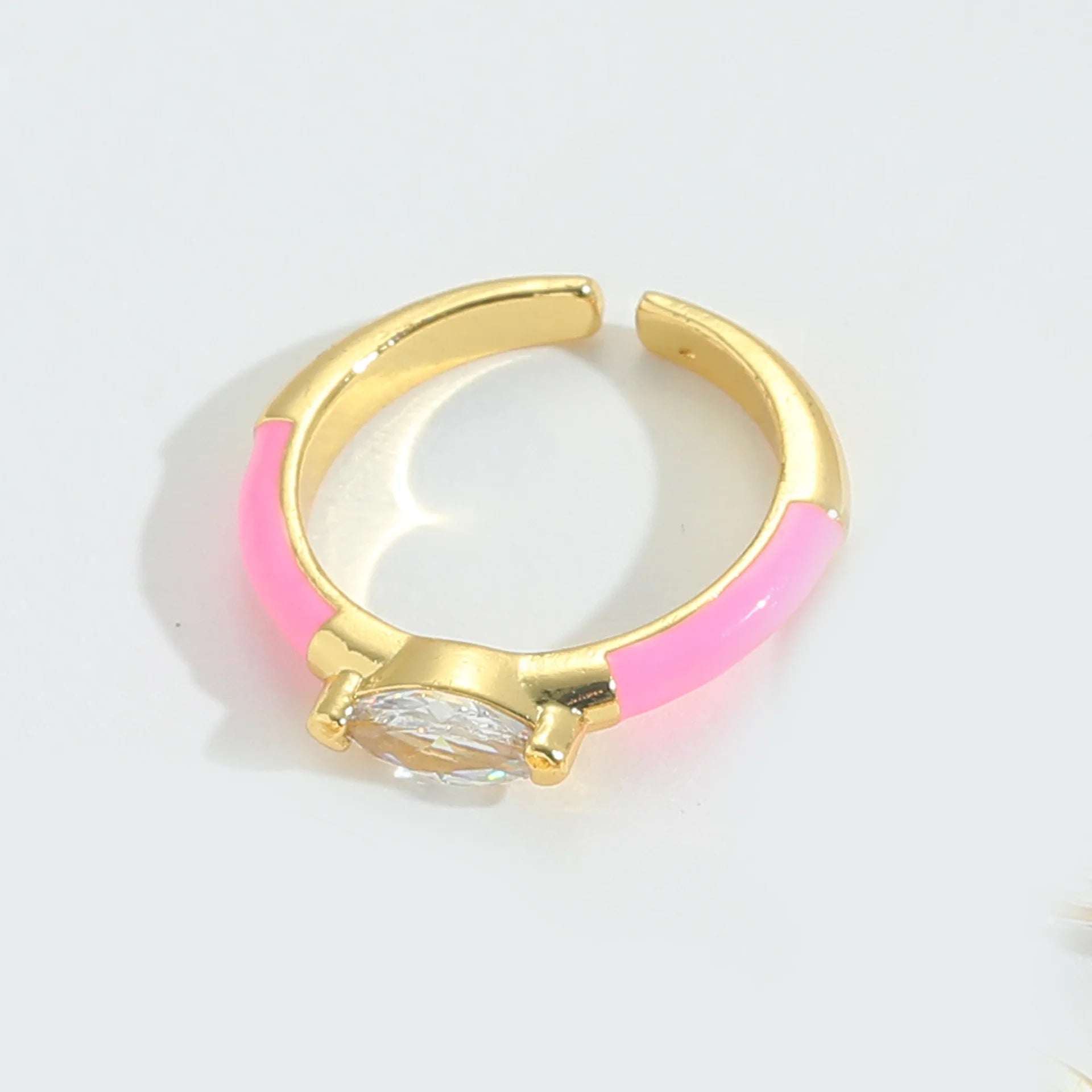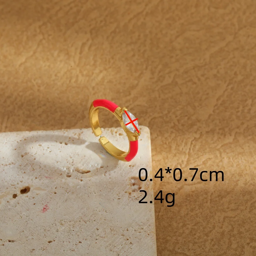 New Oil Dripping Copper Gold-plated Women Copper Ring Minimalist Style Horse Eye Shaped Zircon Inlay Embellishment Jewelry