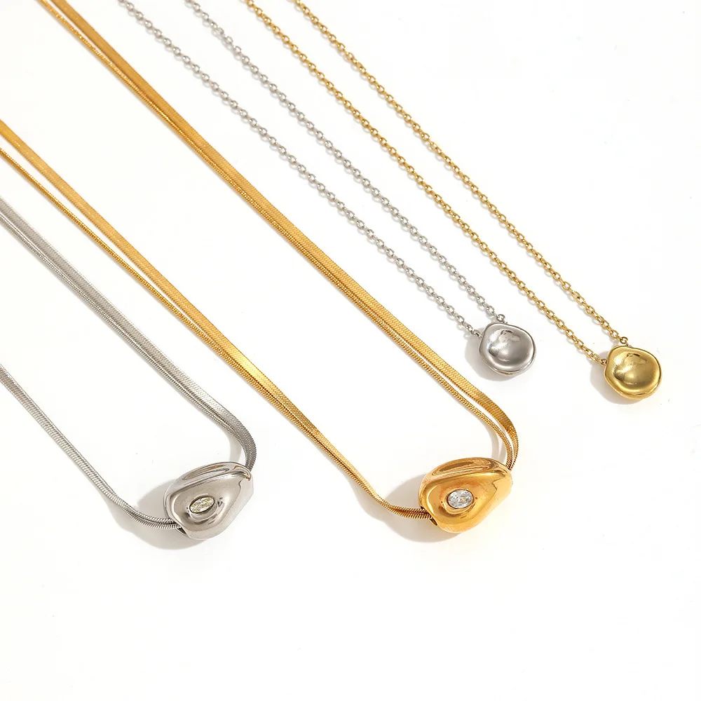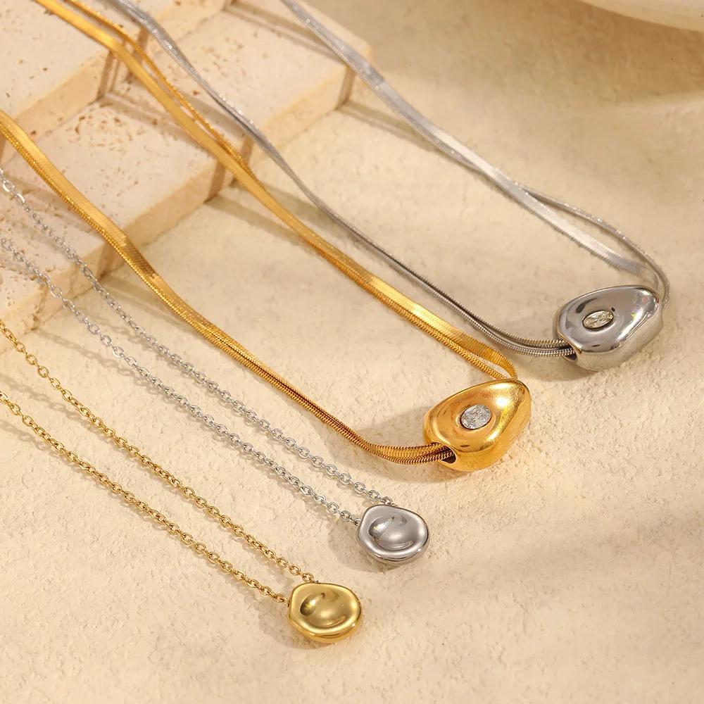 wholesale Irregular Gold Bean with Zirconia stainless steel Necklaces Stainless Steel Gold Plated Dollar Necklace for women