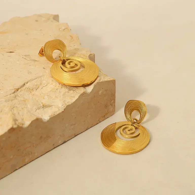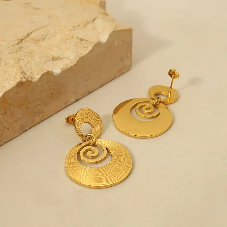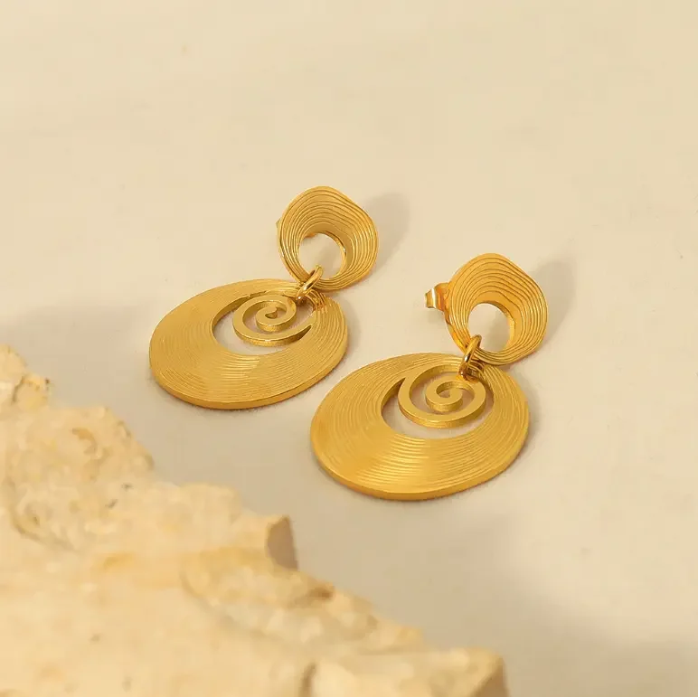 High Quality Large Spiral Earrings 18K Gold Plated Stainless Steel Geometric Hollow Twirling Circle Earrings for Women