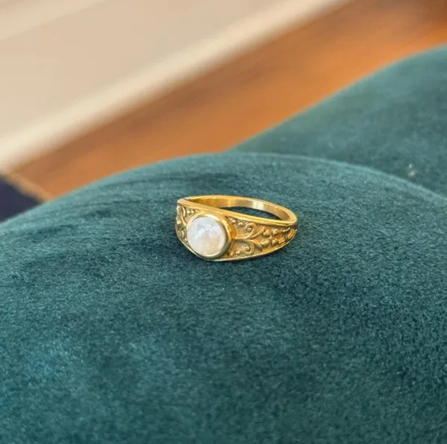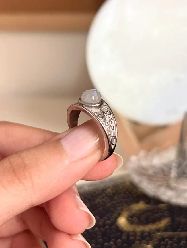 The Moon Ring Gold Moonstone Vine Promise Ring Natural Round Gemstone Boho Stone Jewelry Vintage Carving Silver Rings for Women