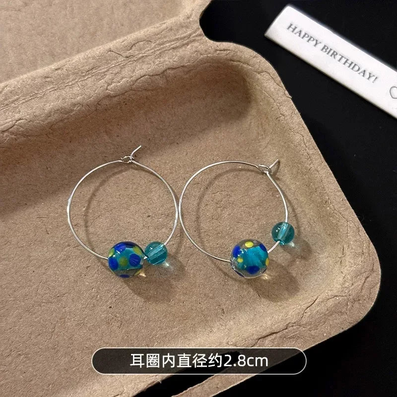 Boho Rainbow Glass Bead Earrings Summer Colorful Ball Circle Earrings for Women Gift