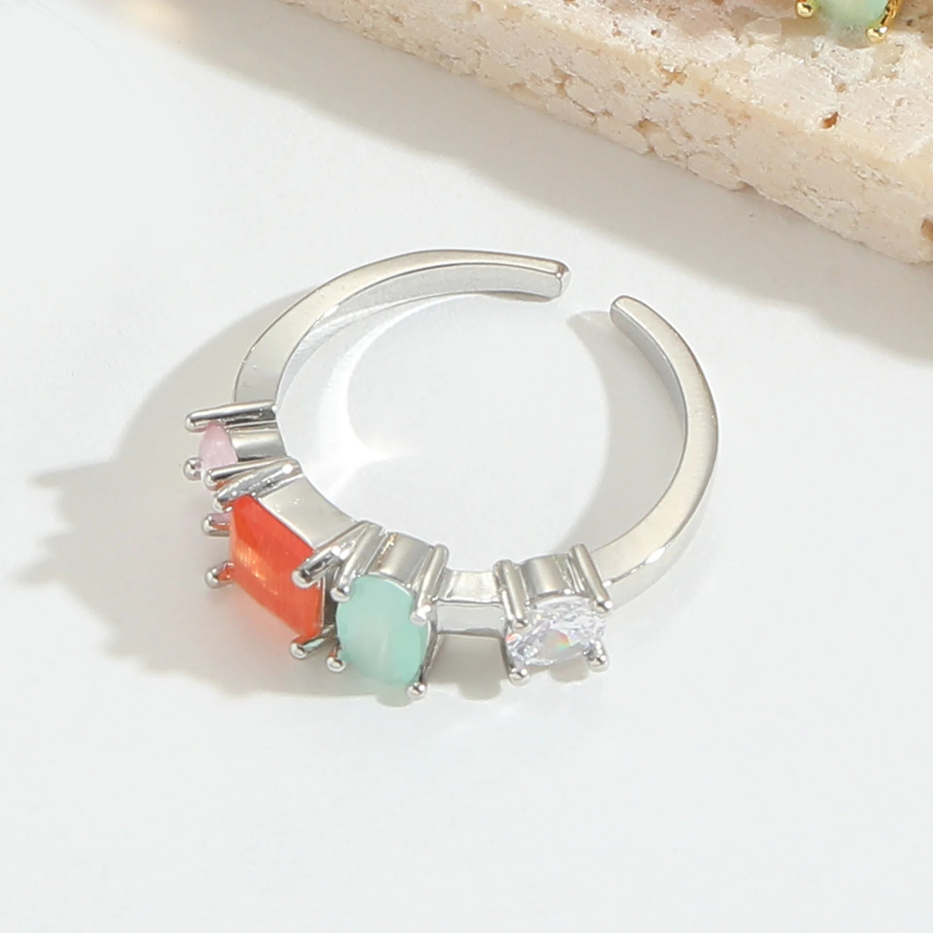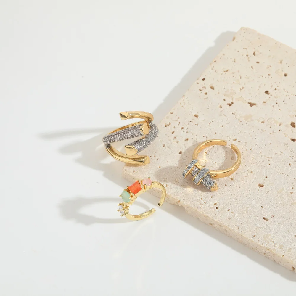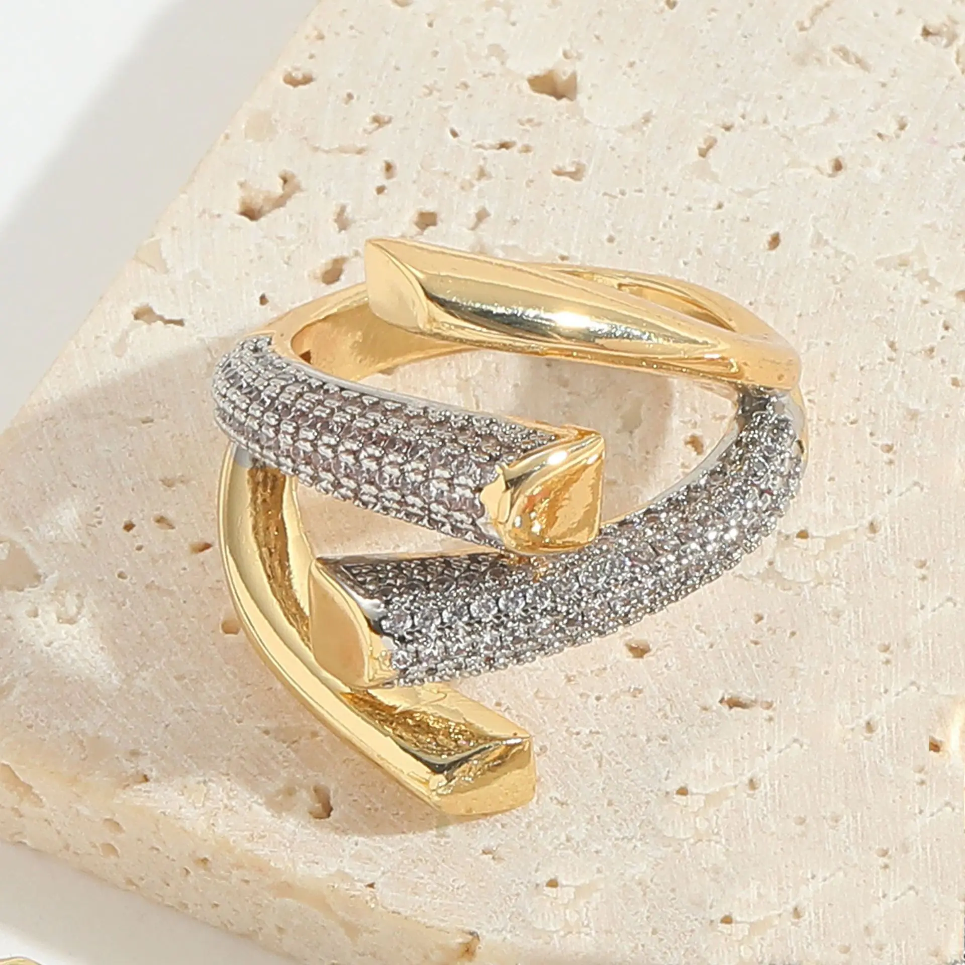 Elegant Women's Trendy Twisted Open Ring Personalized Style Cubic Zirconia Stones Copper Material Fashionable Crystal Jewelry