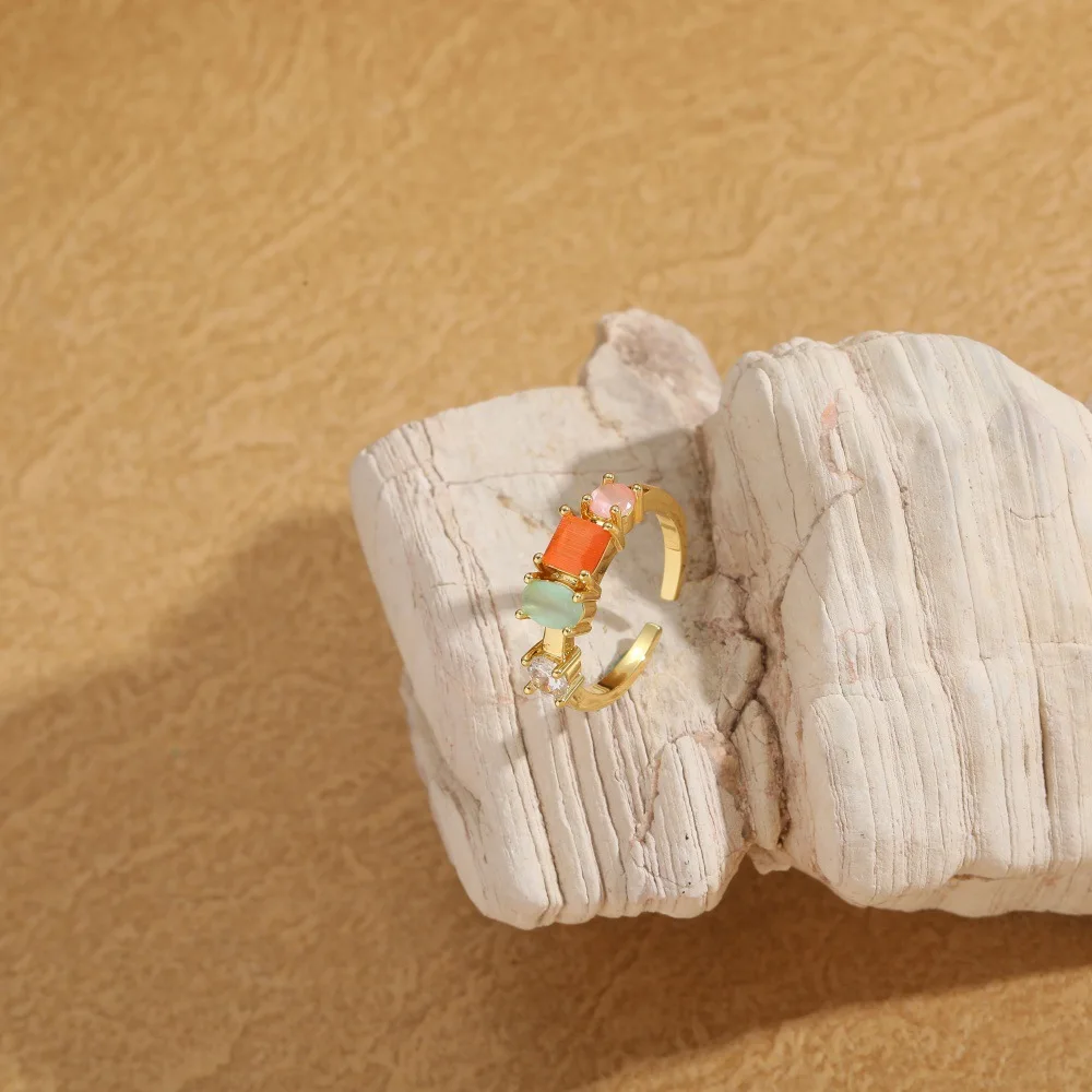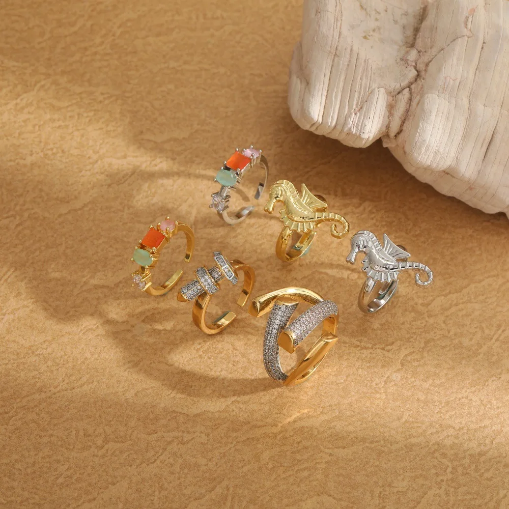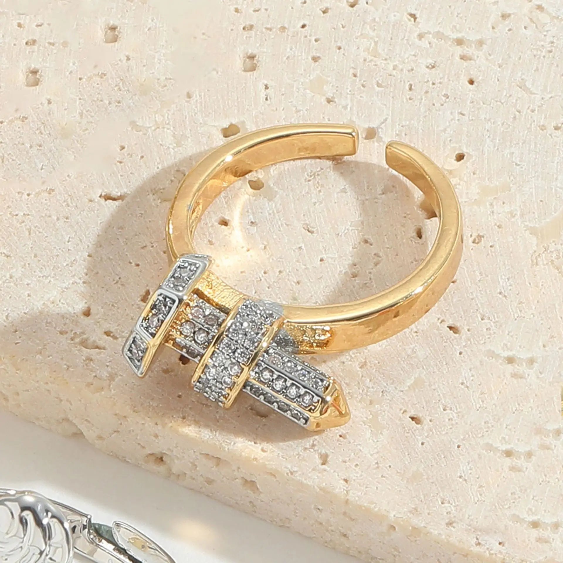 Elegant Women's Trendy Twisted Open Ring Personalized Style Cubic Zirconia Stones Copper Material Fashionable Crystal Jewelry