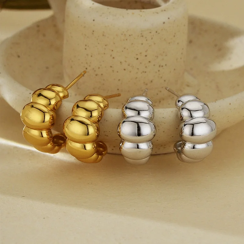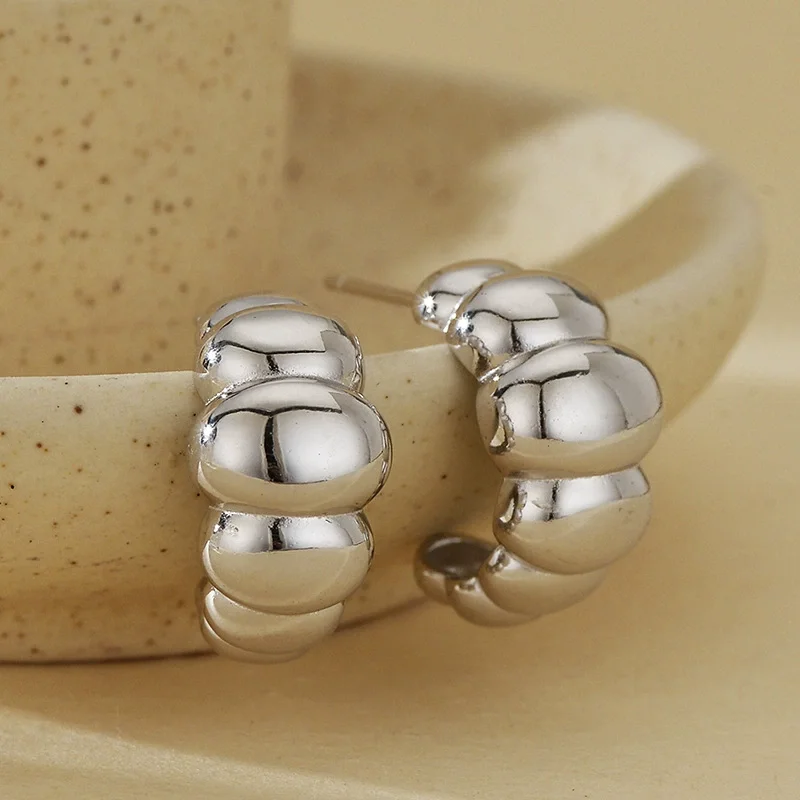 Women's Wide Dome Hoop Earrings 925 Sterling Silver Trendy Hollow Design Jewelry for Parties, Weddings Luxury Accessories