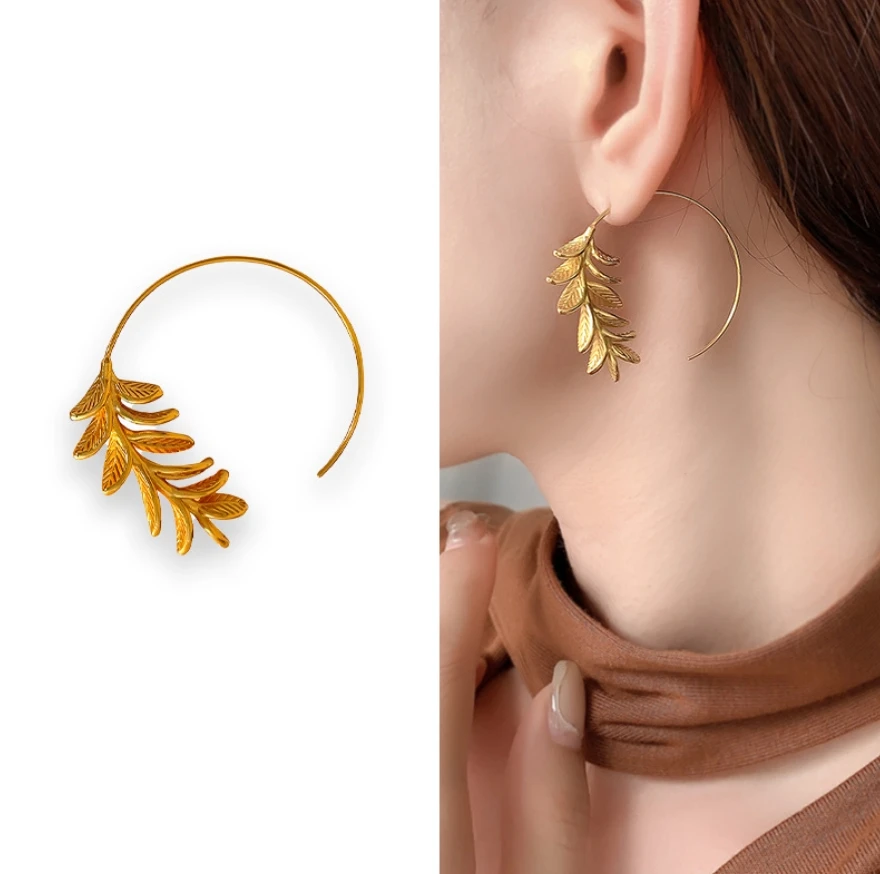 High Quality Flower Wheat Ears Earrings Large Vintage Gold Earrings for Women Valentines Day Gift