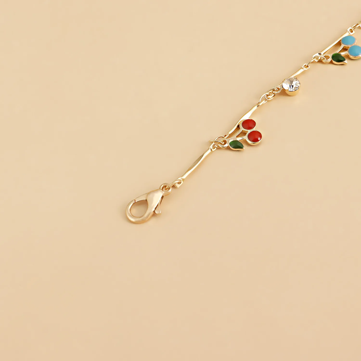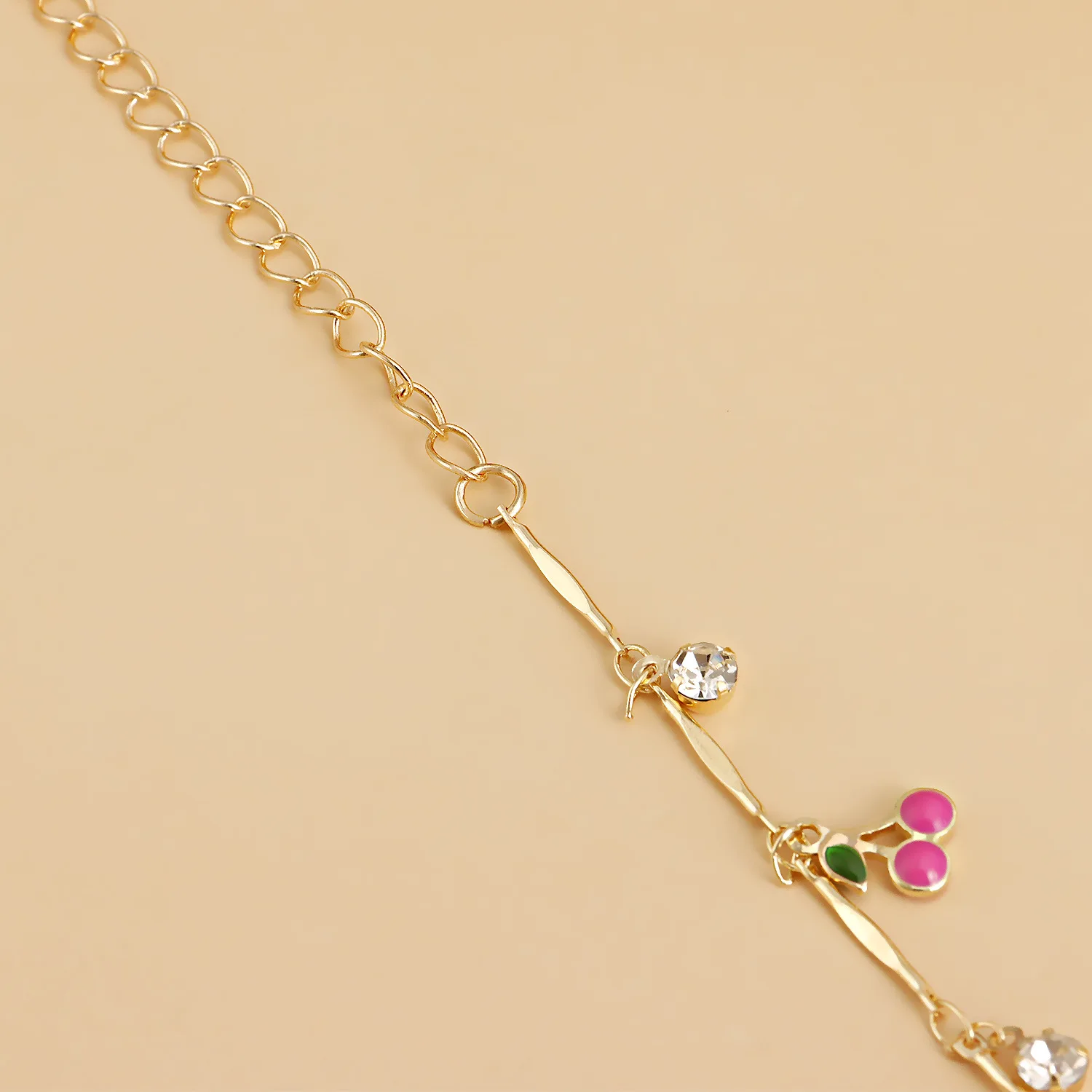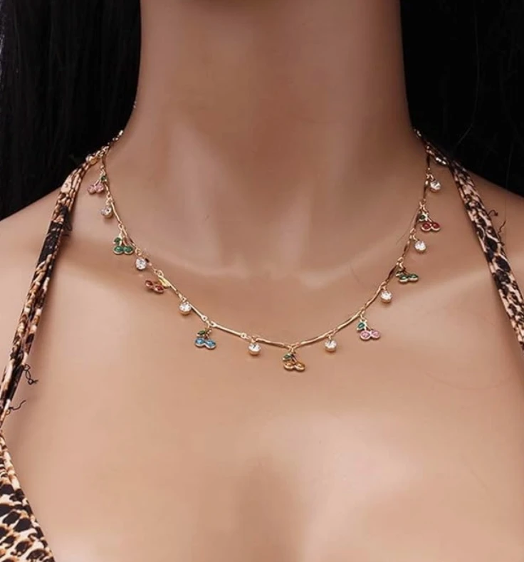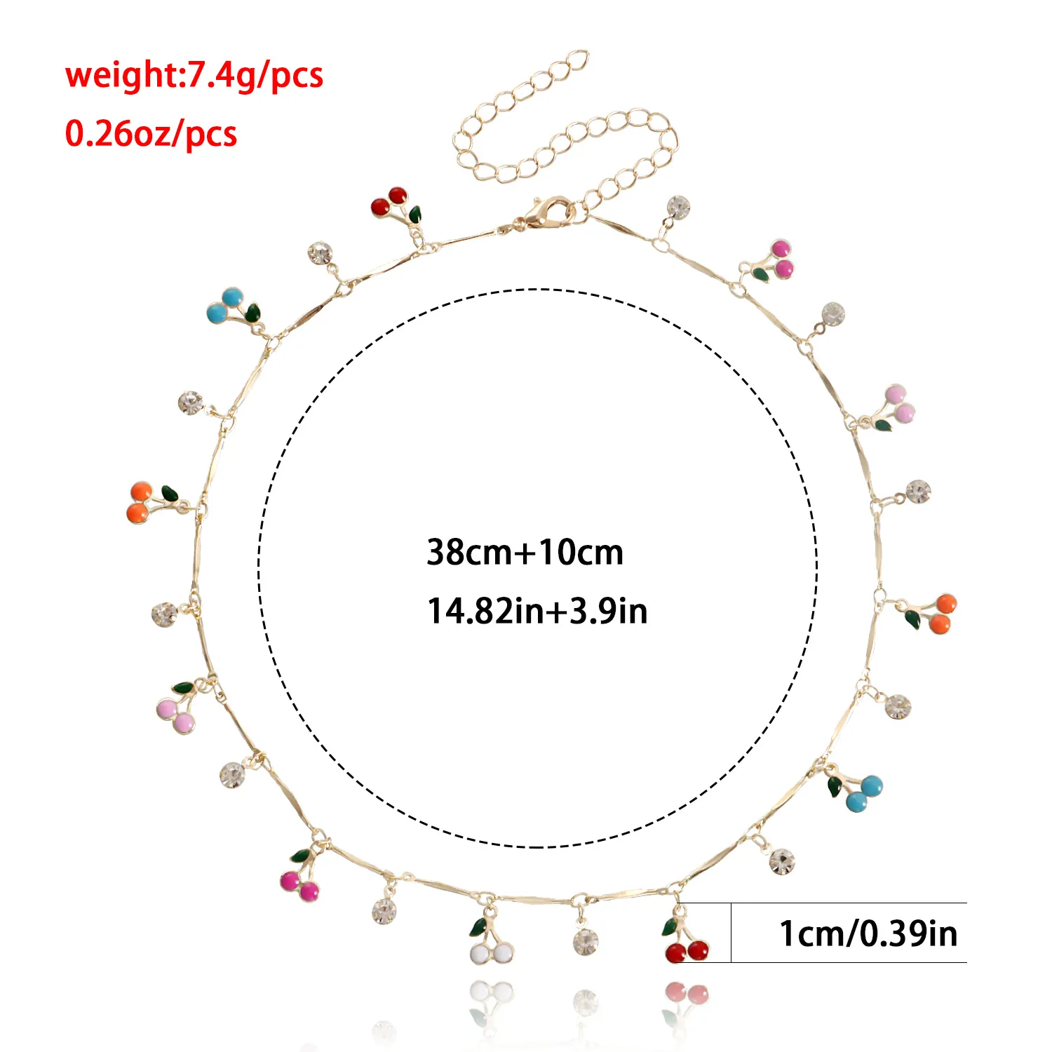 Women's Dainty Gold Chain Necklace with Colorful Cherry Charm Pendant Fruit Beaded Choker-Fashionable Choker Necklace