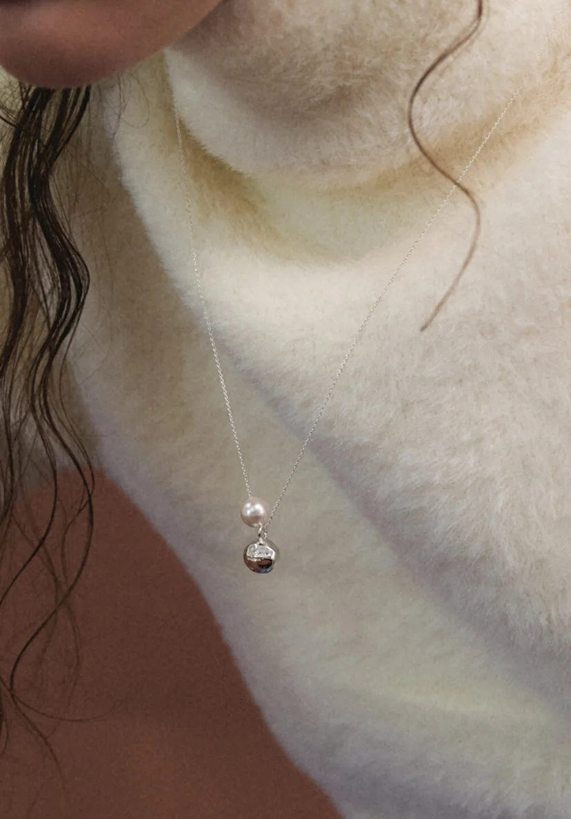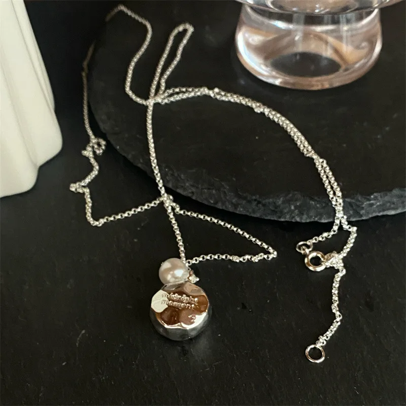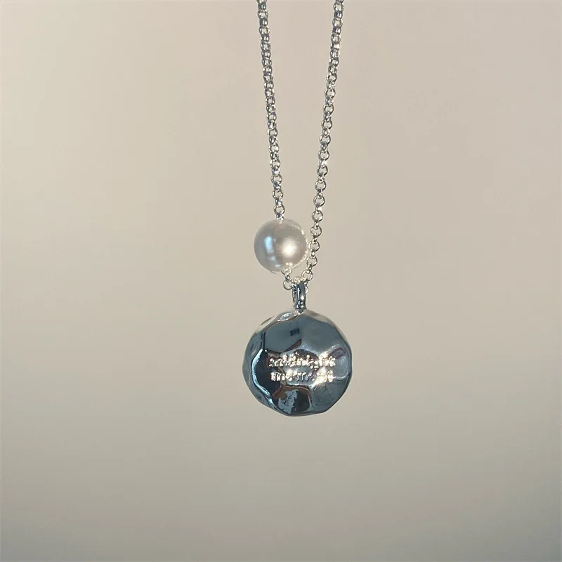 Fashionable New 925 Sterling Silver Pearl Sphere Pendant Necklace Elegant Exquisite Round Sweater Chain Necklace for Women