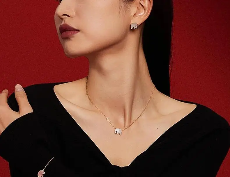 Fashion 14K Gold Plated Elephant Earrings Minimalist Stainless Steel Red Elephant Necklace Elephant Jewelry Sets