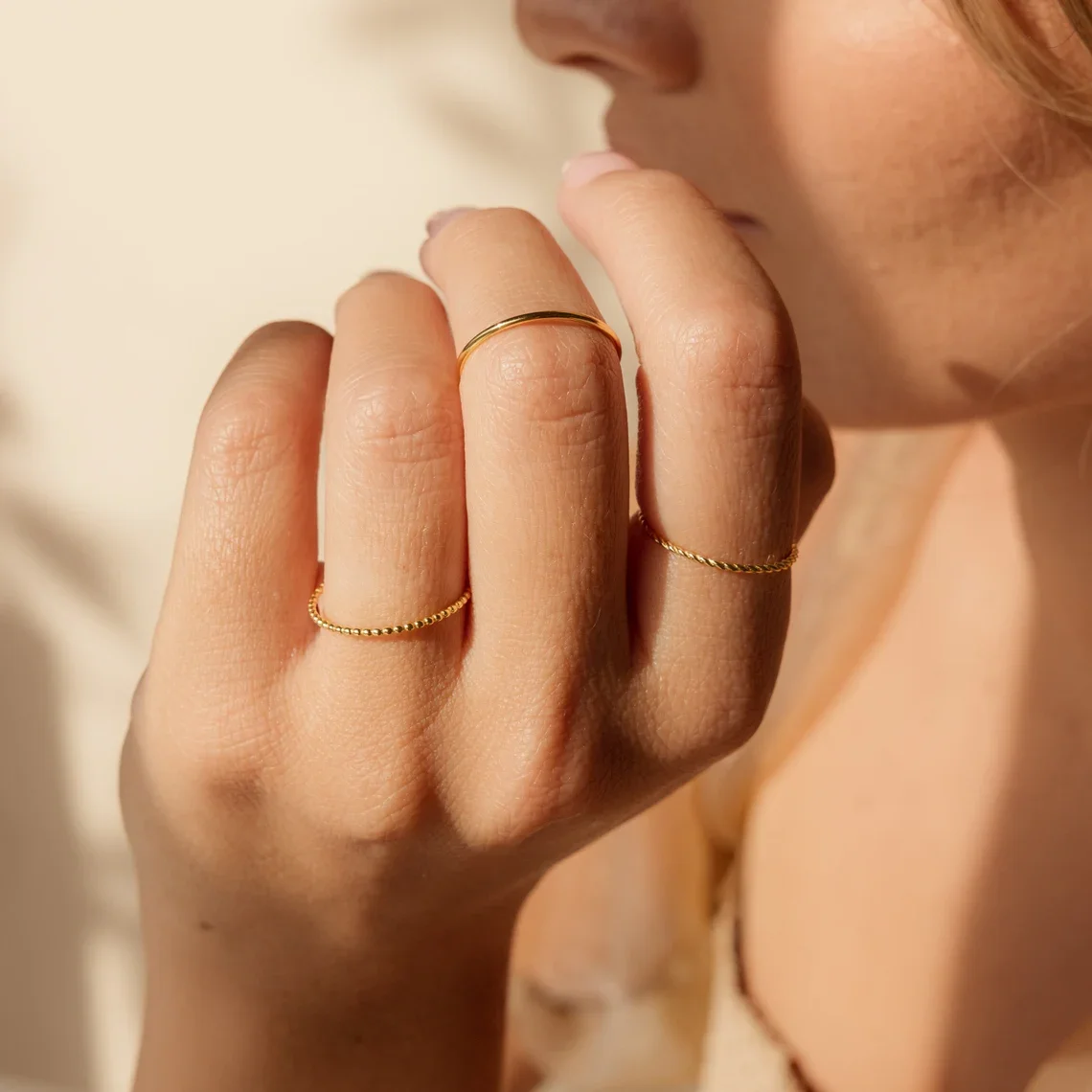 Fashion Women's Stacking Ring Sets Luxury 18K Gold Ultra Thin Stacking Rings Jewelry for Woman