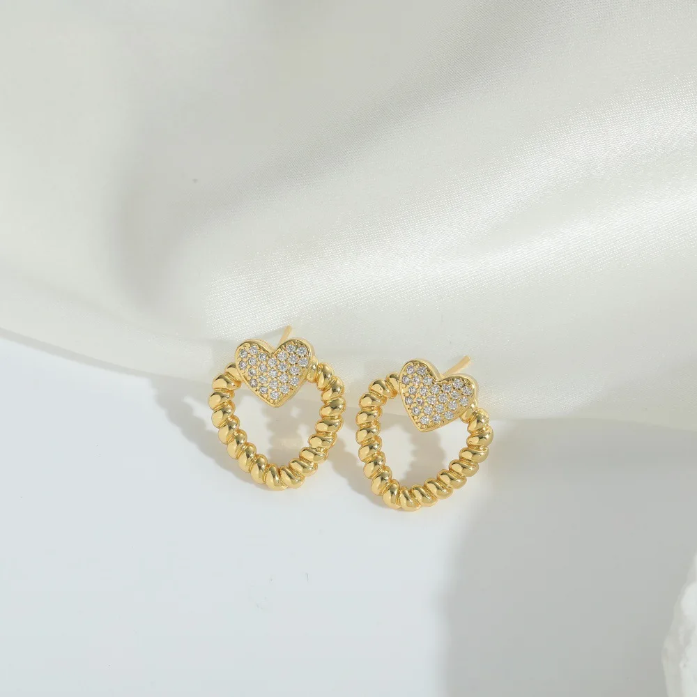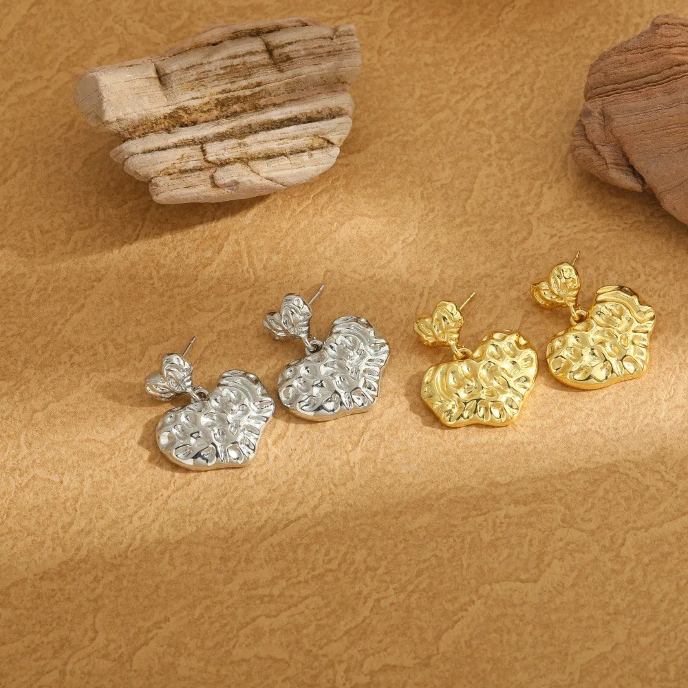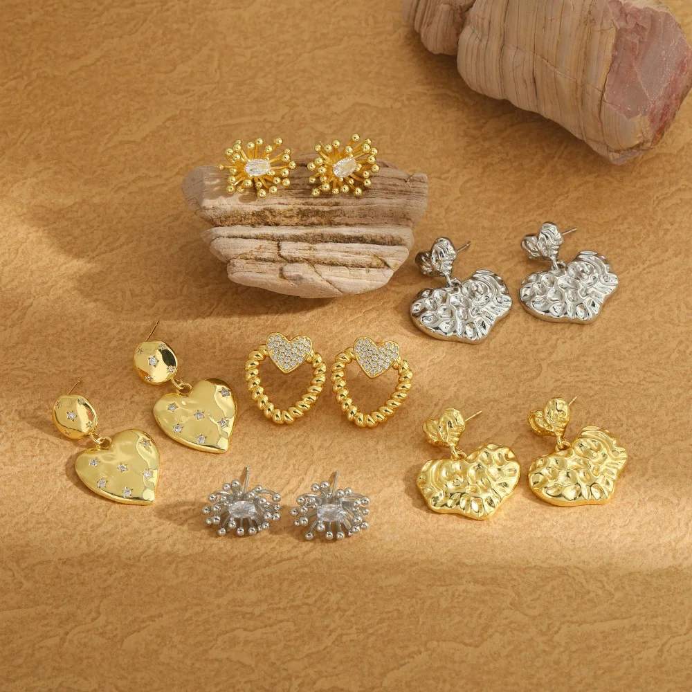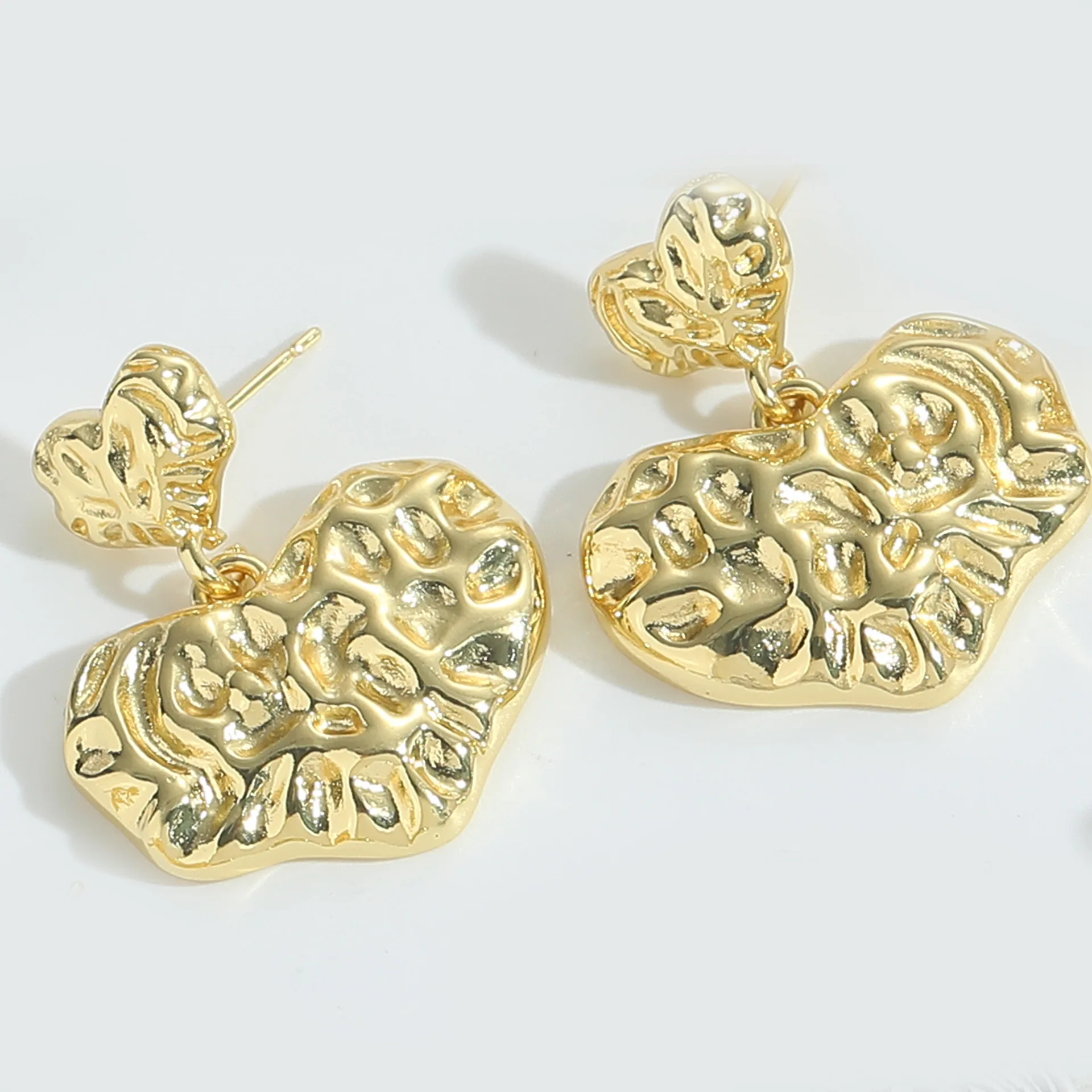 New Trendy 18K Gold Plated Copper Heart Drop Earrings with Unique Texture Design for Women Fashion Jewelry Gift