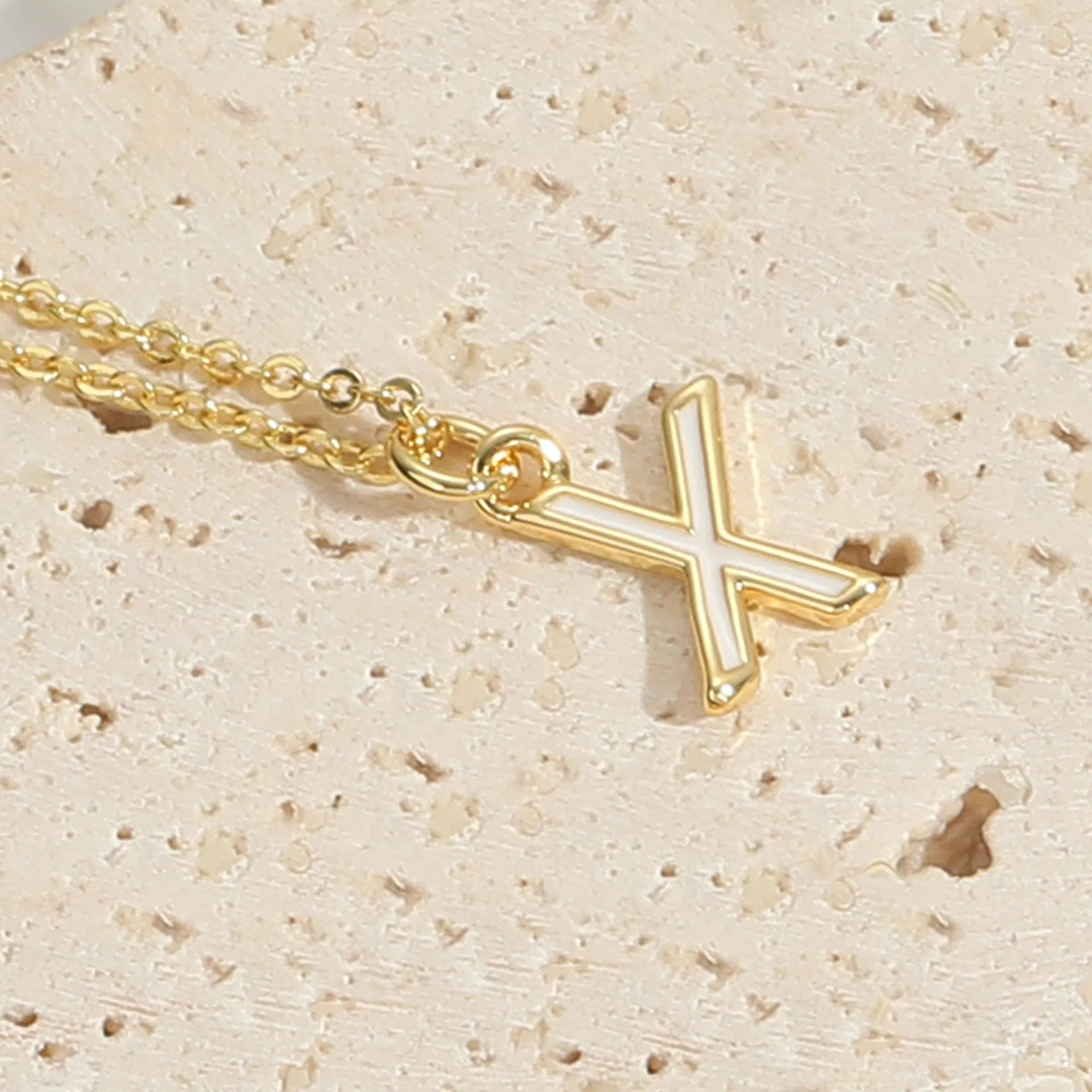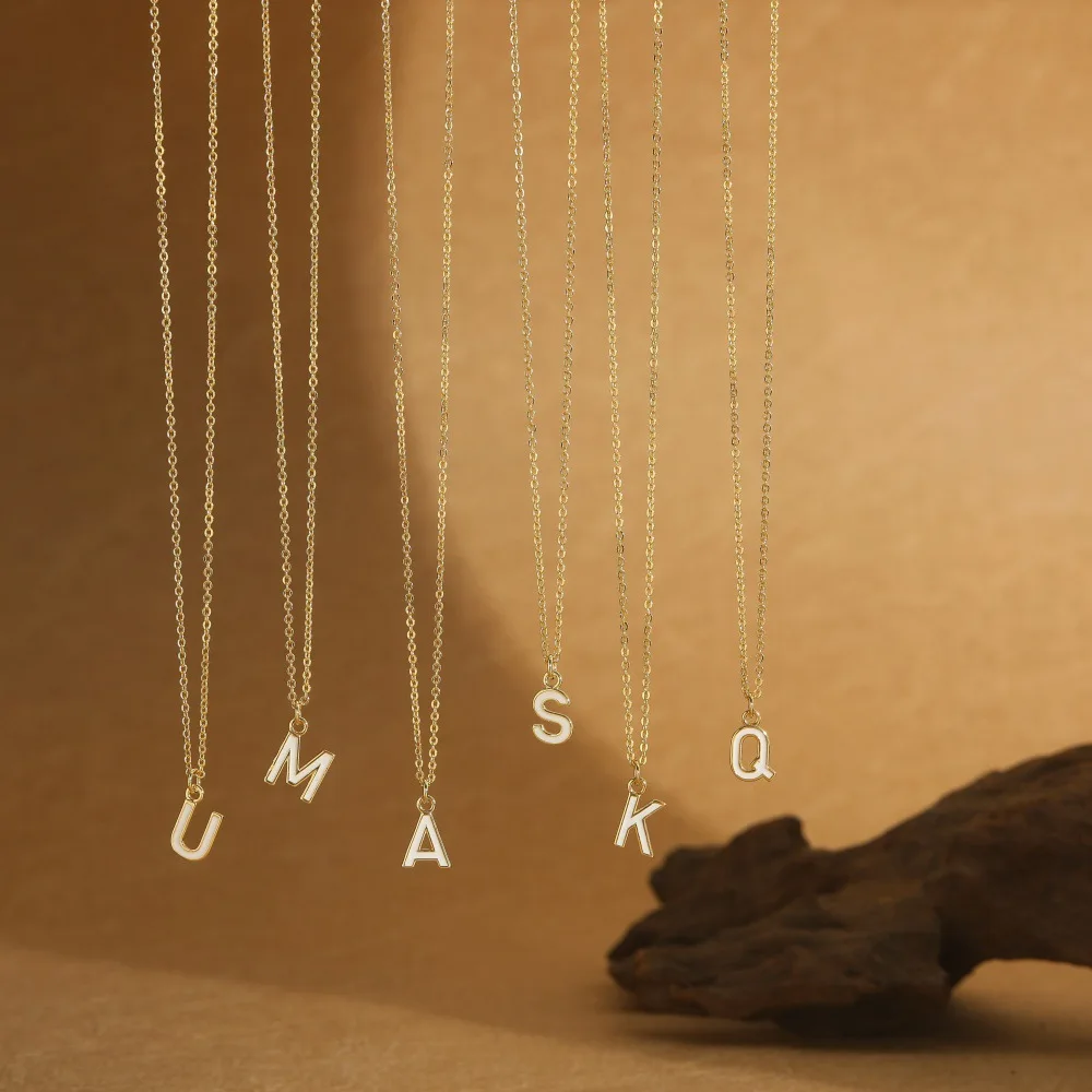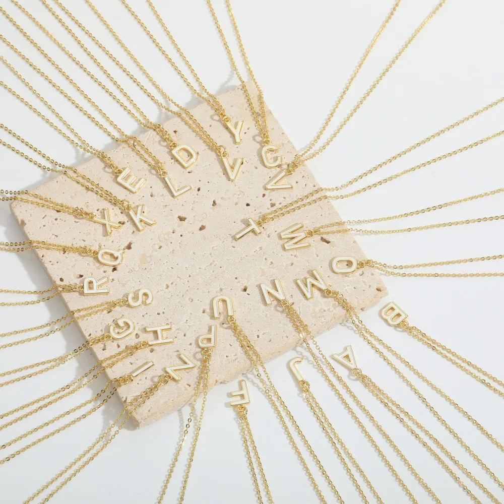 Customizable 18K Gold Plated Rock Letter Necklace for Women Box Chain with A-Z Alphabet Copper Pendants DIY Jewelry Gift