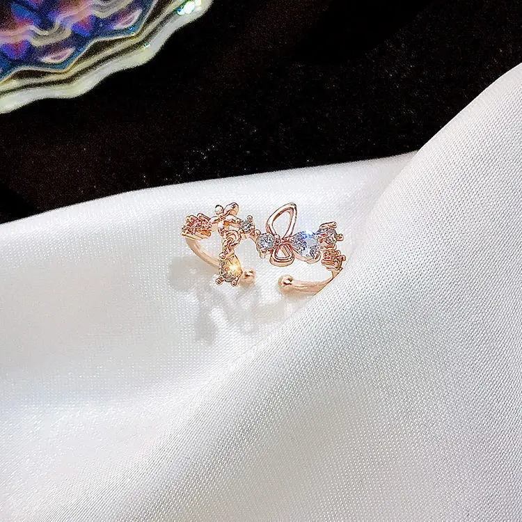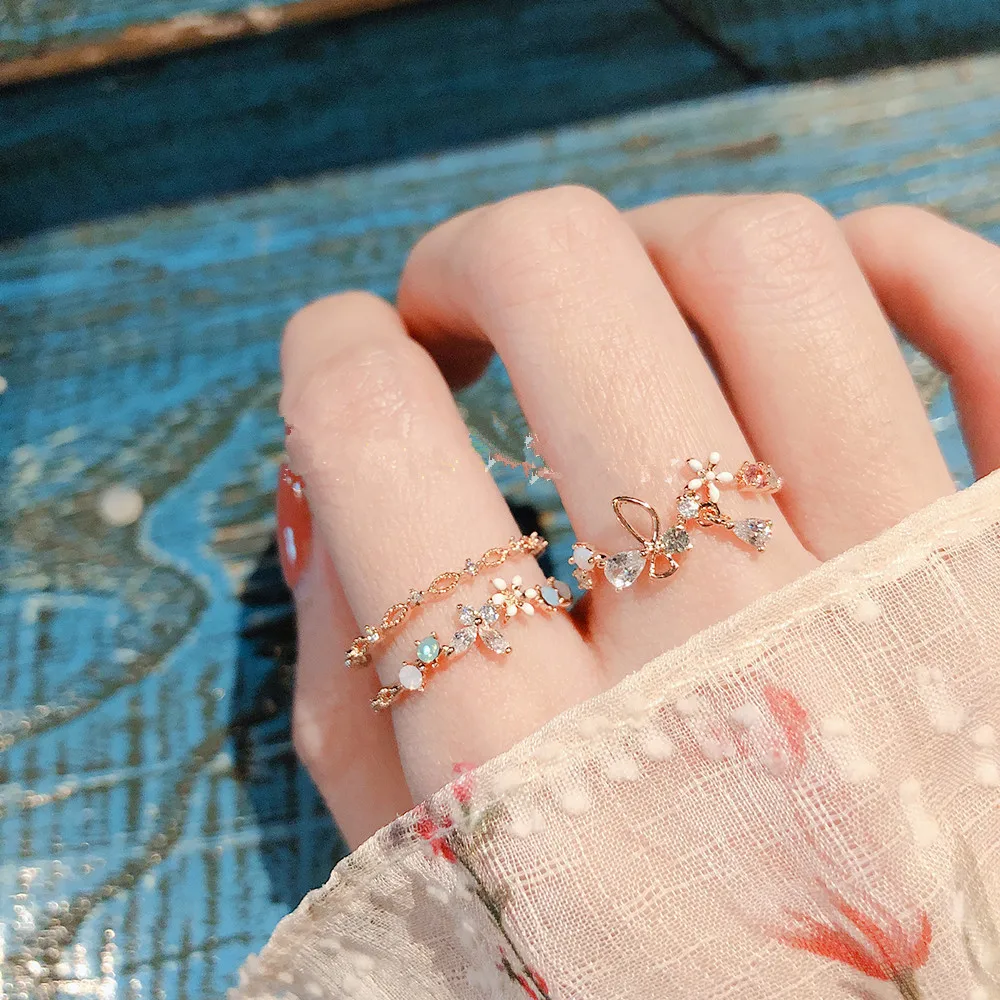 Wholesale Fashionable Simple Flower Butterfly Zircon Open Stack Ring 18k Gold Plated Cute Adjustable Ring for Women Gift