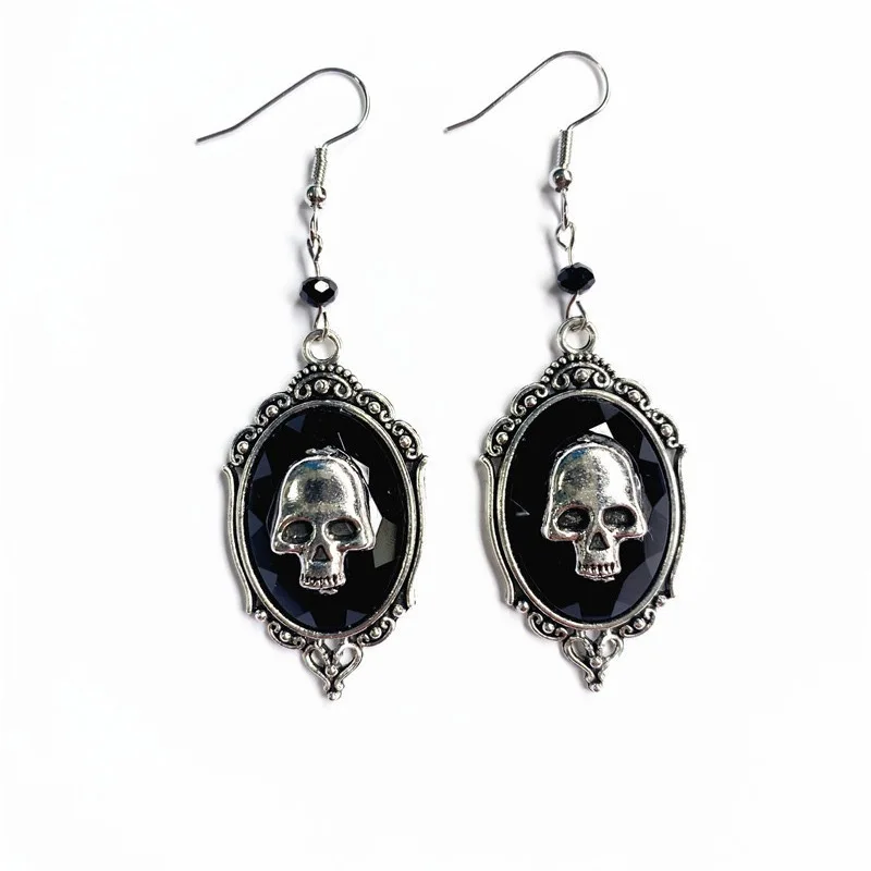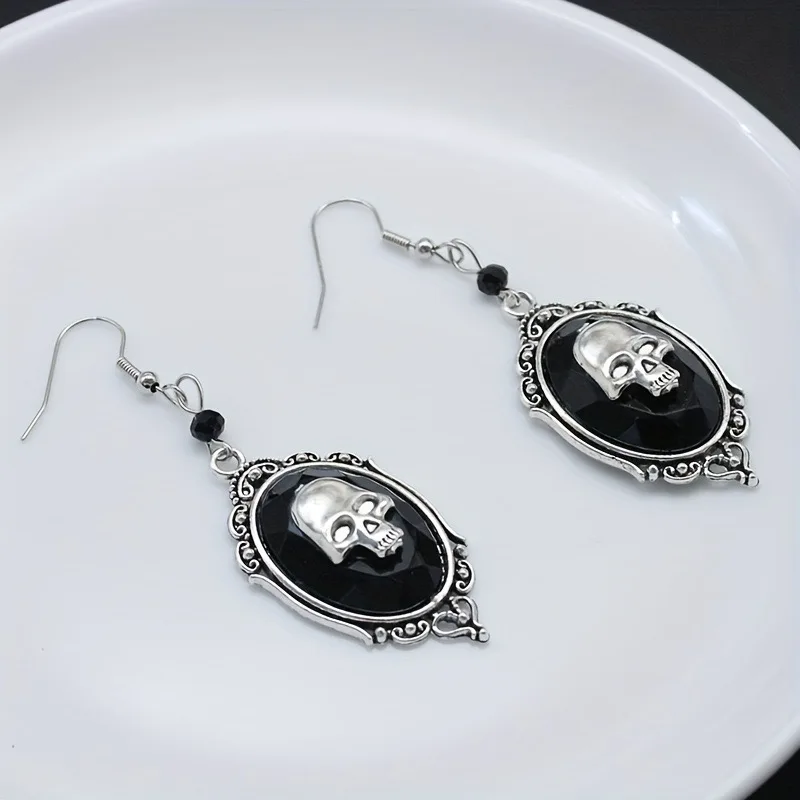 Gothic Punk Earrings for Women & Men Exaggerated Skull Head Metal Rock Pendant Hook Earrings