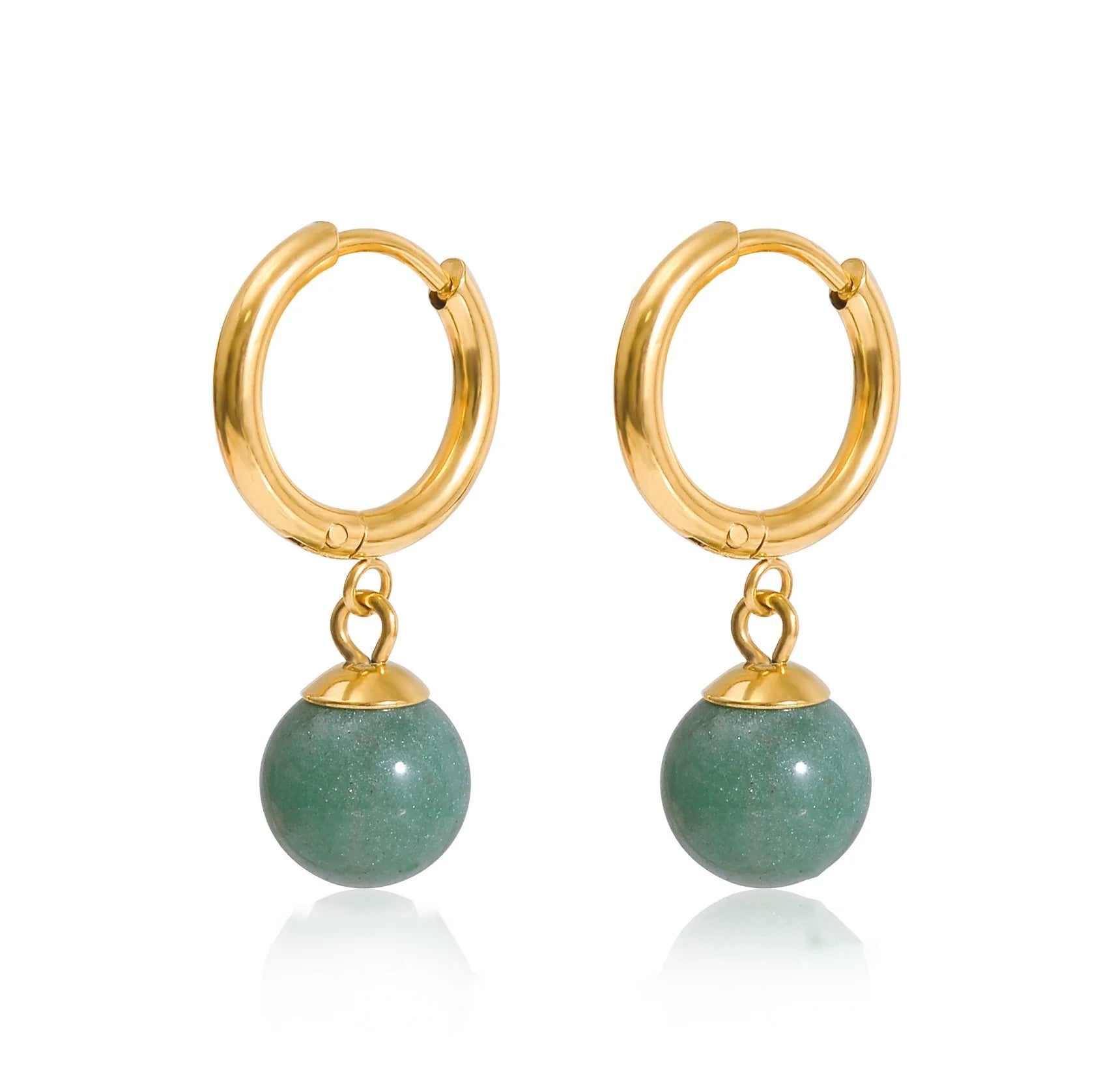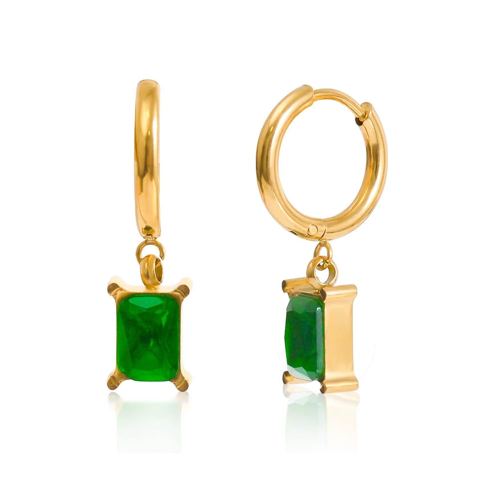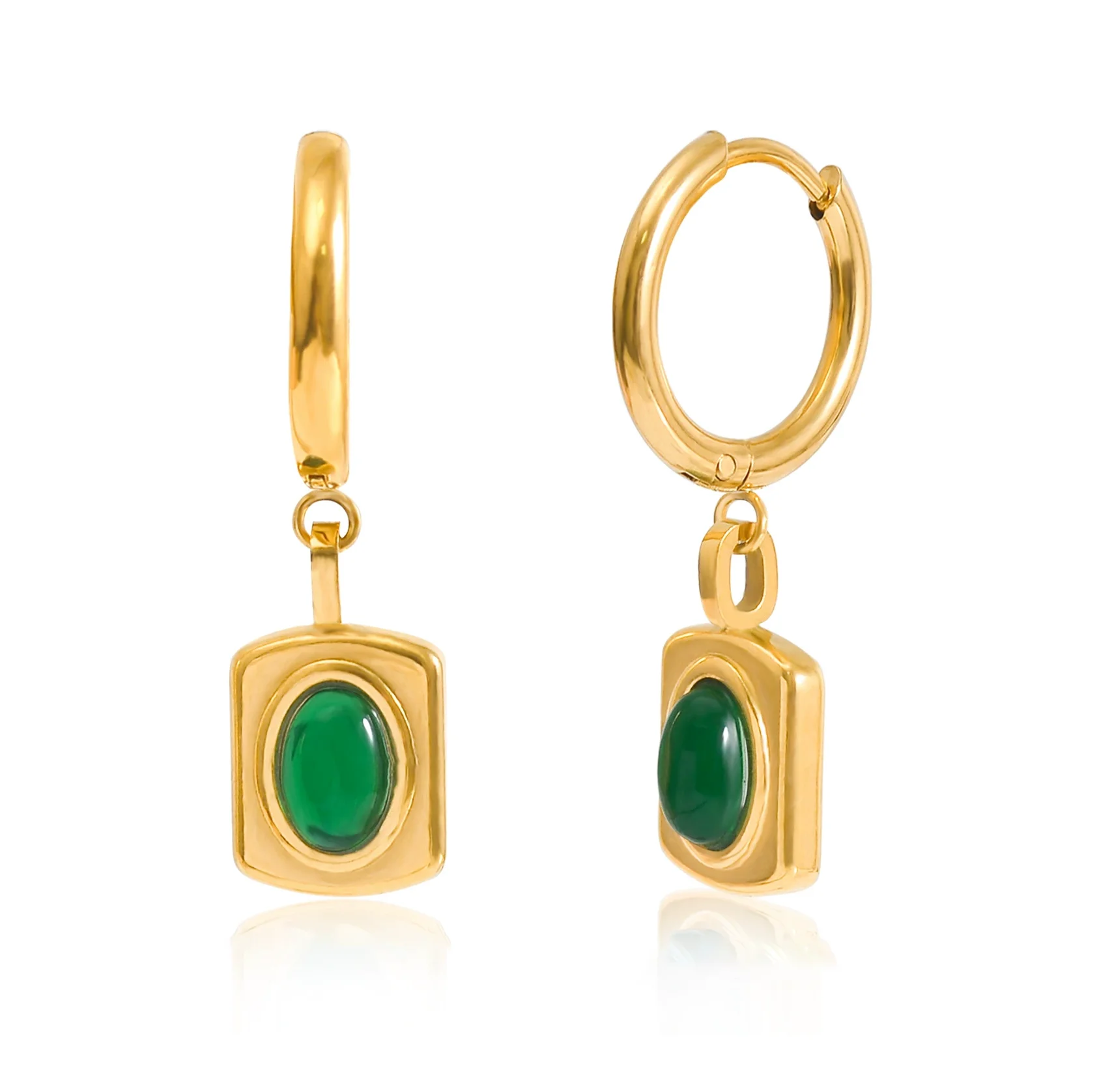 Ins Style 2025 18K Gold Plated Stainless Steel Green Jade Zircon Pendant Necklace & Earrings Set for Women