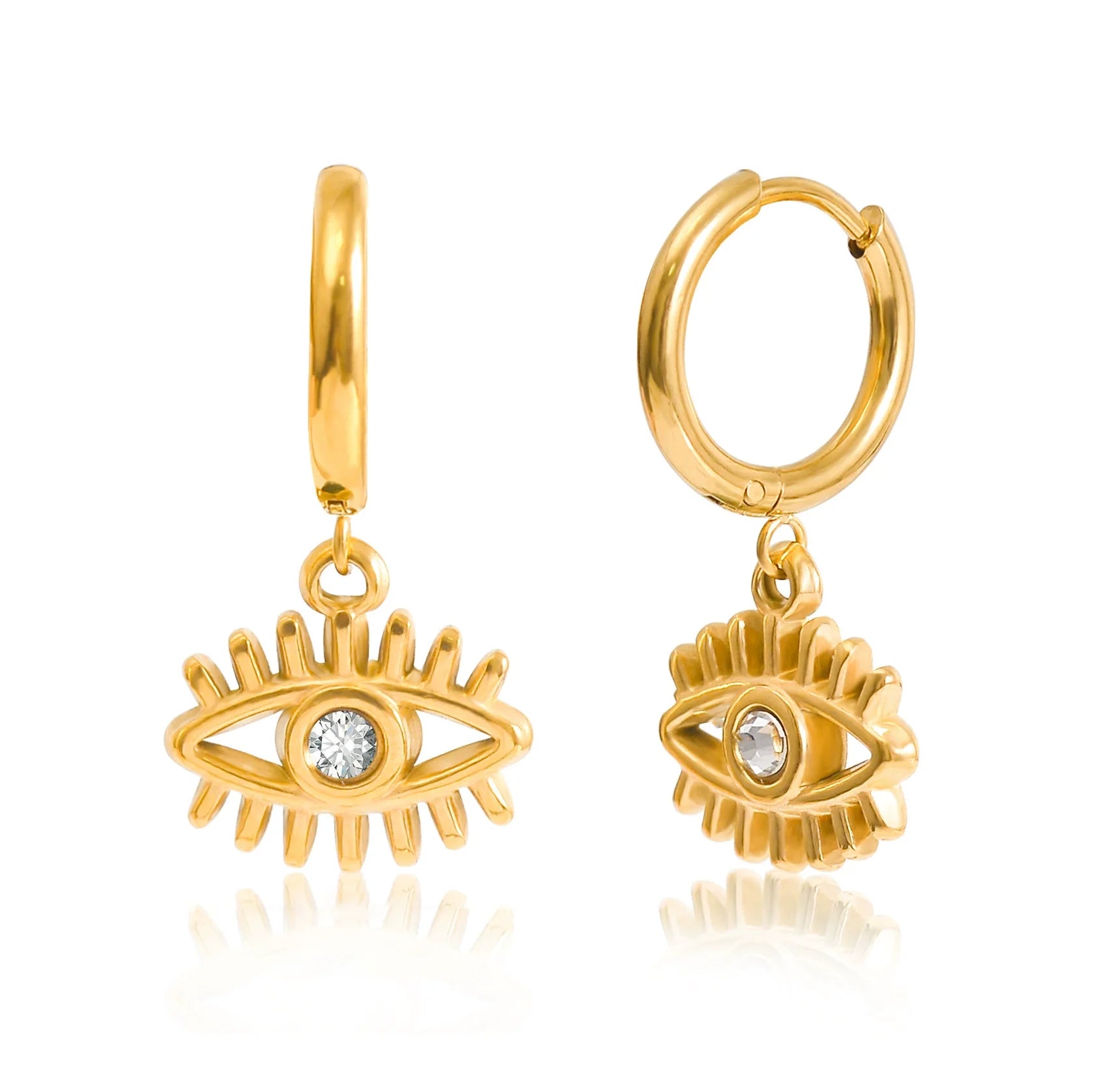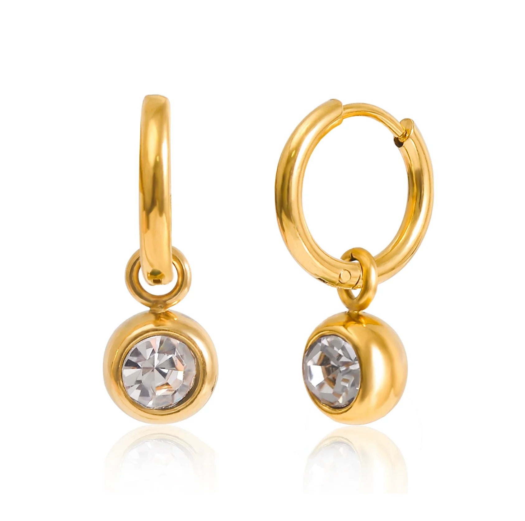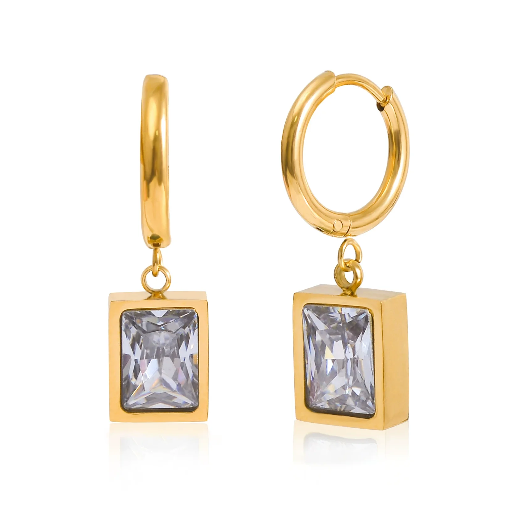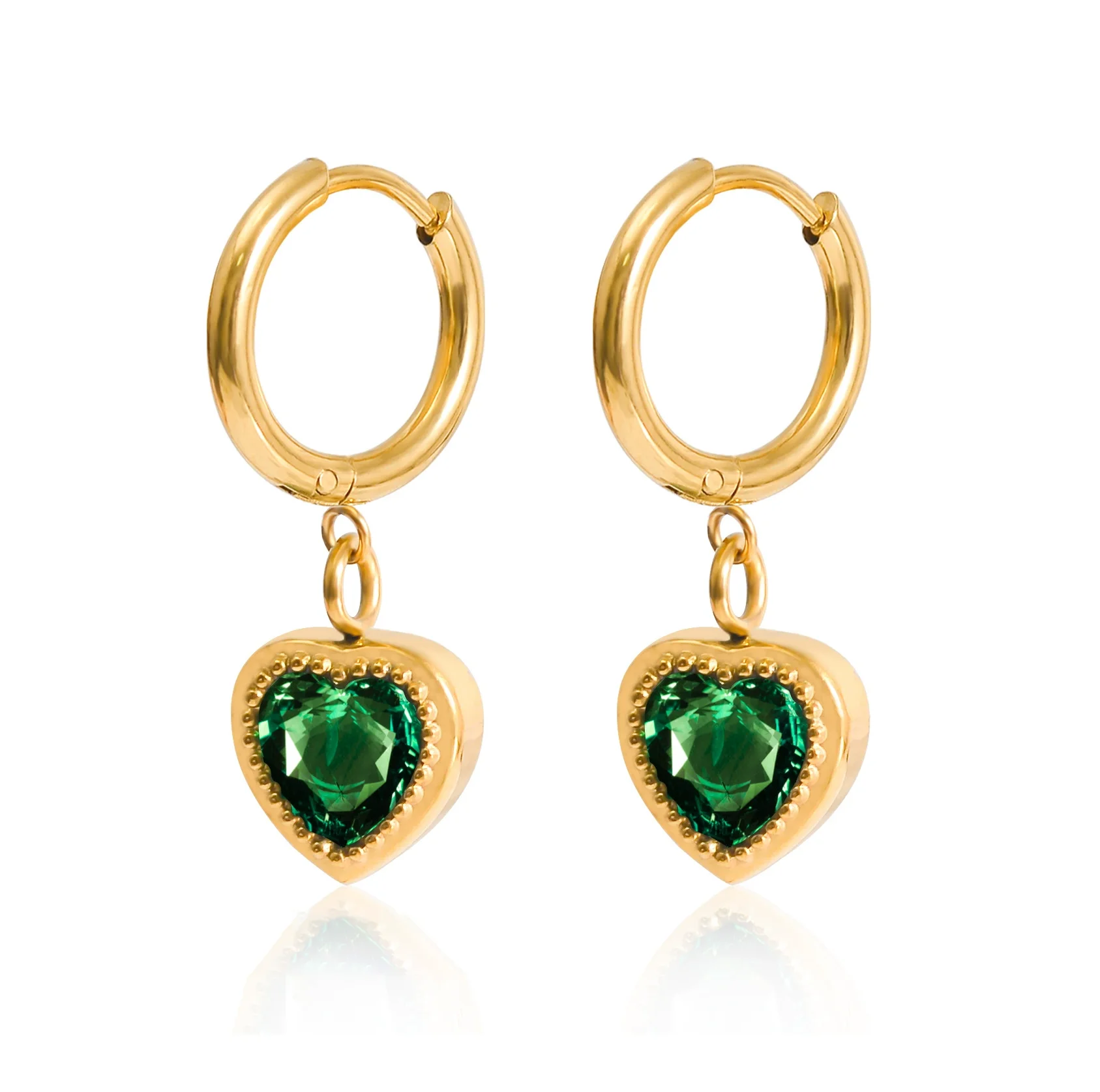 Ins Style 2025 18K Gold Plated Stainless Steel Green Jade Zircon Pendant Necklace & Earrings Set for Women