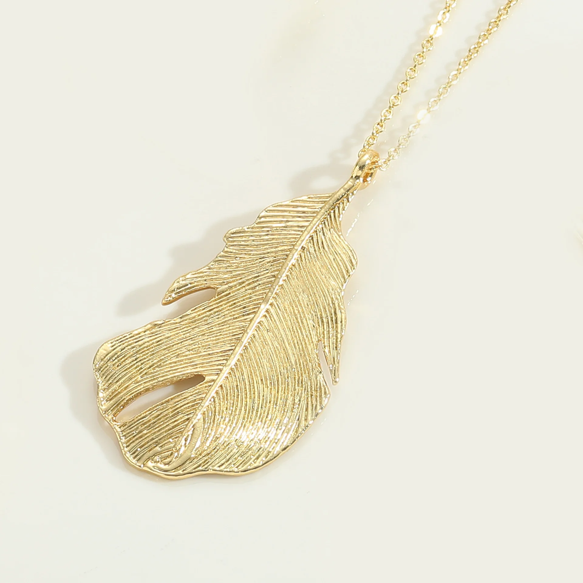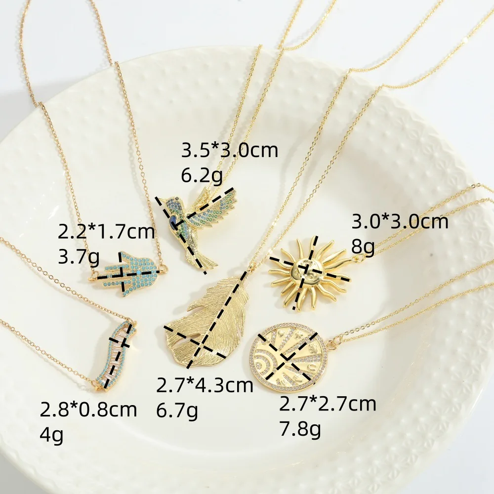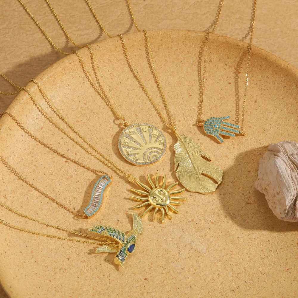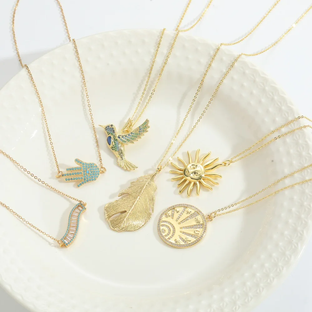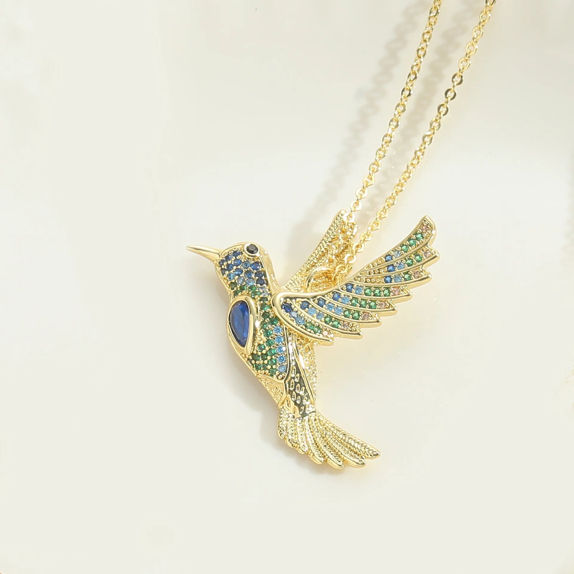 Copper Retro Feather Collarbone Chain Necklace - Oversized Hummingbird Zircon Pendant for Women Vintage Gold-Tone Jewelry