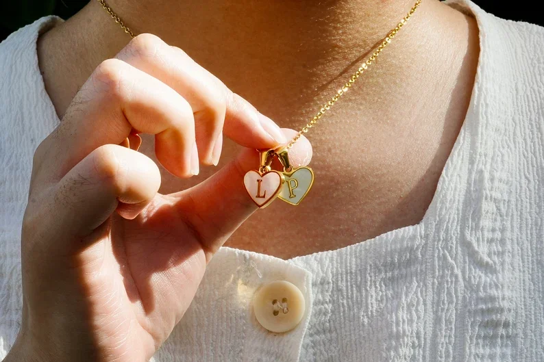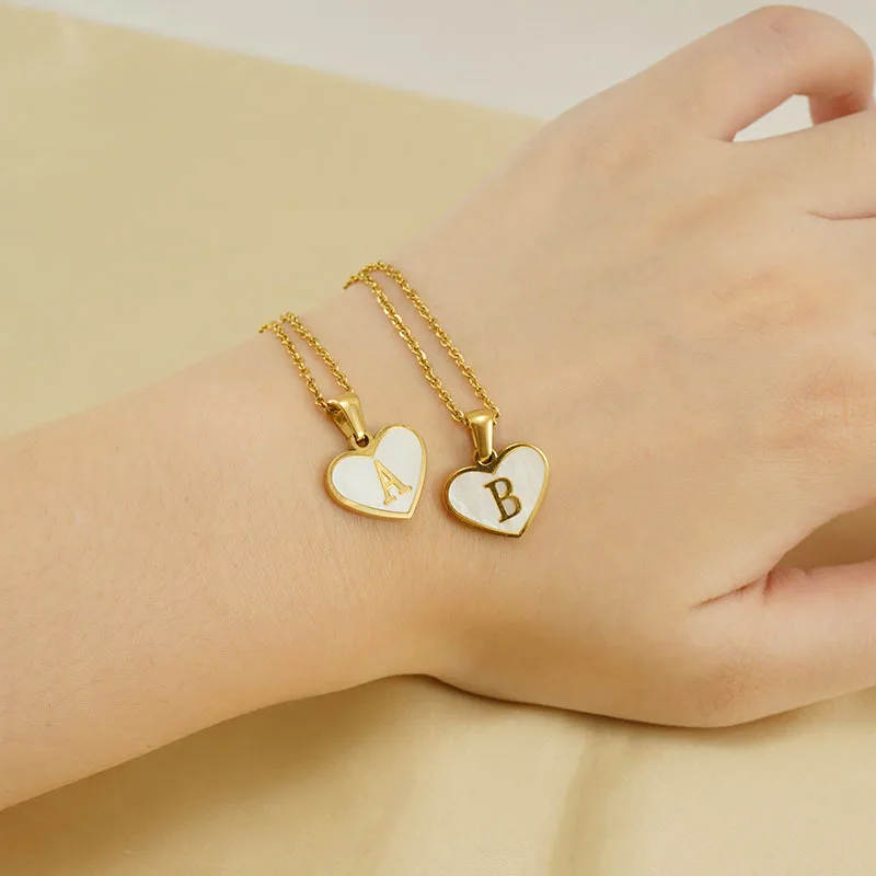 Dainty Gold Plated Letter Charm Necklace Initial Necklace Personalized Mother-of-Pearl Name Necklace Gift for Women
