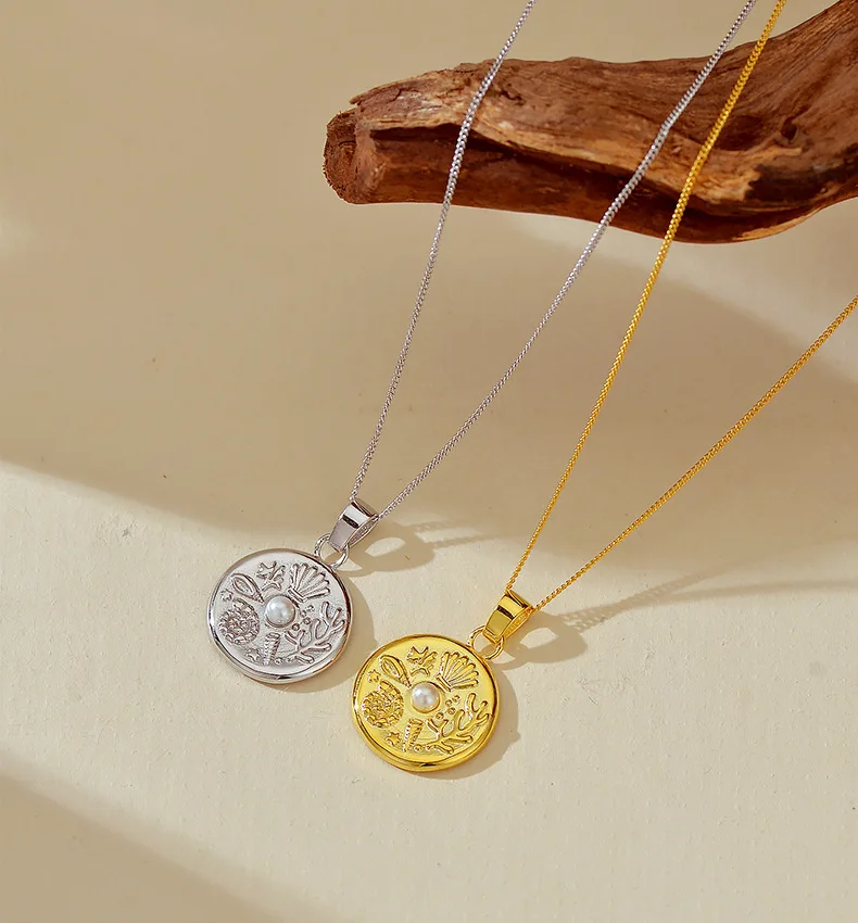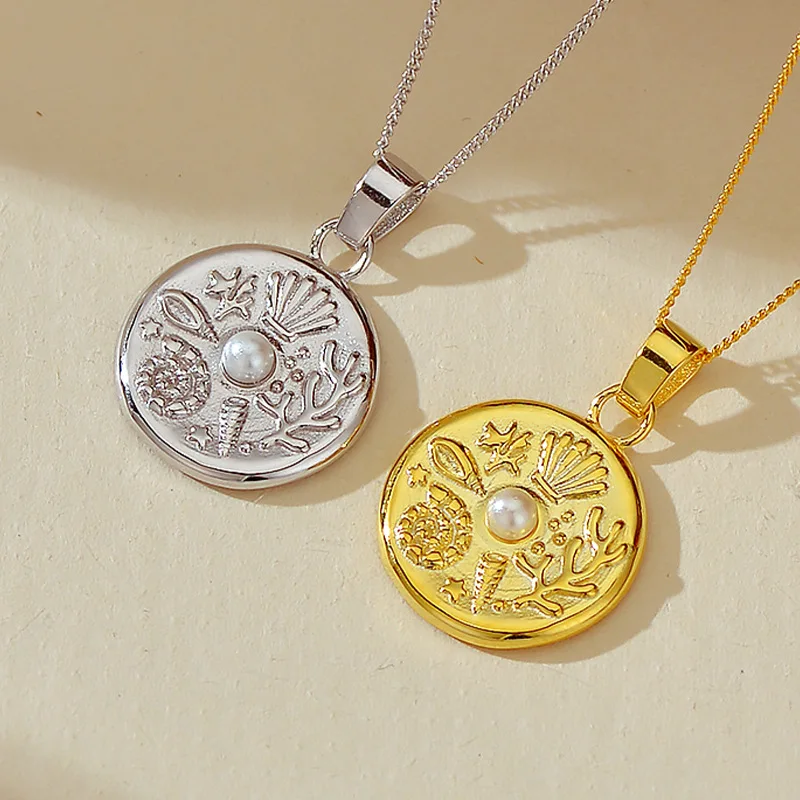 High Quality Marine Themed Pattern with Pearl Round Charm Necklaces 925 Silver Fine Pendant Necklace for Women