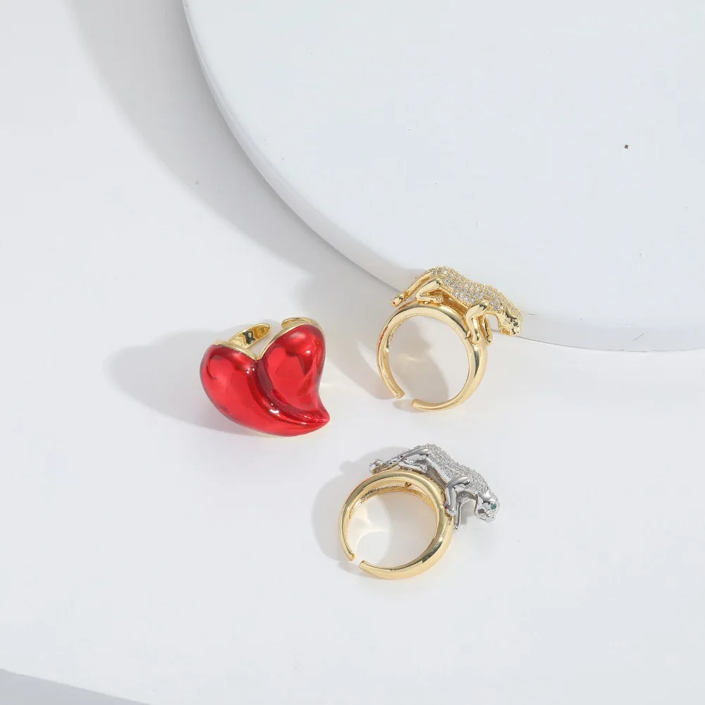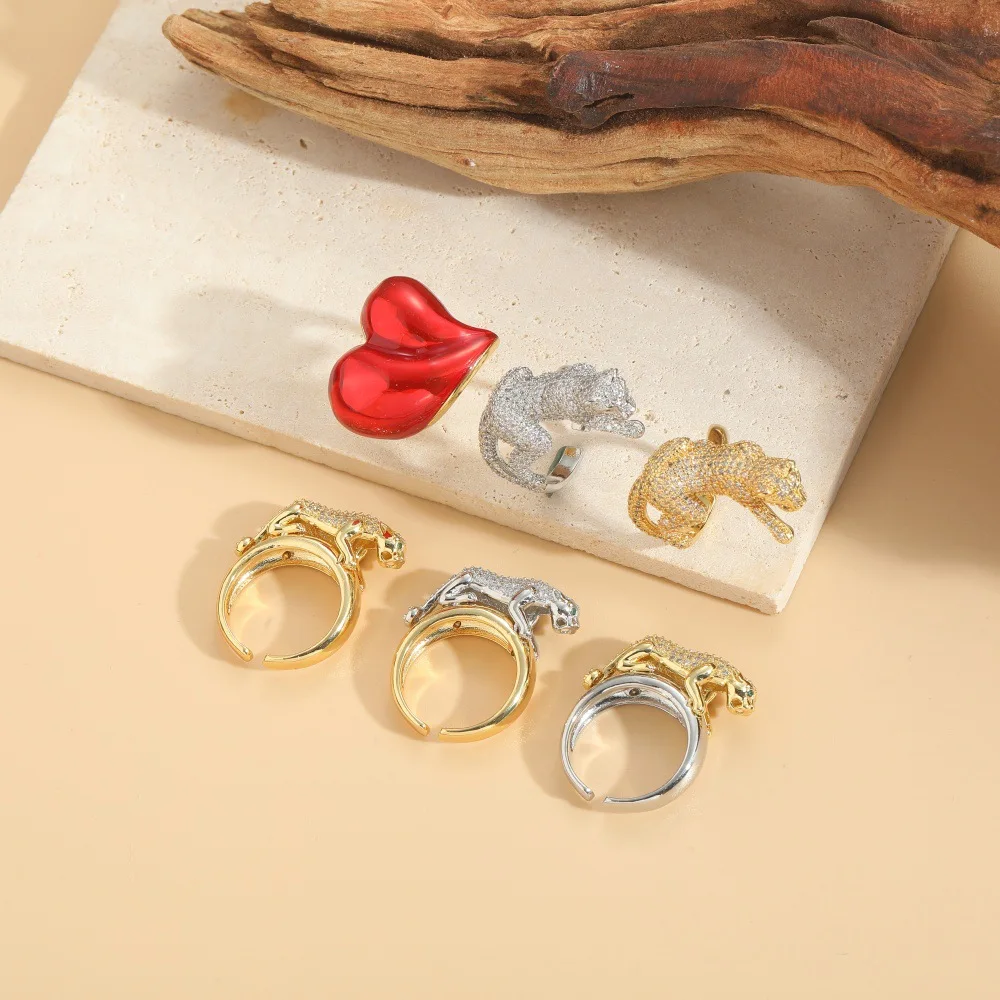 Heart Shape Leopard Ring with Micro Zircon Embedded for Women Fashion Jewelry