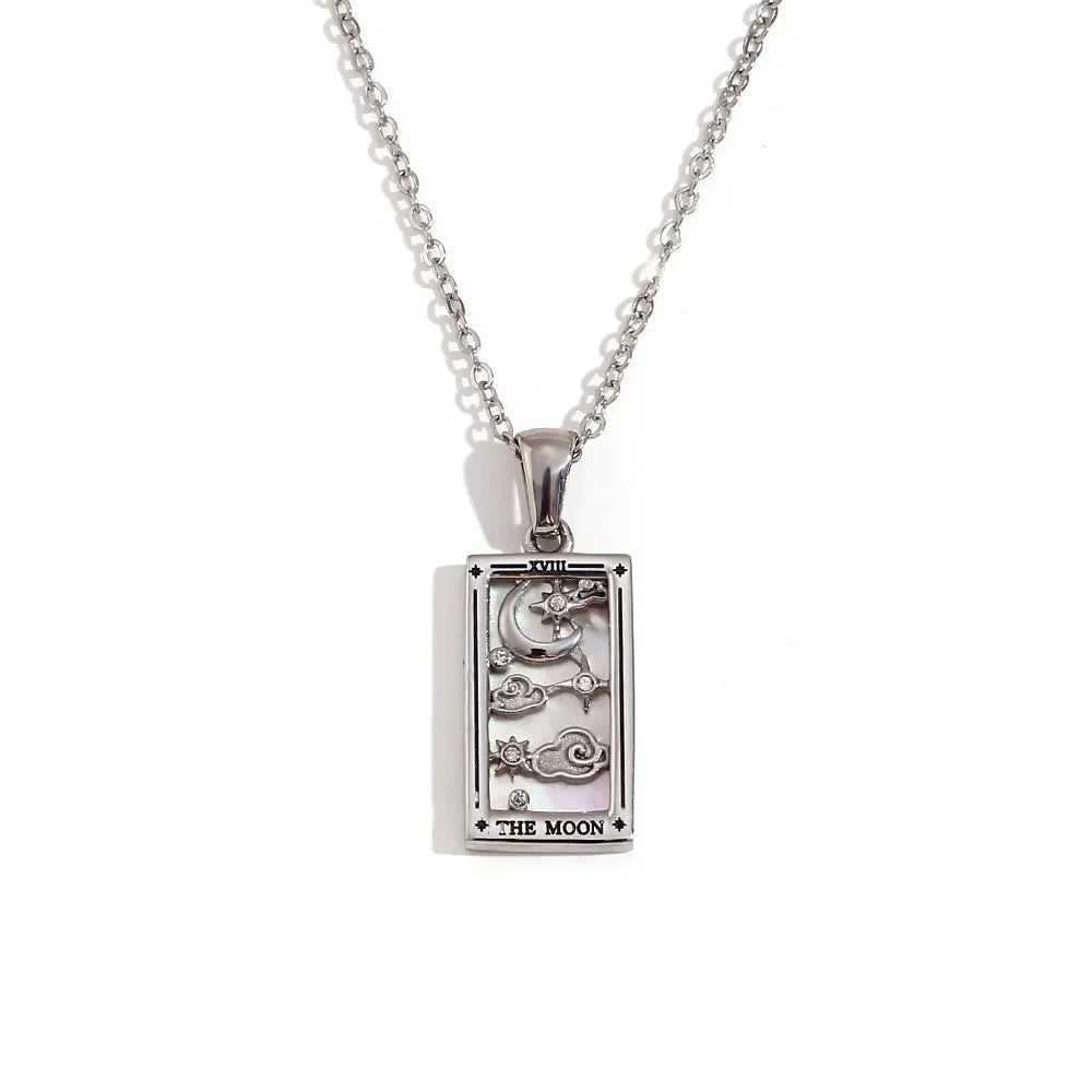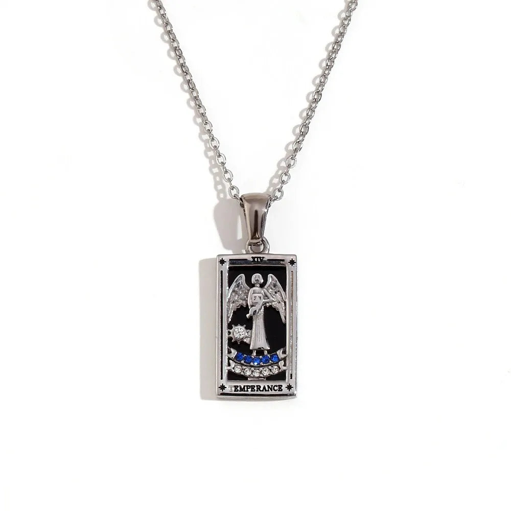 Stainless Steel Tarot Card Pendant Necklace Vintage Colorful Charm Necklace Lucky Talisman for Women