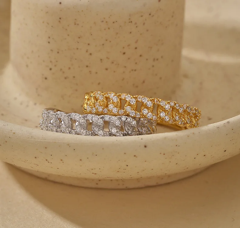 Wholesale Fashion Fine Jewelry 925 Silver Chunky Chain Finger Open Ring Cubic Zirconia Adjustable Ring for Women