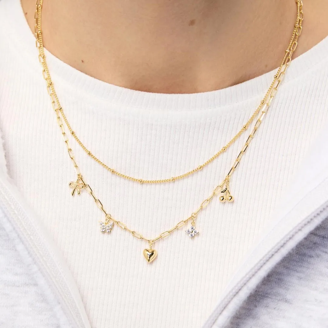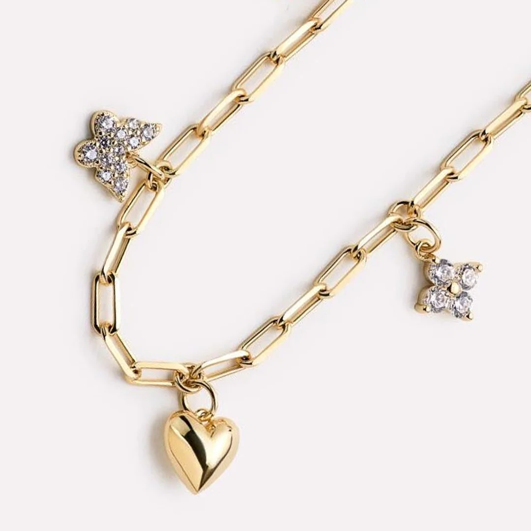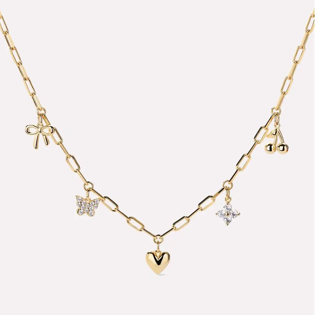 Trendy Gold Plated Charm Butterfly Heart Cherry Necklaces for Women Cute Brass and Silver Plated Statement Necklace Jewelry