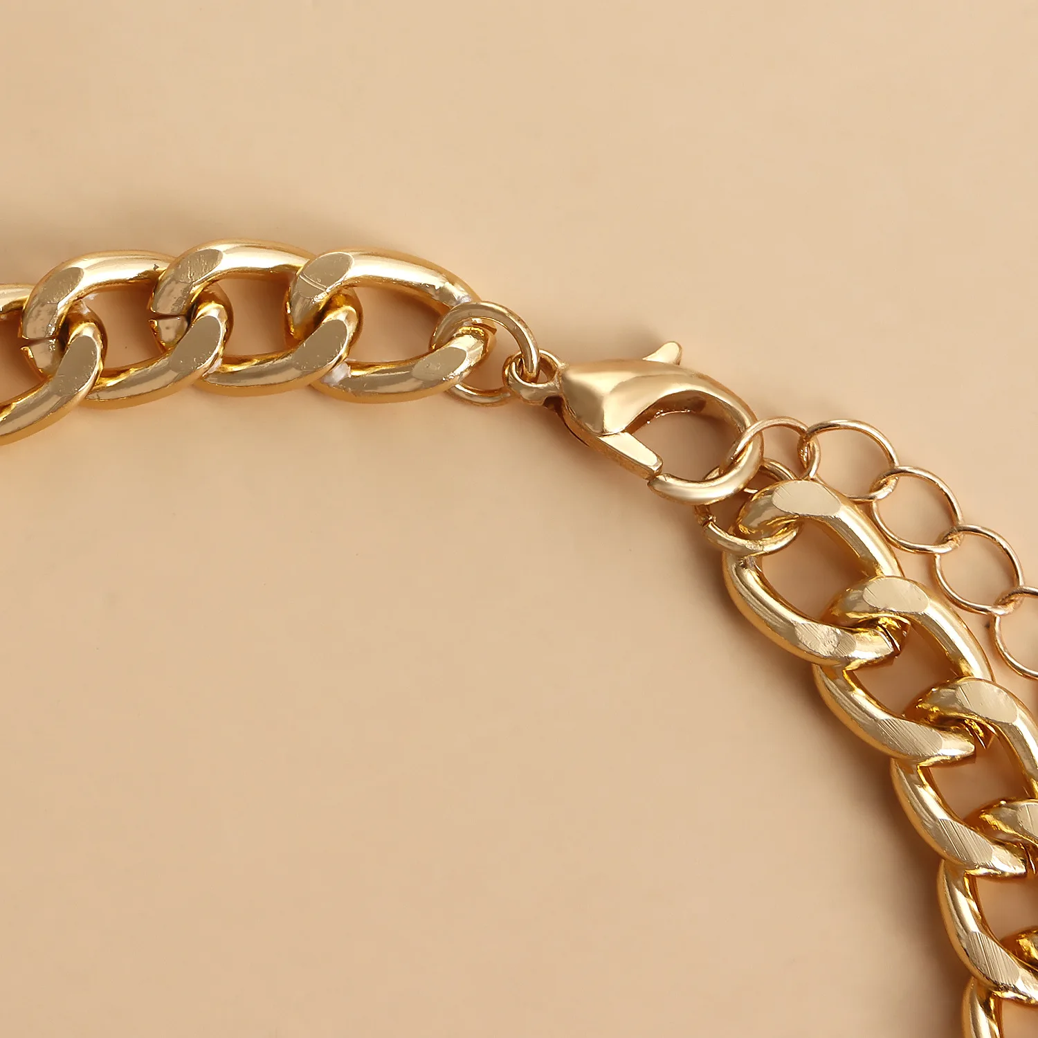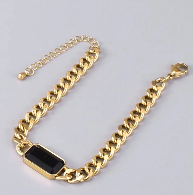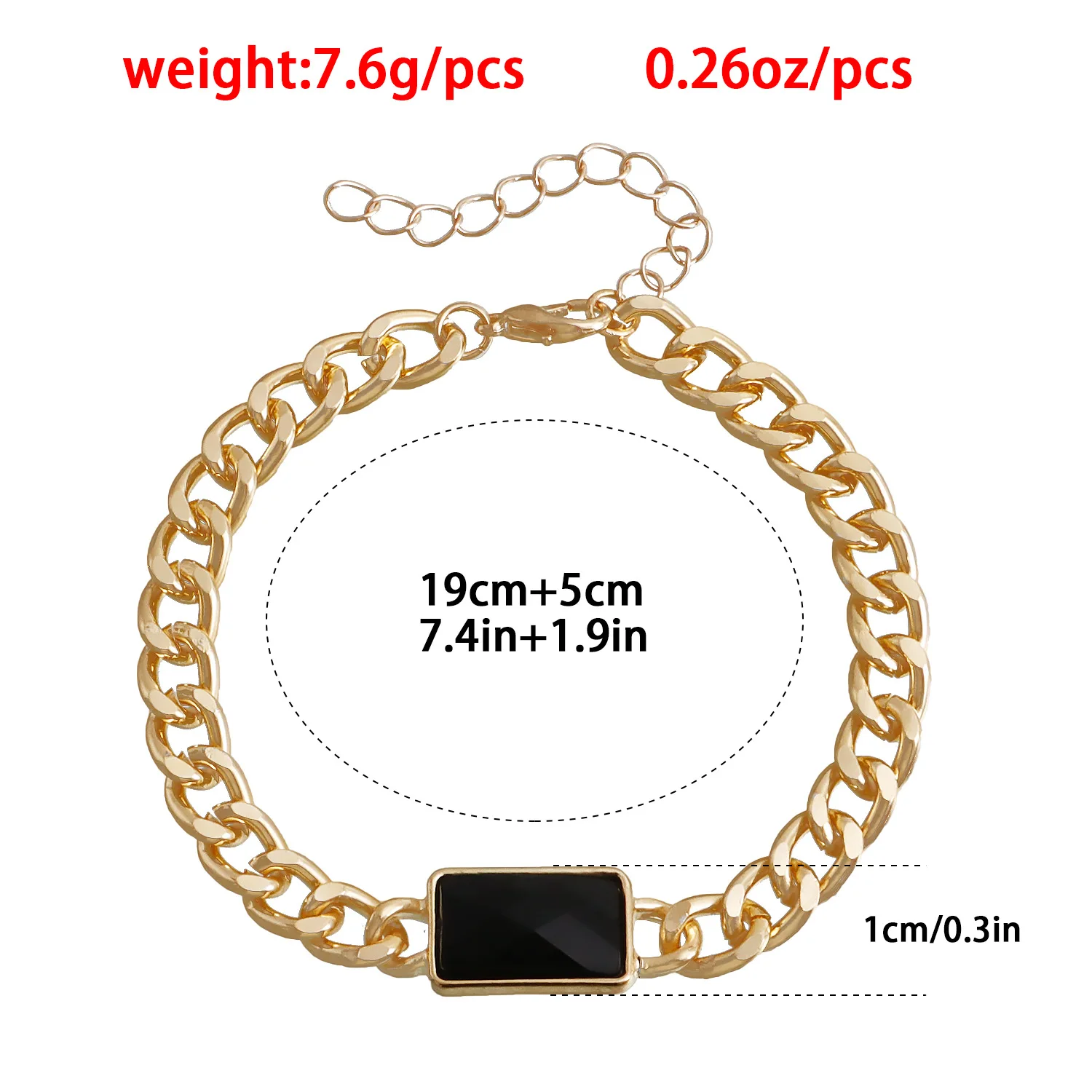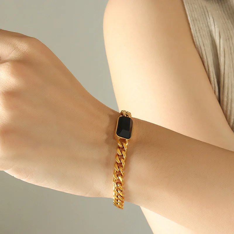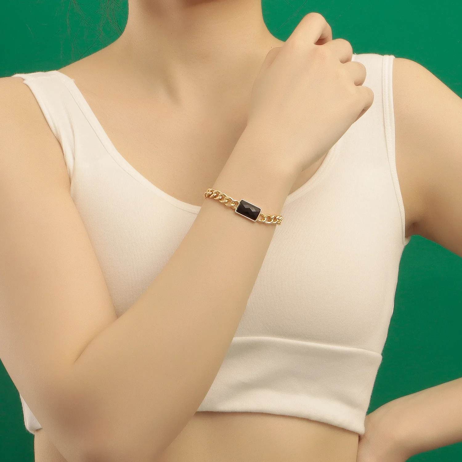 Sophisticated Black Square Bracelet Thick Chain Design Simple Versatile Gold Plated Chain Black Square Charm Bracelet for Women