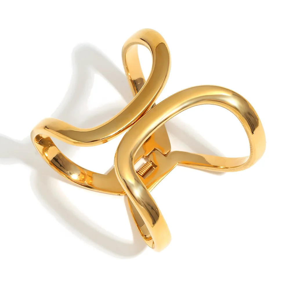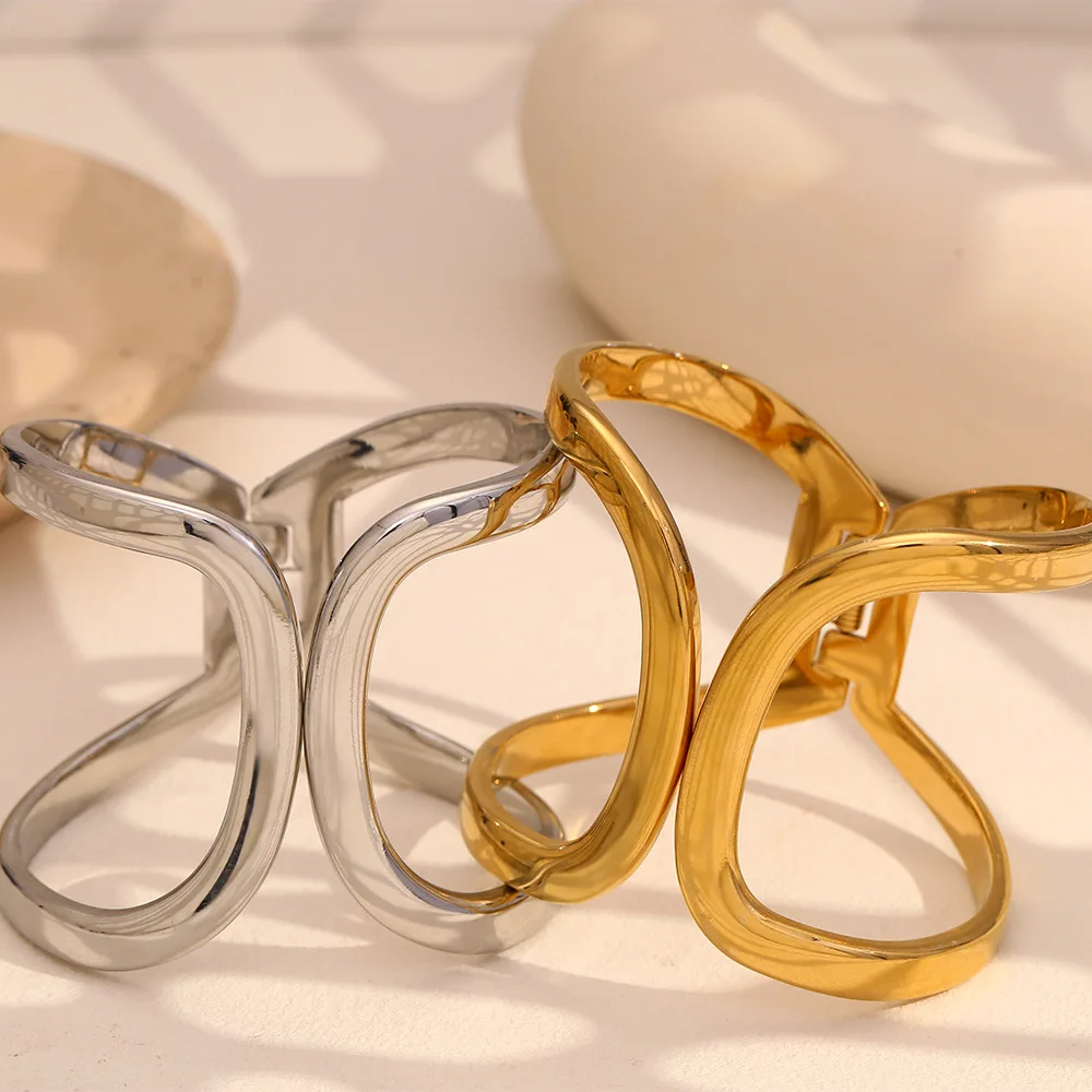 18K Gold Plated Stainless Steel Jewelry Exaggerated Punk Chunky Cuff Open Bangle for Women