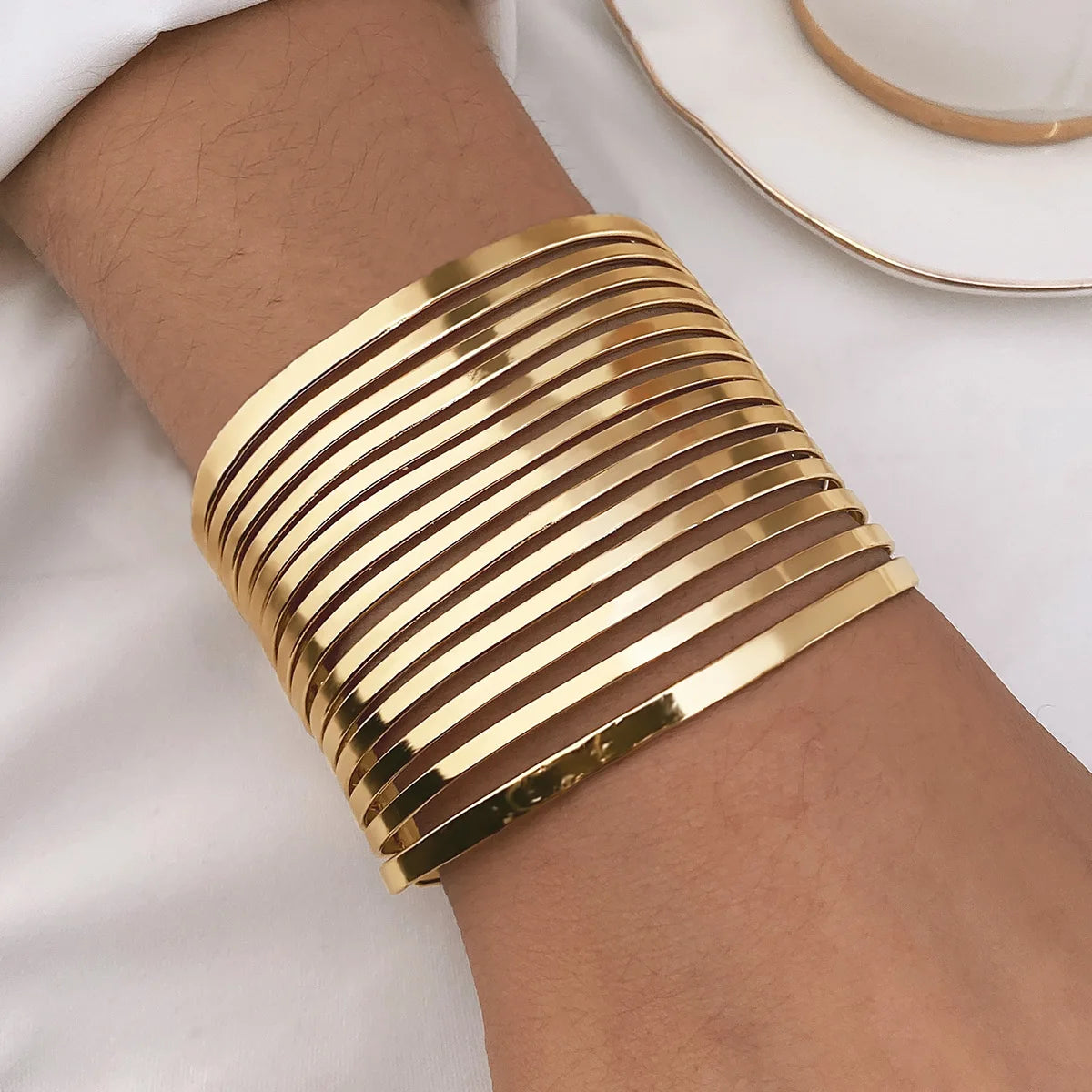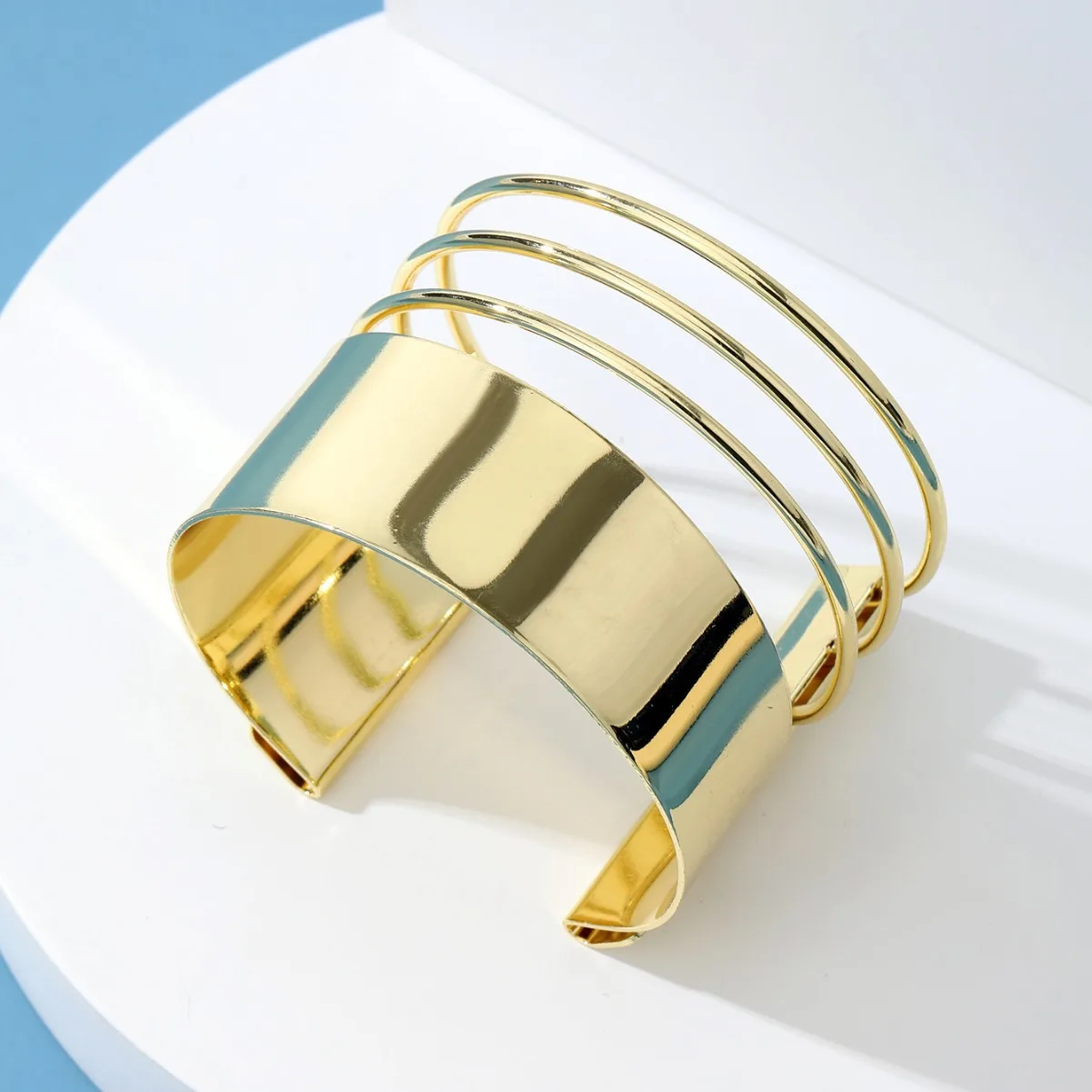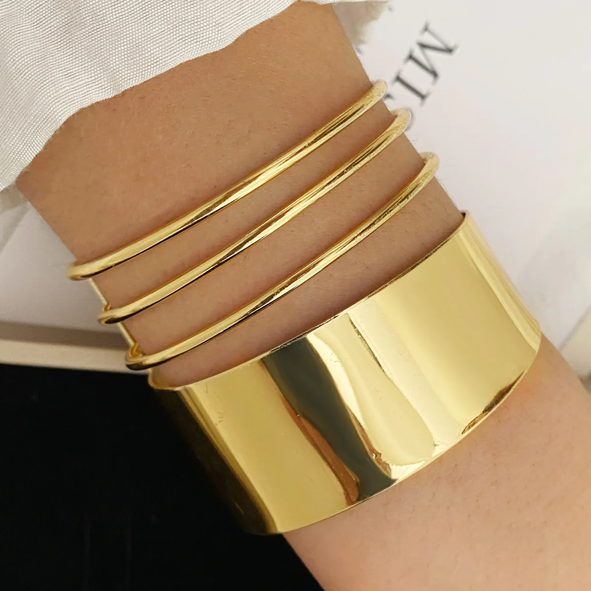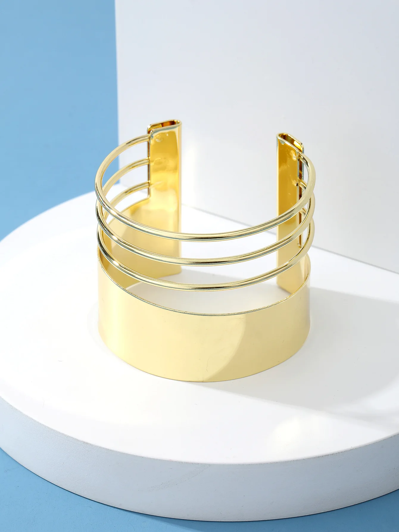 European Style Gold Cuff Bracelet for Women Minimalist Design with Single Gap Polished Finish Trendy Jewelry