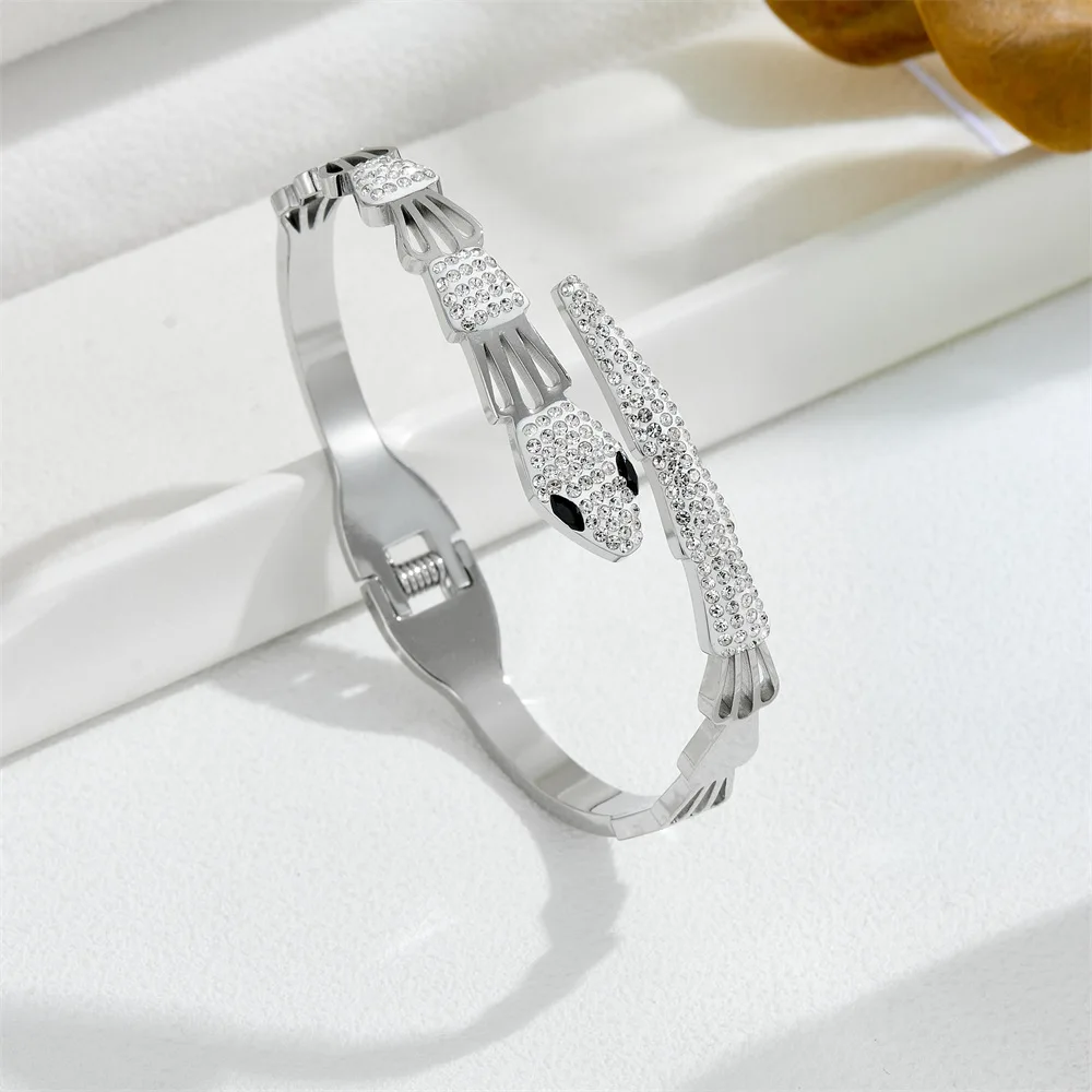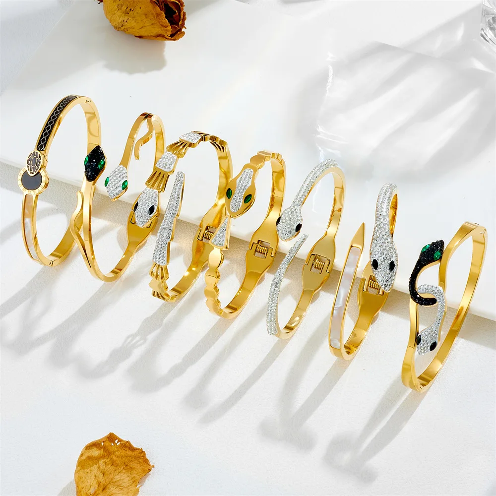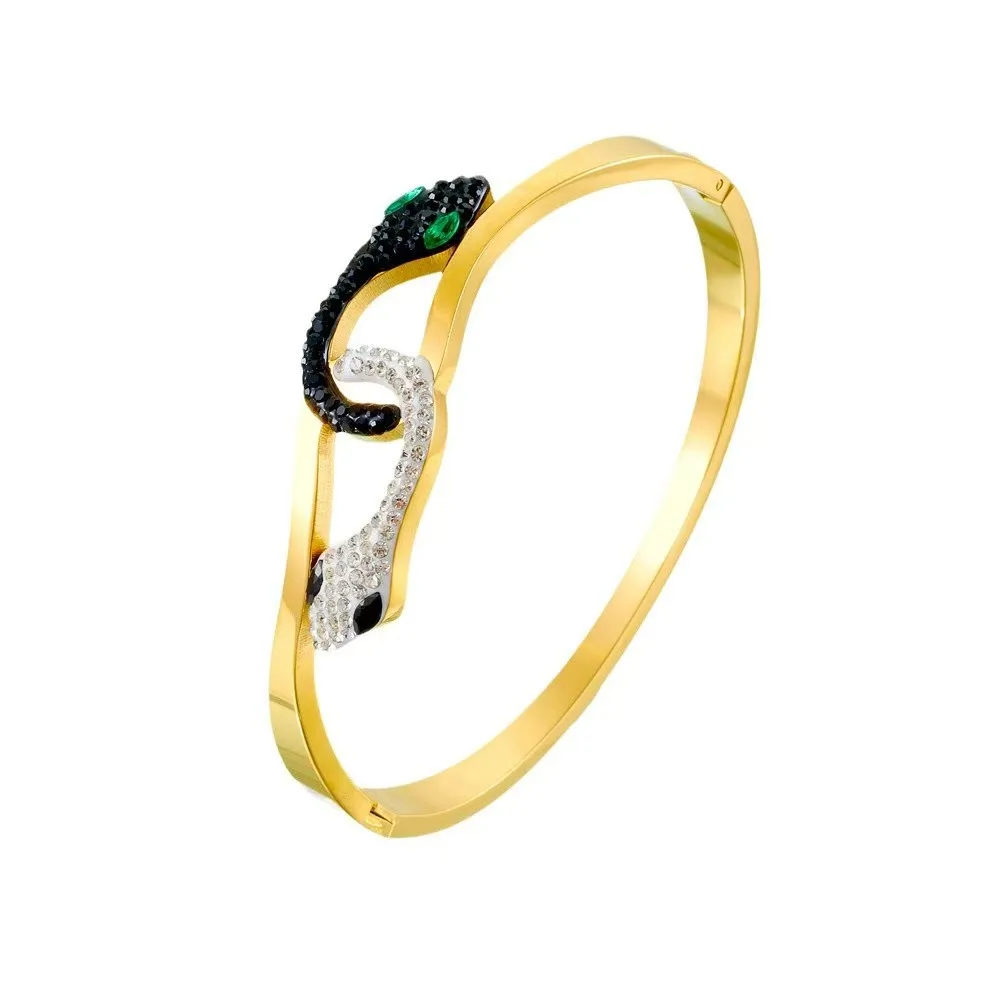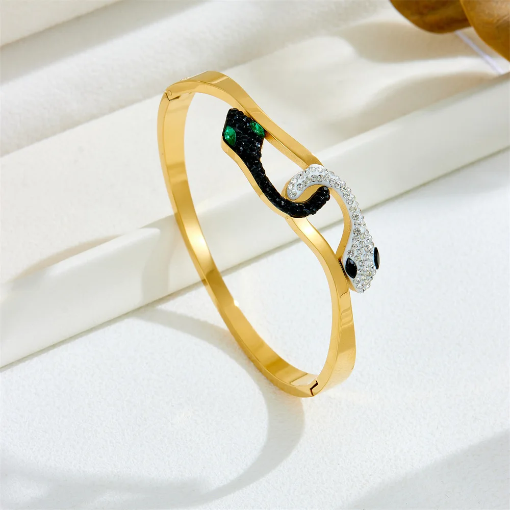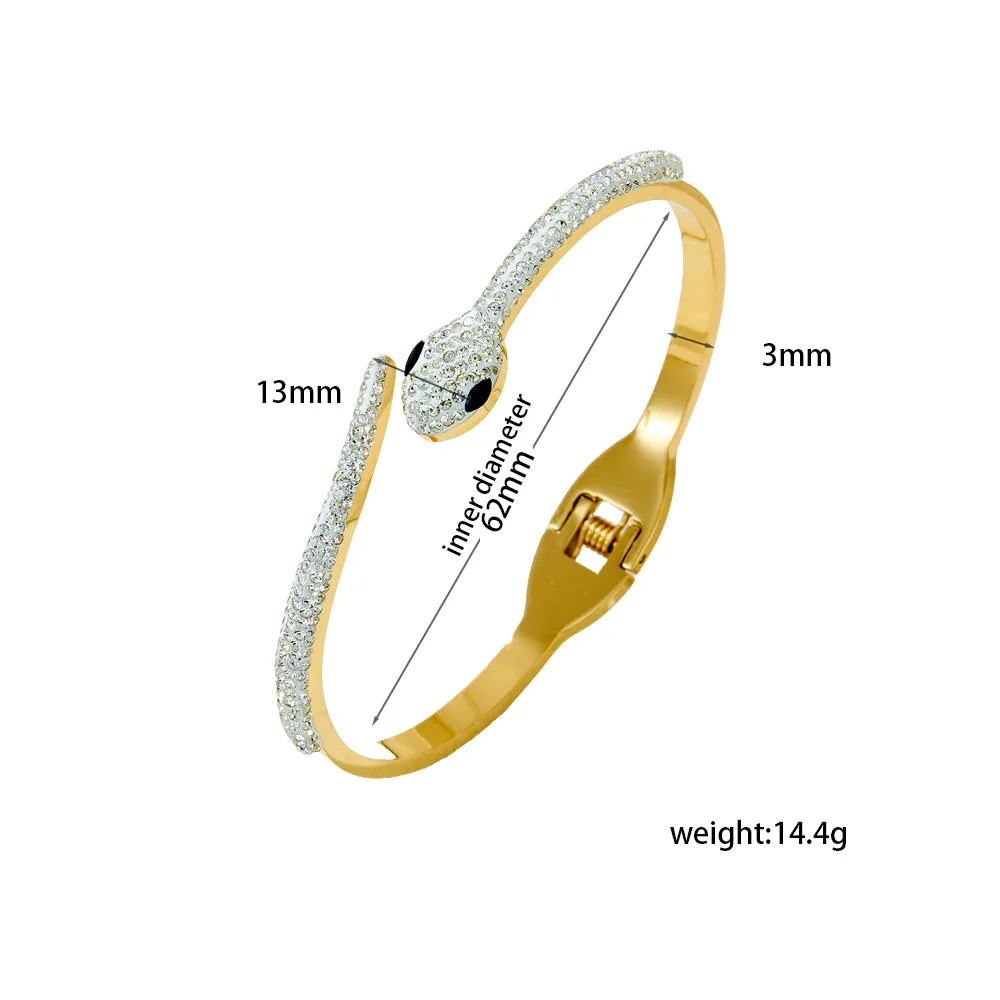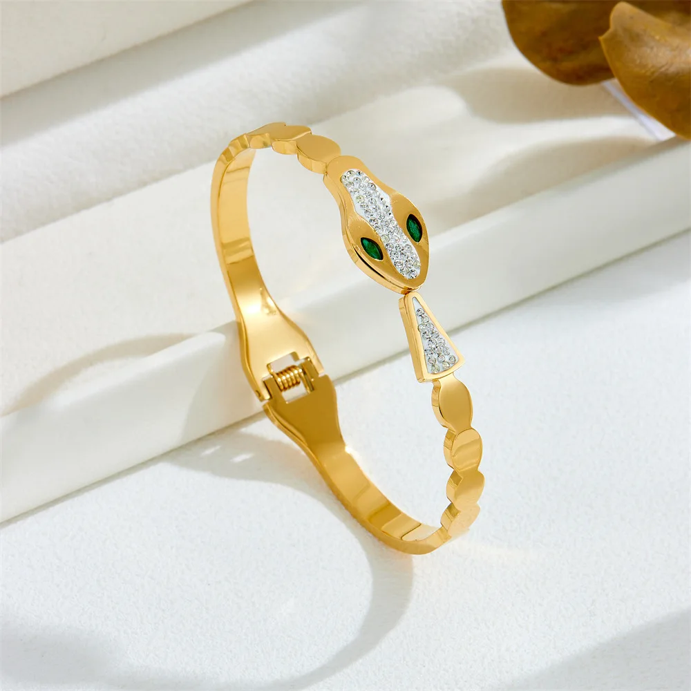 New Arrivals Non Tarnish Snake Cuff Bracelet 18K Gold Plated Stainless Steel Diamond Snake Head Bangle for Women
