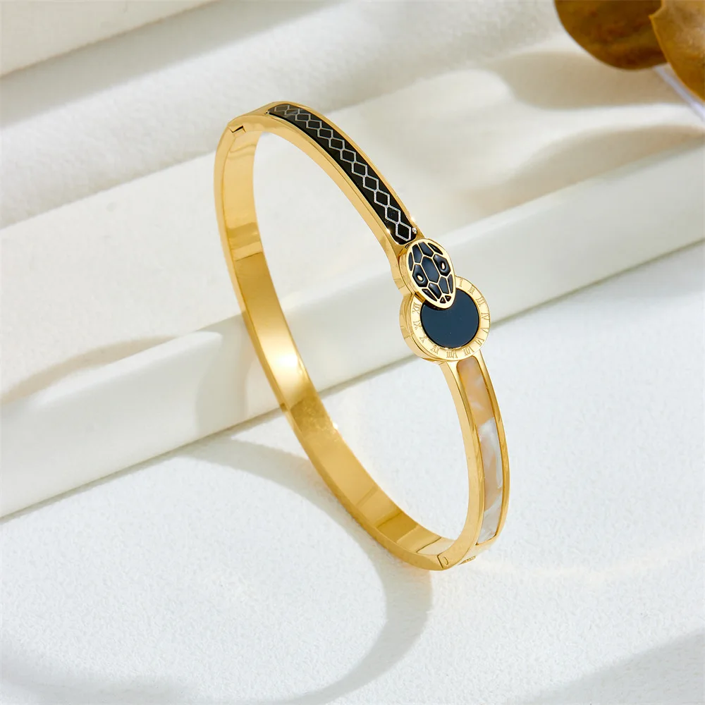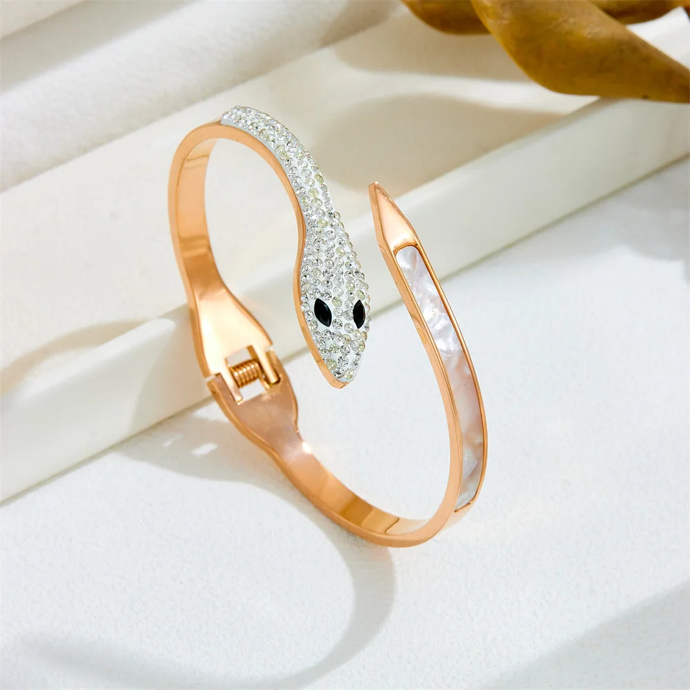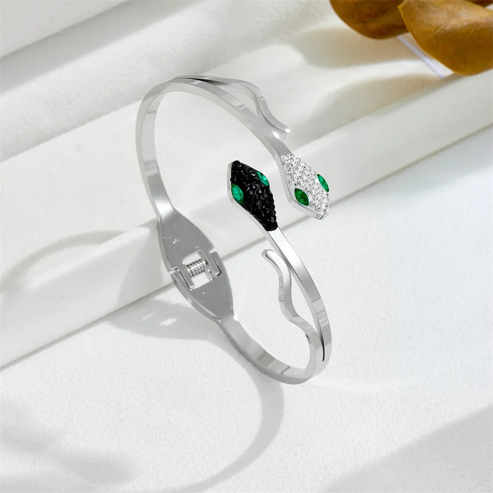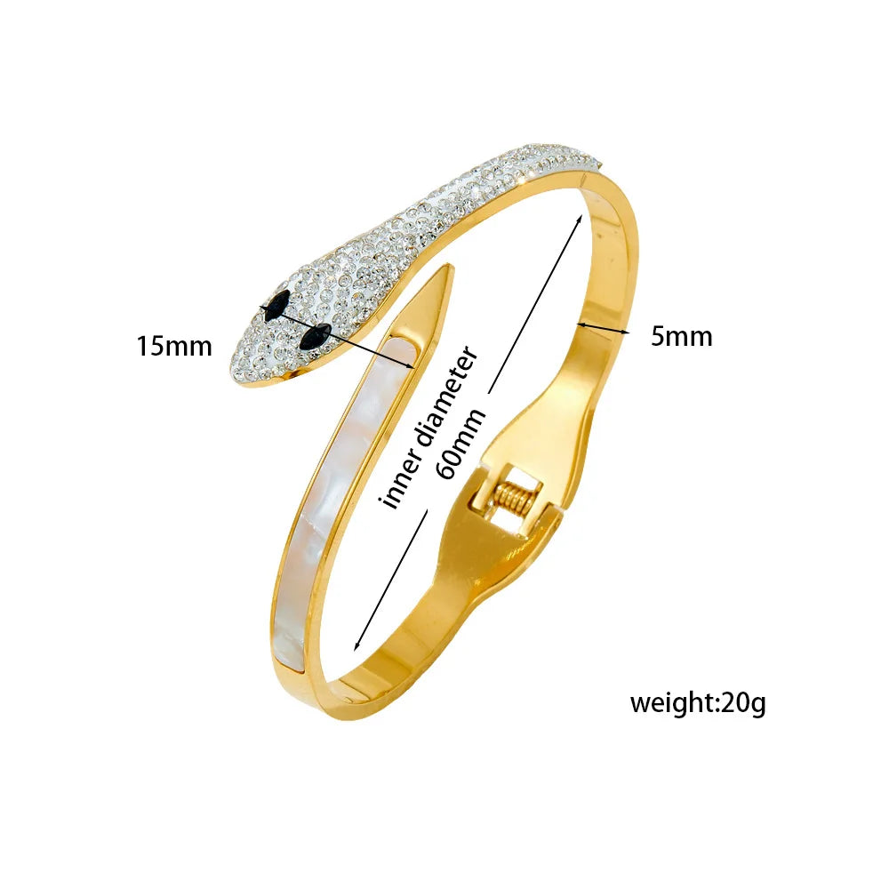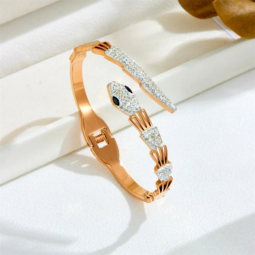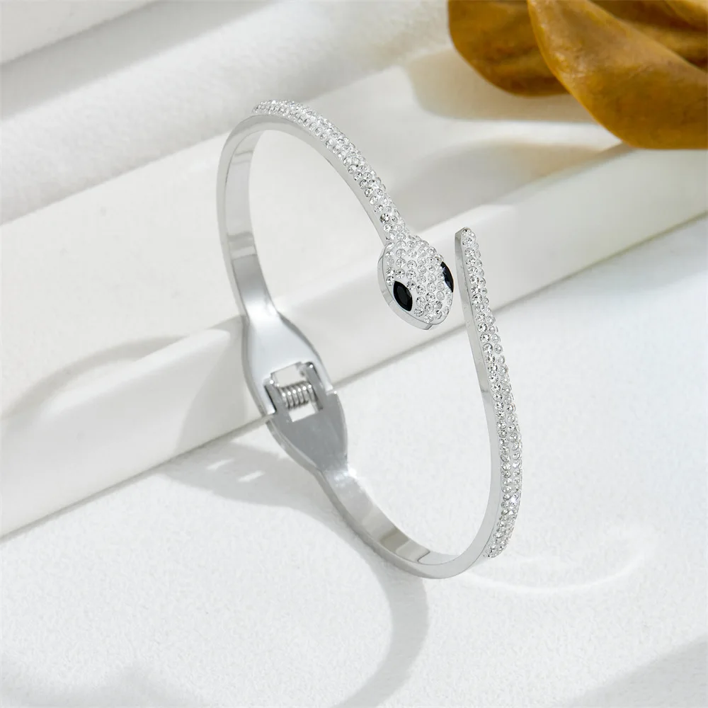New Arrivals Non Tarnish Snake Cuff Bracelet 18K Gold Plated Stainless Steel Diamond Snake Head Bangle for Women