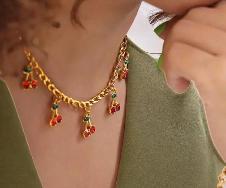 wholesale stainless steel cherry necklaces Fashion cherry stainless steel necklaces