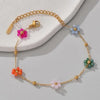 Handmade 18K Gold Plated Stainless Steel Daisy Sunflower Crystal Floral Beaded Bracelet for Girls Gift