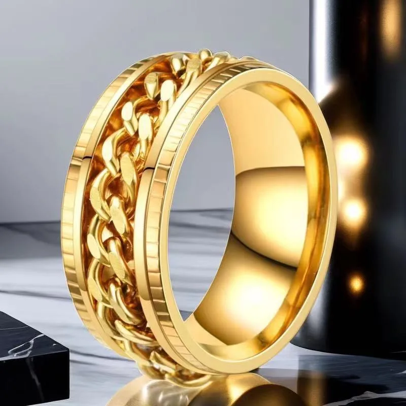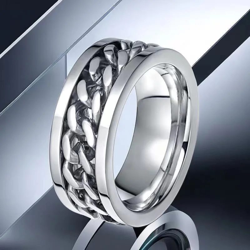 Wholesale Stainless Steel Anti Stress Chain Rotating Ring for Men & Women Personalized Rapper Initial Ring